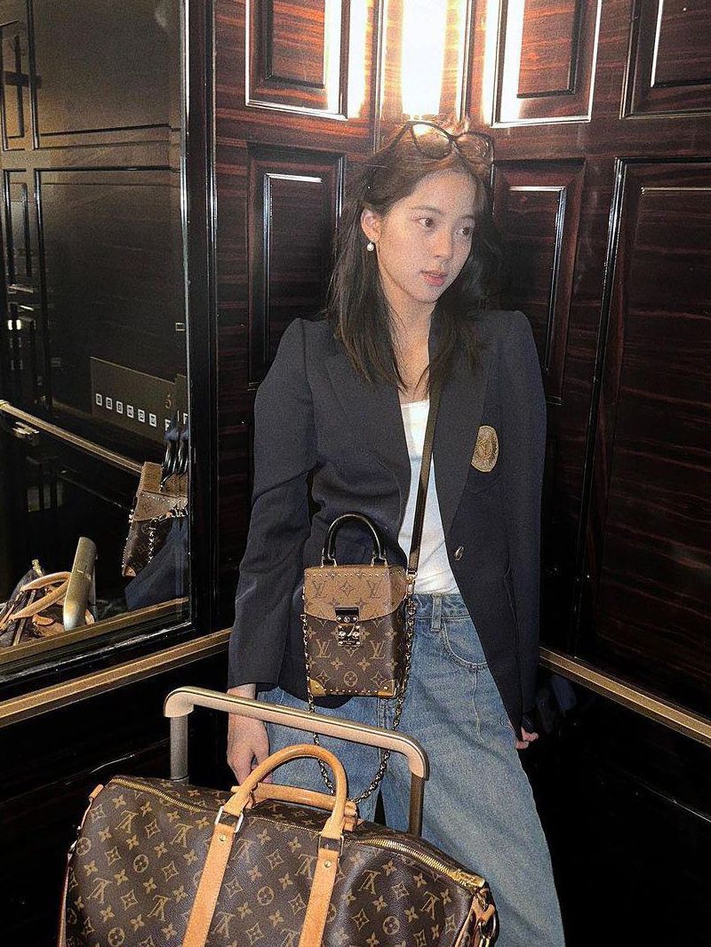 #LOUIS VUITTON 近日,欧阳娜娜在ins上发布了一组手拿路易威登Camera老花锁扣包的照片只见他身穿黑色西装,蓝色水洗做旧牛仔裤,戴着黑色边框墨镜,内搭白色短袖的照片#Lv路易威登 #路易威登包包 #欧阳娜娜同款