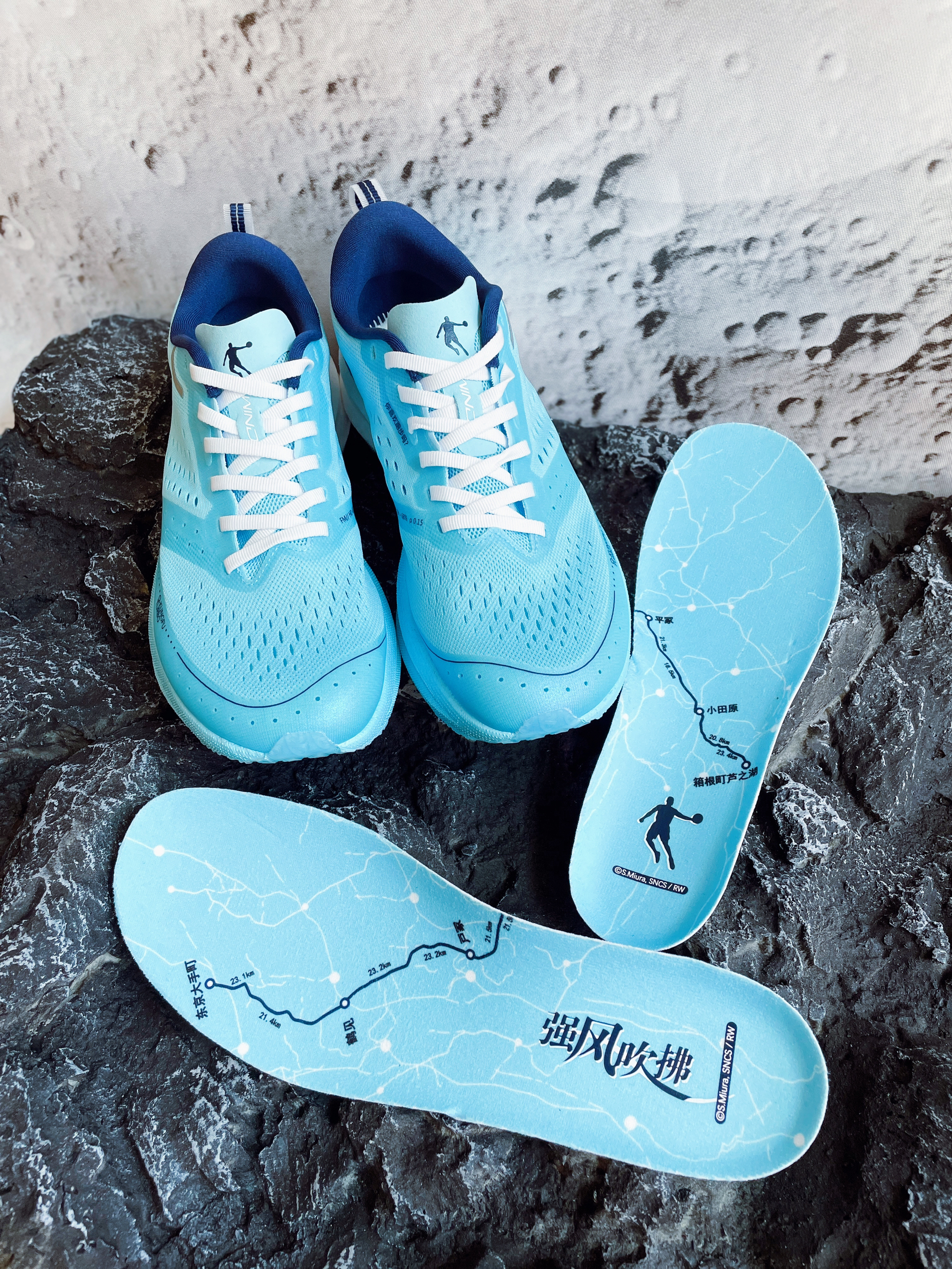 对于喜欢跑步的小伙伴来说 选择一双合适的跑鞋相当重要!之前乔丹体育 与《强风吹拂》推出的强风SE羁绊配色让人印象深刻!近期又带来了这双强风SE宽政大配色! 鞋子整体天蓝色为主色调 也正是宽政大田径队的队服颜色 中底辅以白色点缀!鞋底则是做了深蓝到浅蓝的渐变效果 看着非常舒服!鞋身多处融入了一些经典IP元素 比如那句“你喜欢跑步吗”依然让人热血沸腾! 再说到鞋子本身 工程网布搭配TPU透明丝的鞋...