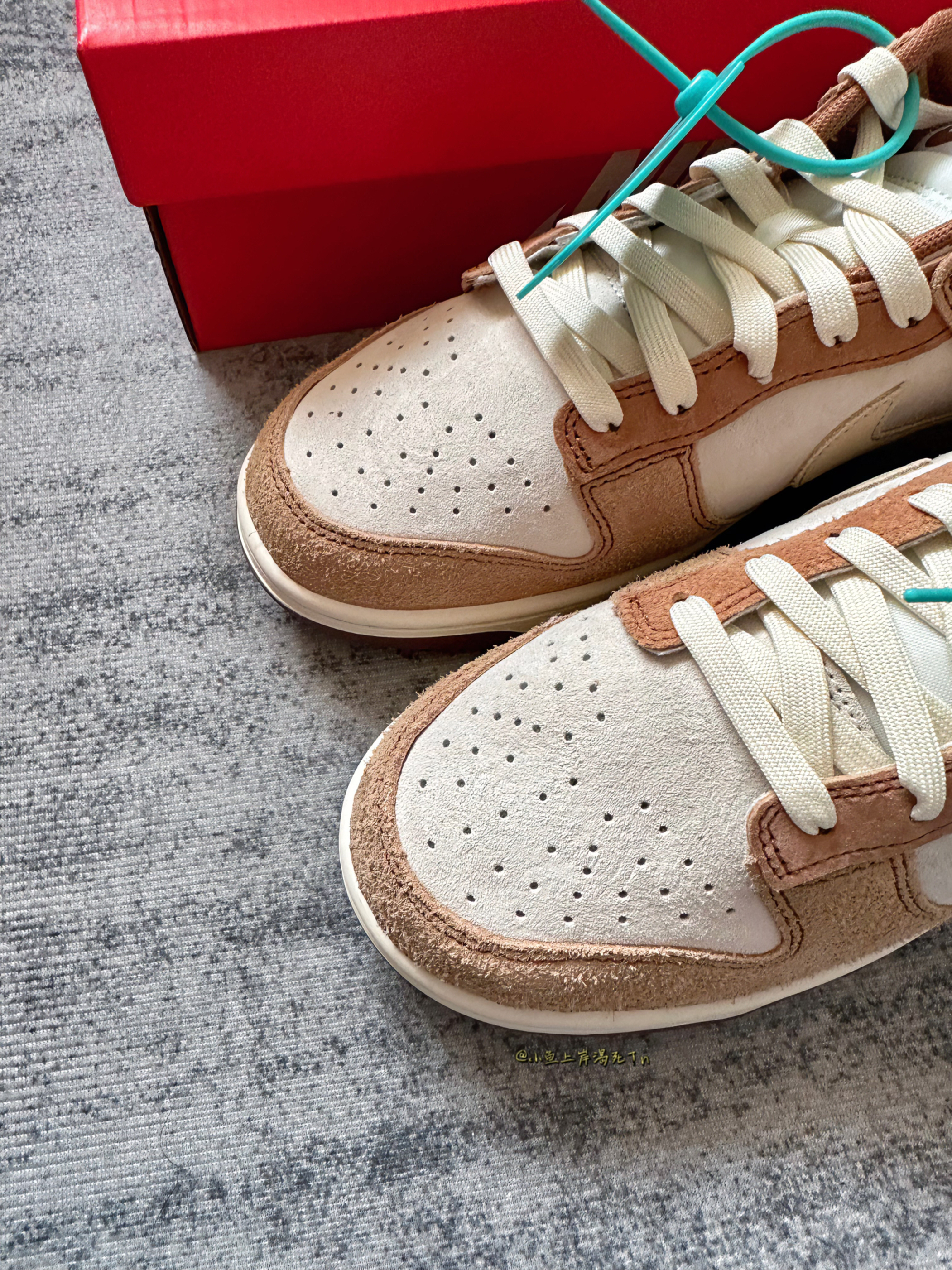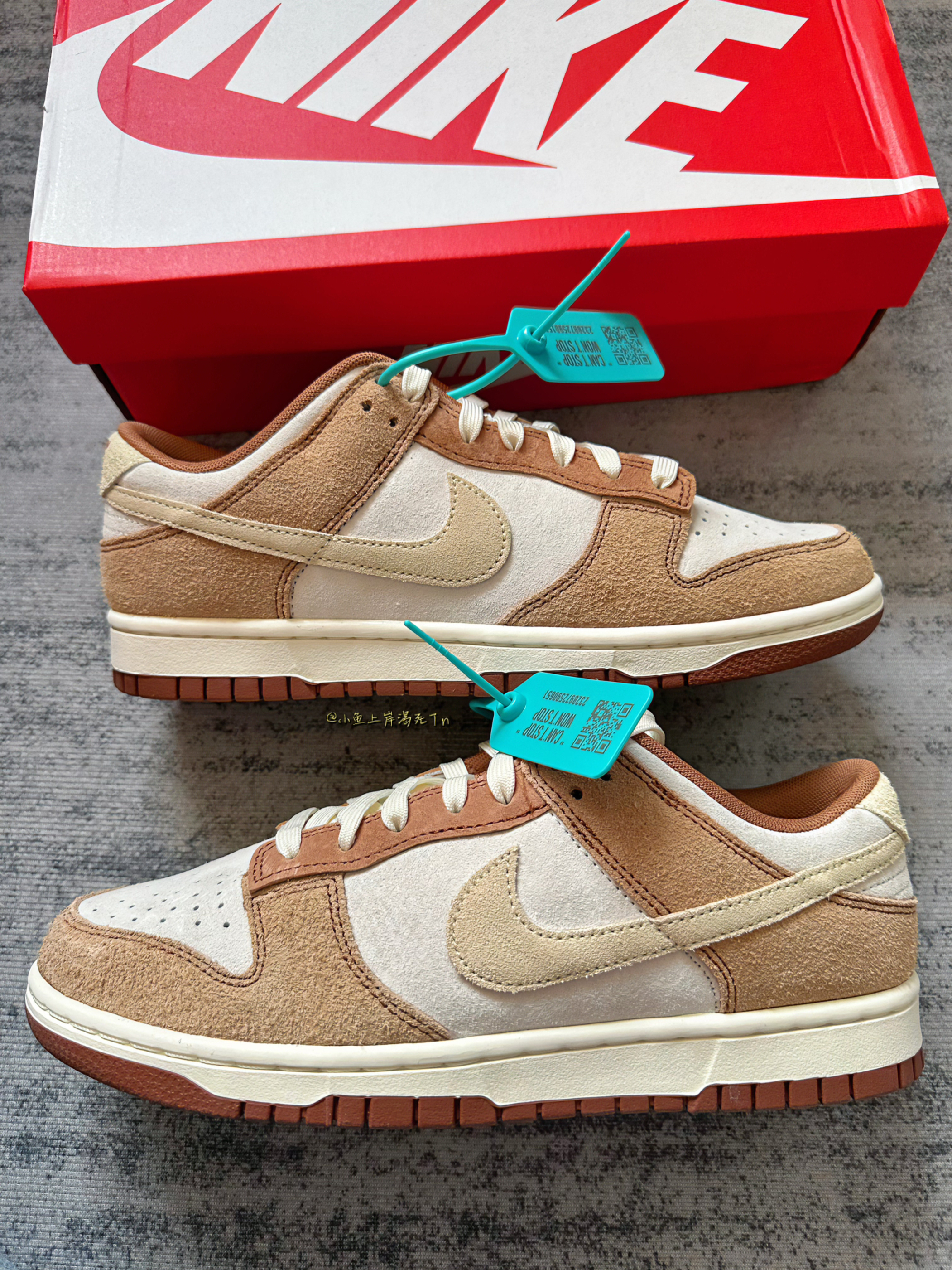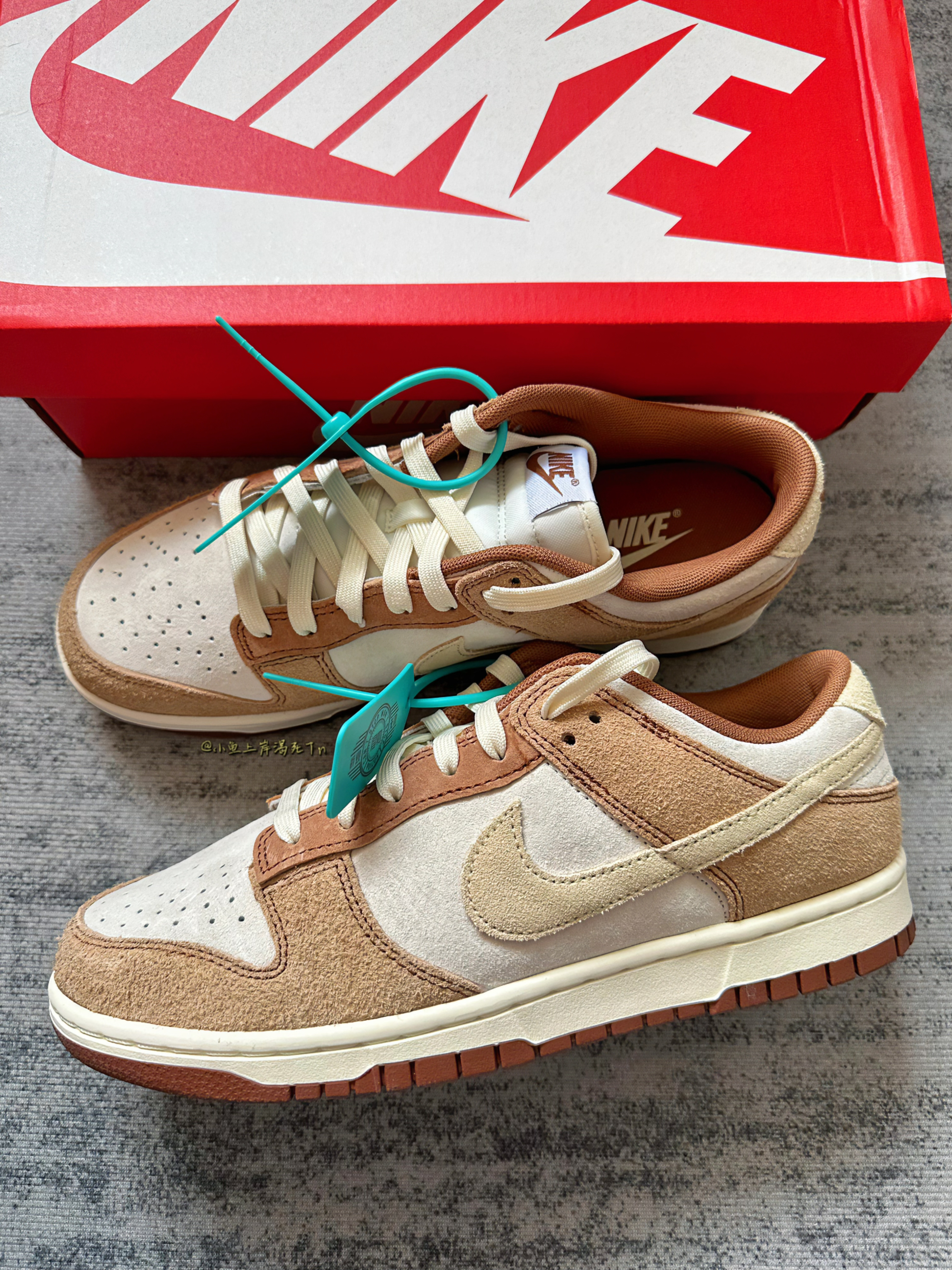 哈喽 小鱼 来喽! 今天给大家推荐分享这双dunk low 白棕配色 这双之前直接炒到3k的价格 现在直接三位数太香 啦! 白棕配色颜值真的不用说了吧 很适合秋冬天 鞋面翻毛麂皮材质 质感蛮不错的 但是不好打理 个人建议不要水洗 可以送洗鞋店或者橡皮擦打理 上脚搭配牛仔裤休闲裤都是蛮不错的选择!