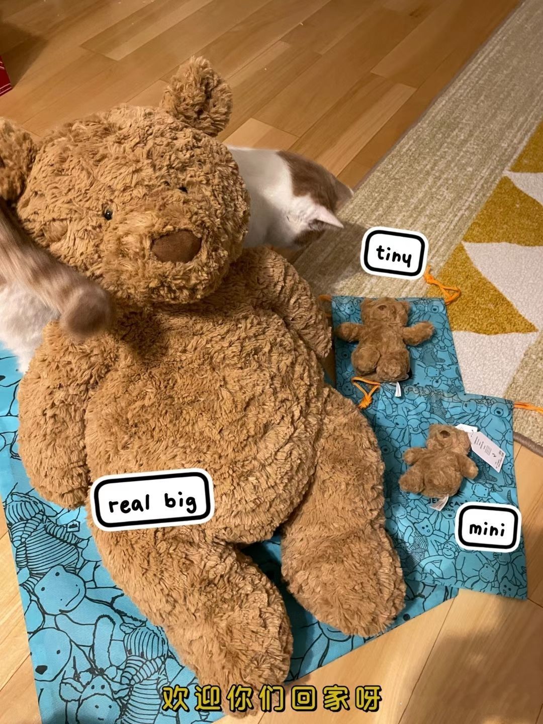 一家熊就要整整齐齐呀~🐻 巴塞罗熊real big和tiny和包挂安全到家~ 欢迎你们回家呀! 😙real big真的有big到!超级好抱! tiny小小小的真的可以随处带~ 迷你巴也已经挂上了车钥匙~熊齐的一天~开心!!! 想入的宝贝可以参考下我的尺寸哦~