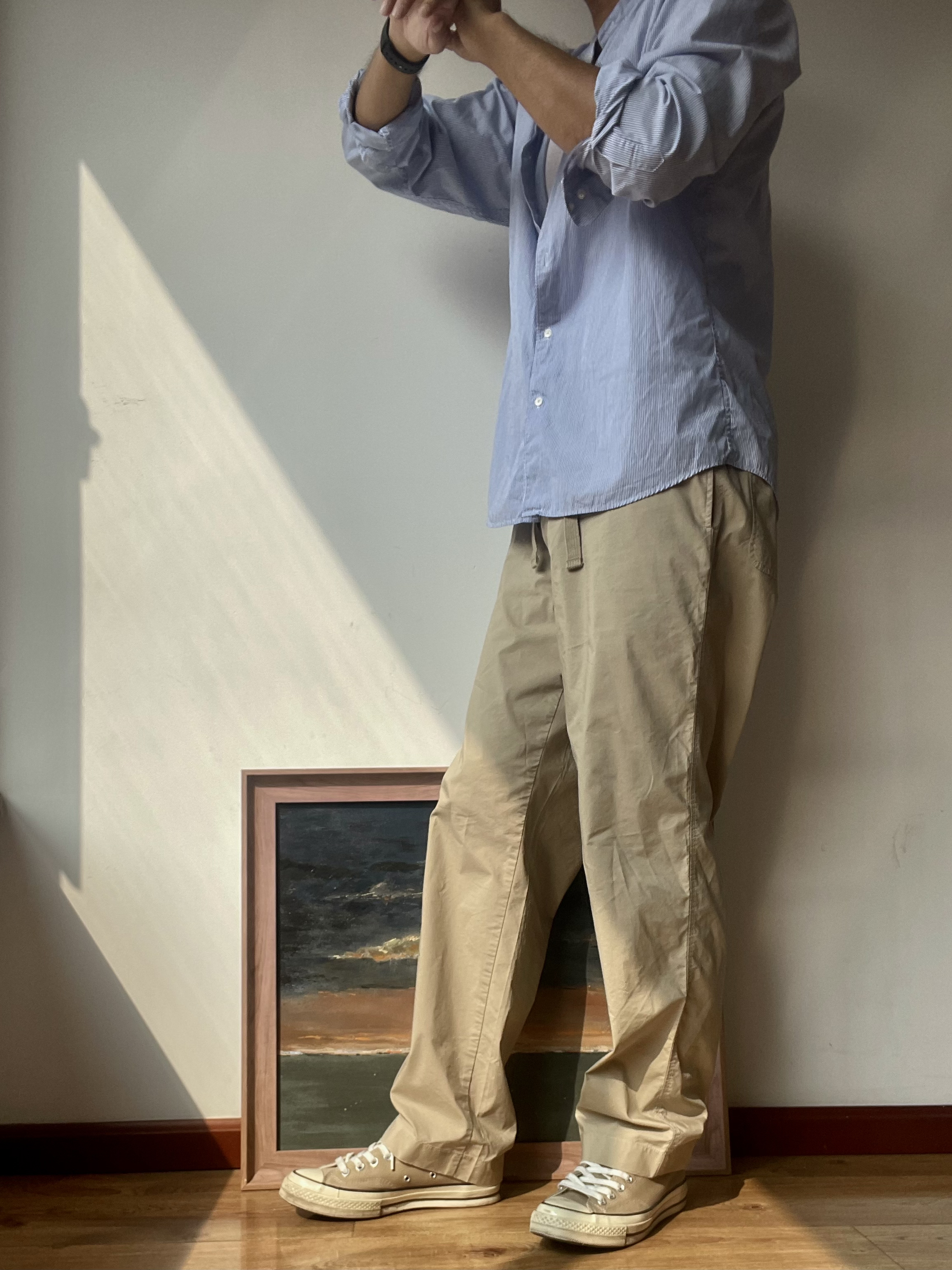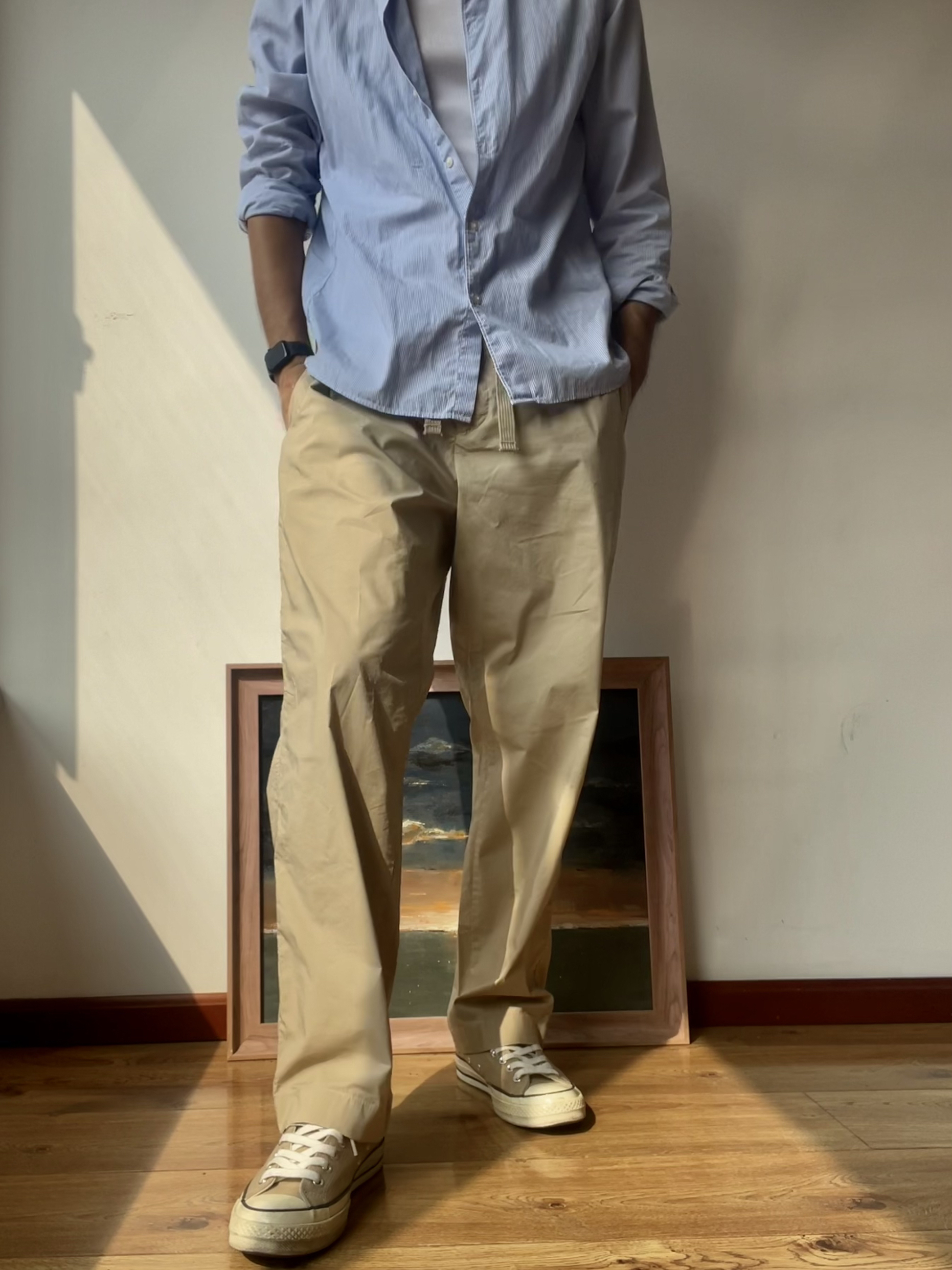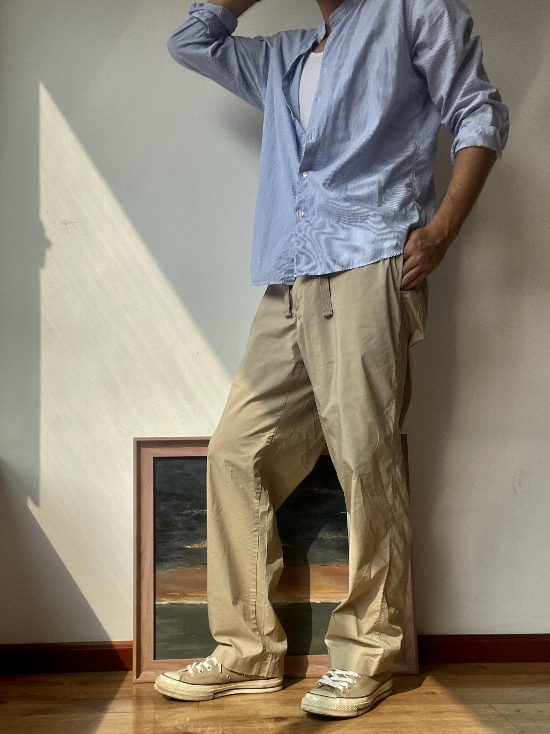 穿搭: 奶茶配色的工装户外裤配合休闲衬衫 舒适休闲为第一要素 细节: 裤子版型要直筒宽松显气质#夏日休闲风OOTD #今日穿搭打卡