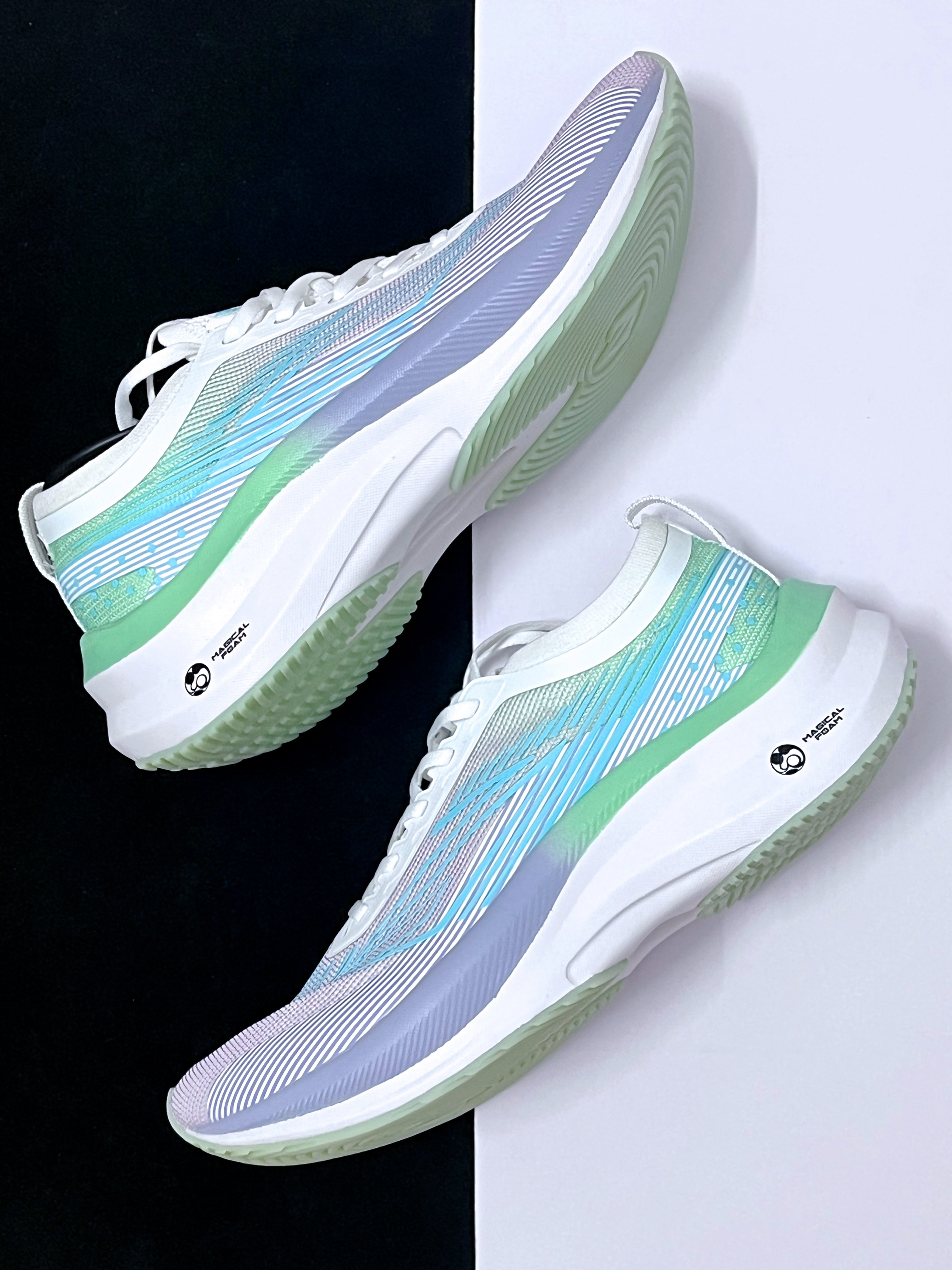 🔸这一款来自MINEPAIR吾双的运动鞋,实物拿到手挺轻盈的,鞋面的这种紫绿拼接设计,上脚颜值高,很有辨识度。 🔸其鞋头翘起的幅度调教得很到位,跑动起来的推进感很明显,中底方面有吾双顿态科技的加持,上脚的缓震效果很不错,大体重的人群也可以驾驭。 🔸我个人挺喜欢它的一体式的鞋舌设计,日常穿脱比较方便,整体的包裹感也更到位,可以作为一款跑步鞋或者日常通勤鞋穿,有着较高的性价比和舒适性。