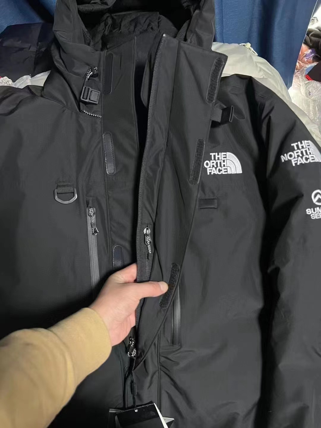 喜马拉雅,巅峰系列,北面最夸张的系列 炙手可热,一件难求,玩家的大玩具, 可拆卸 防风防水保暖 里面是鹅绒内胆羽绒服 外面是三合一冲锋衣 一件衣物三种穿法!