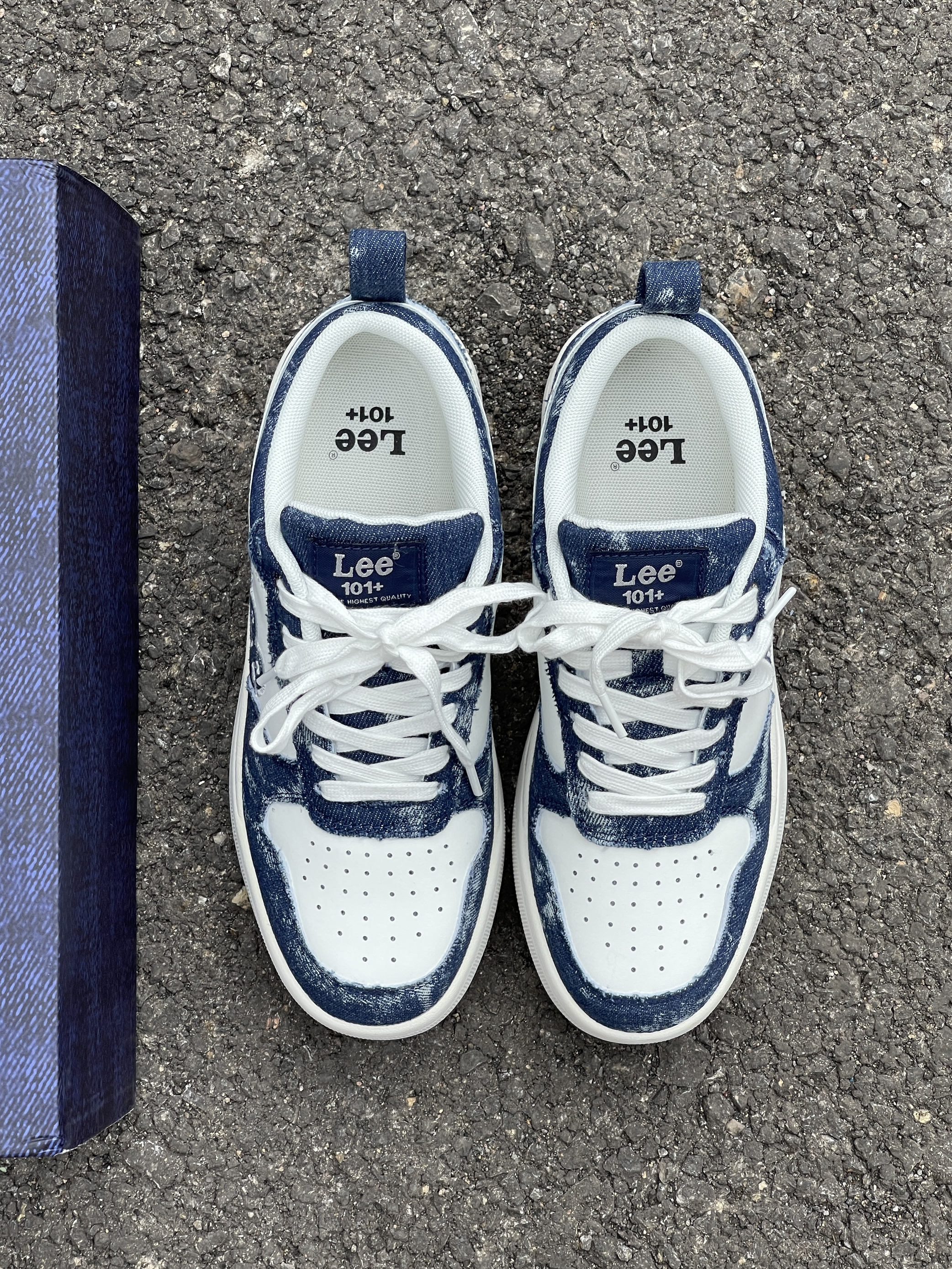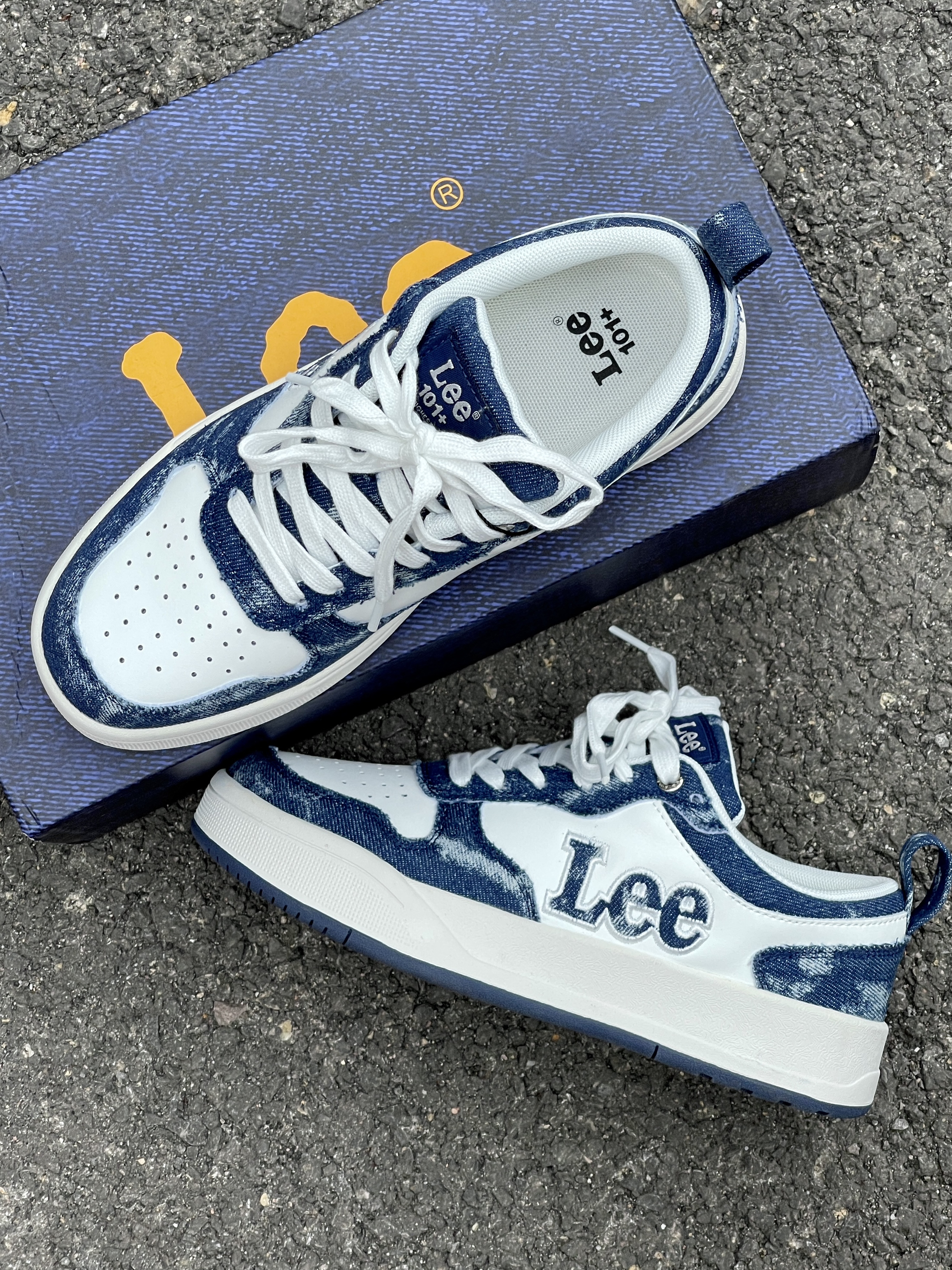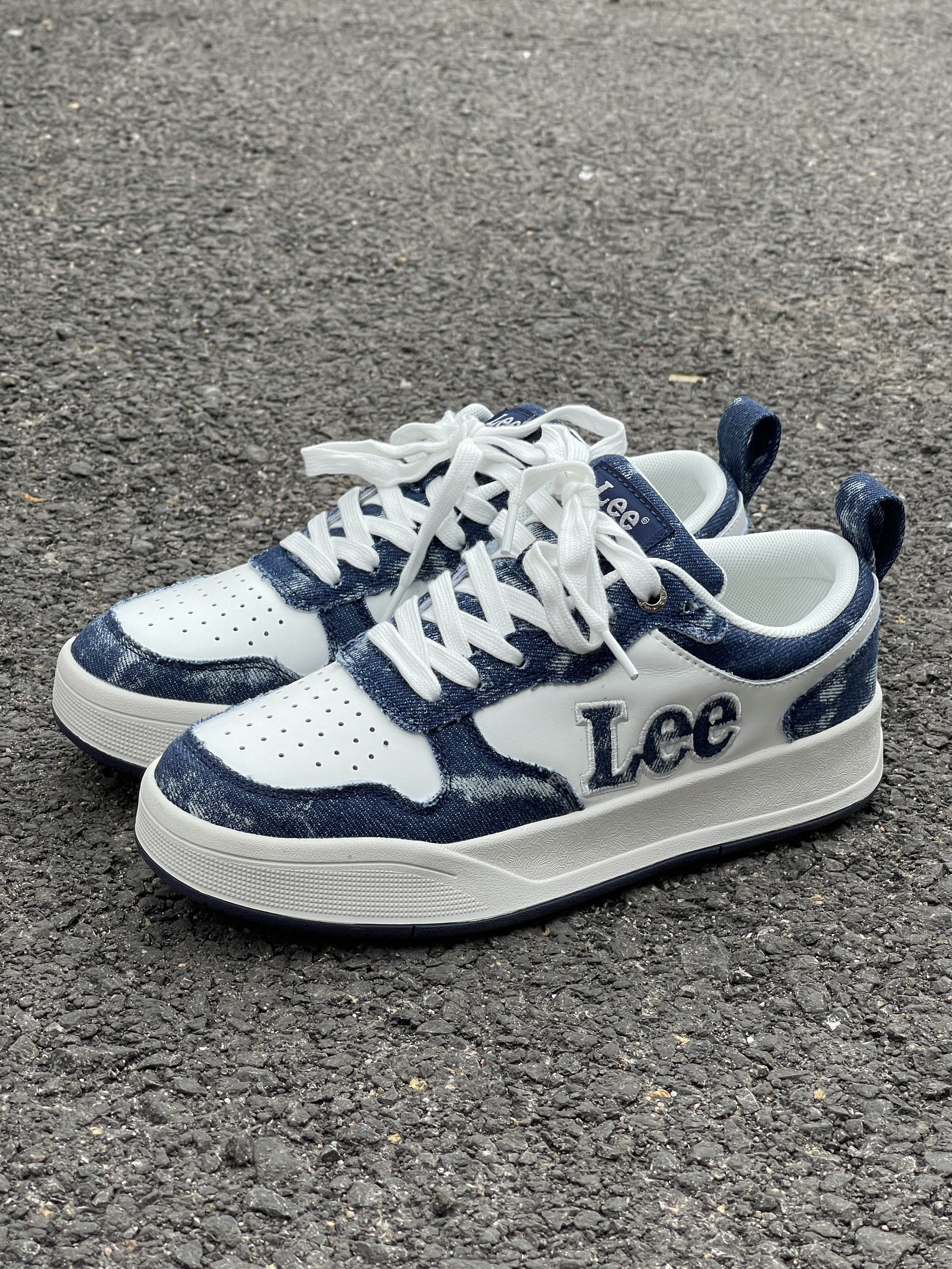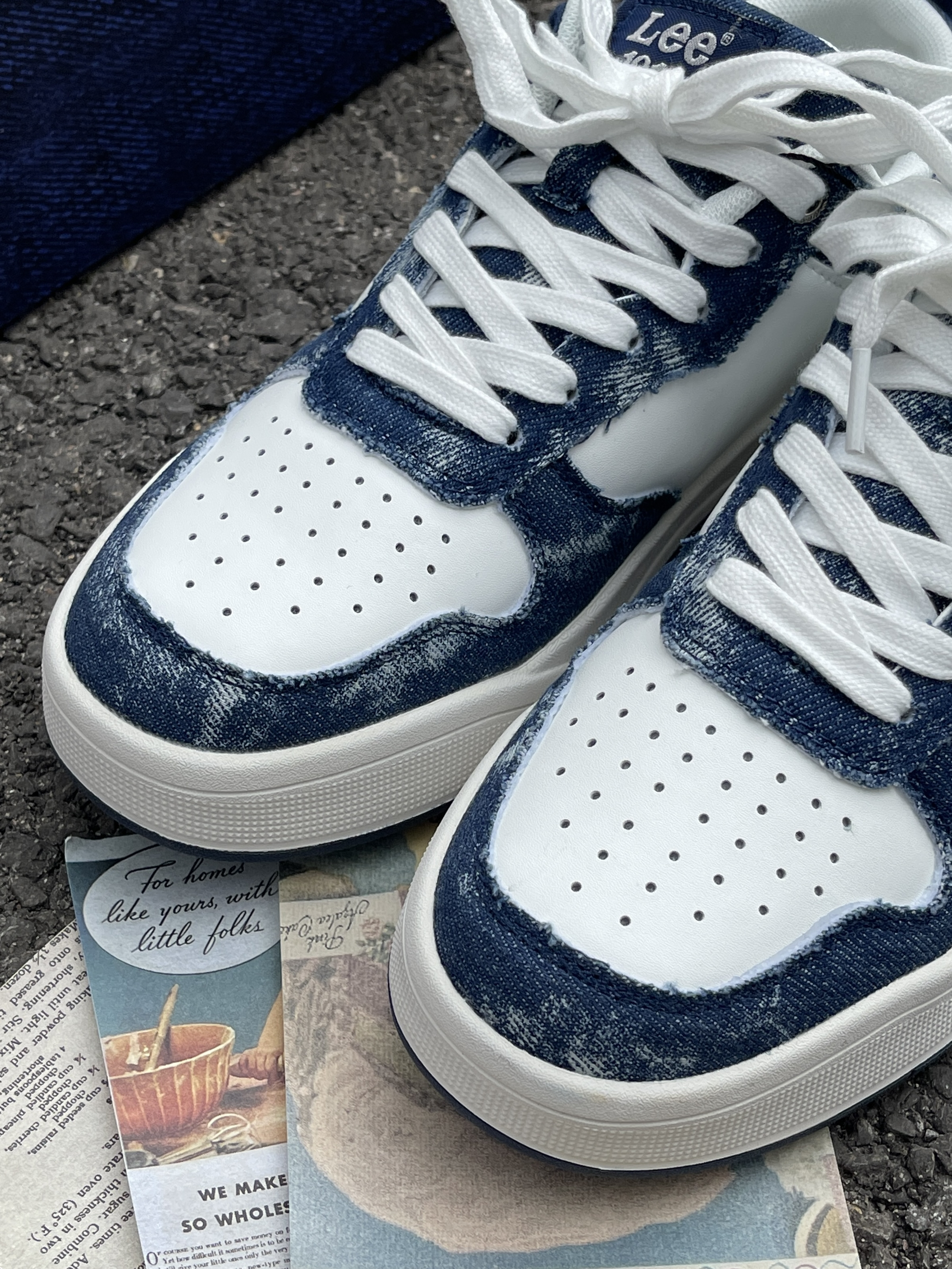 一眼就被这个牛仔蓝拼接元素吸引🧲 他平时穿衣服一整个黑白灰 想着在他鞋上做做功课 牛仔蓝➕白一整个提升活力 不烂大街,复古又减龄~