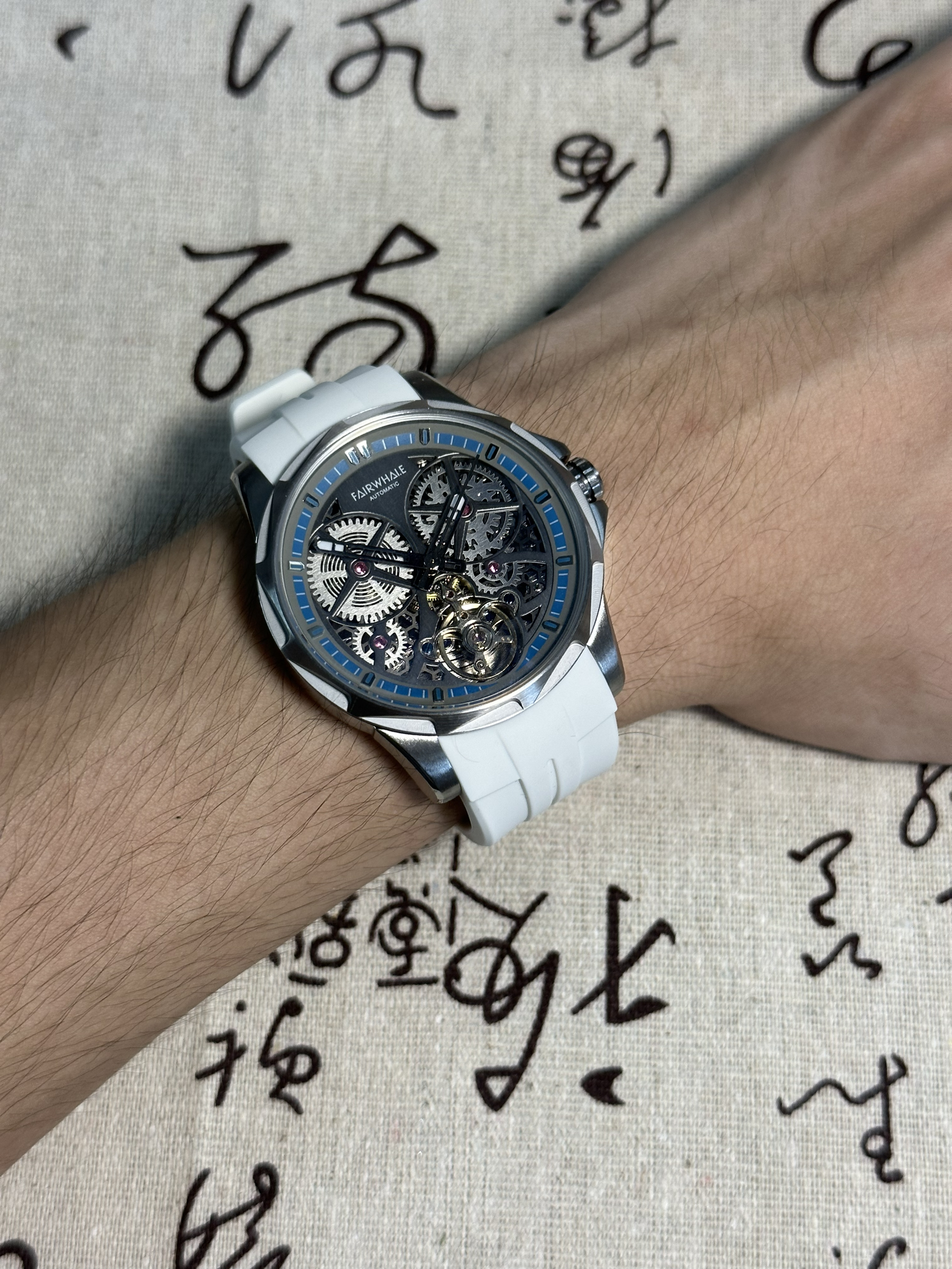本篇笔记关联了Mark Fairwhale/马克华菲 镂空陀飞轮防水夜光氚气自动机械男士手表 银壳蓝面白胶带 等商品,为用户提供真实的使用体验和购买参考。