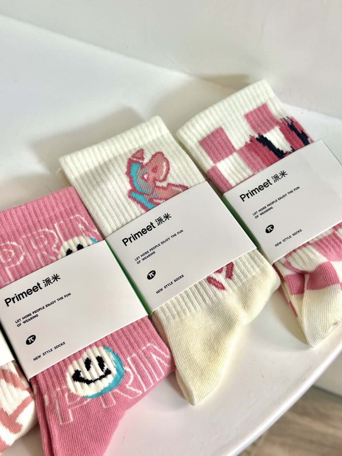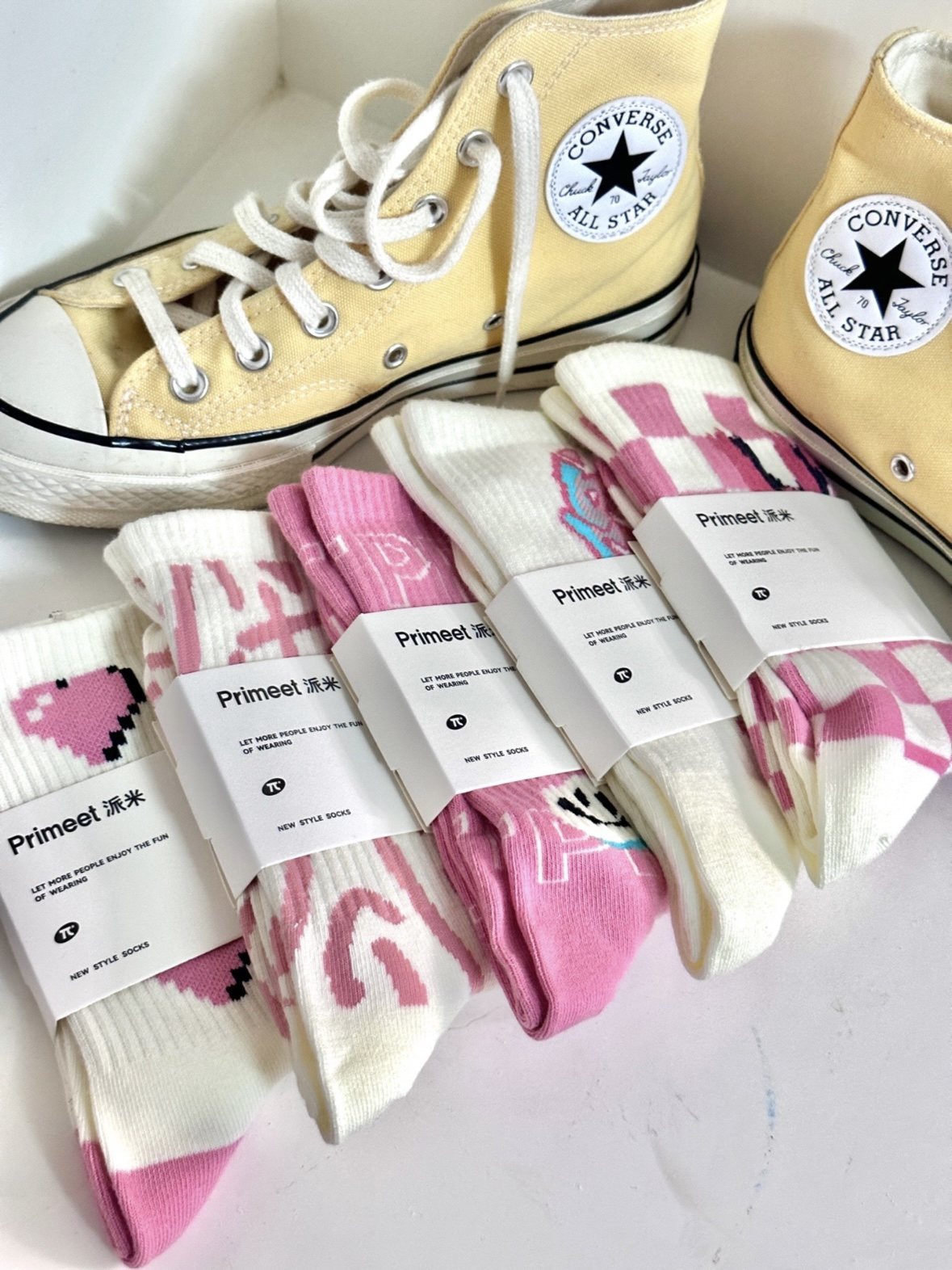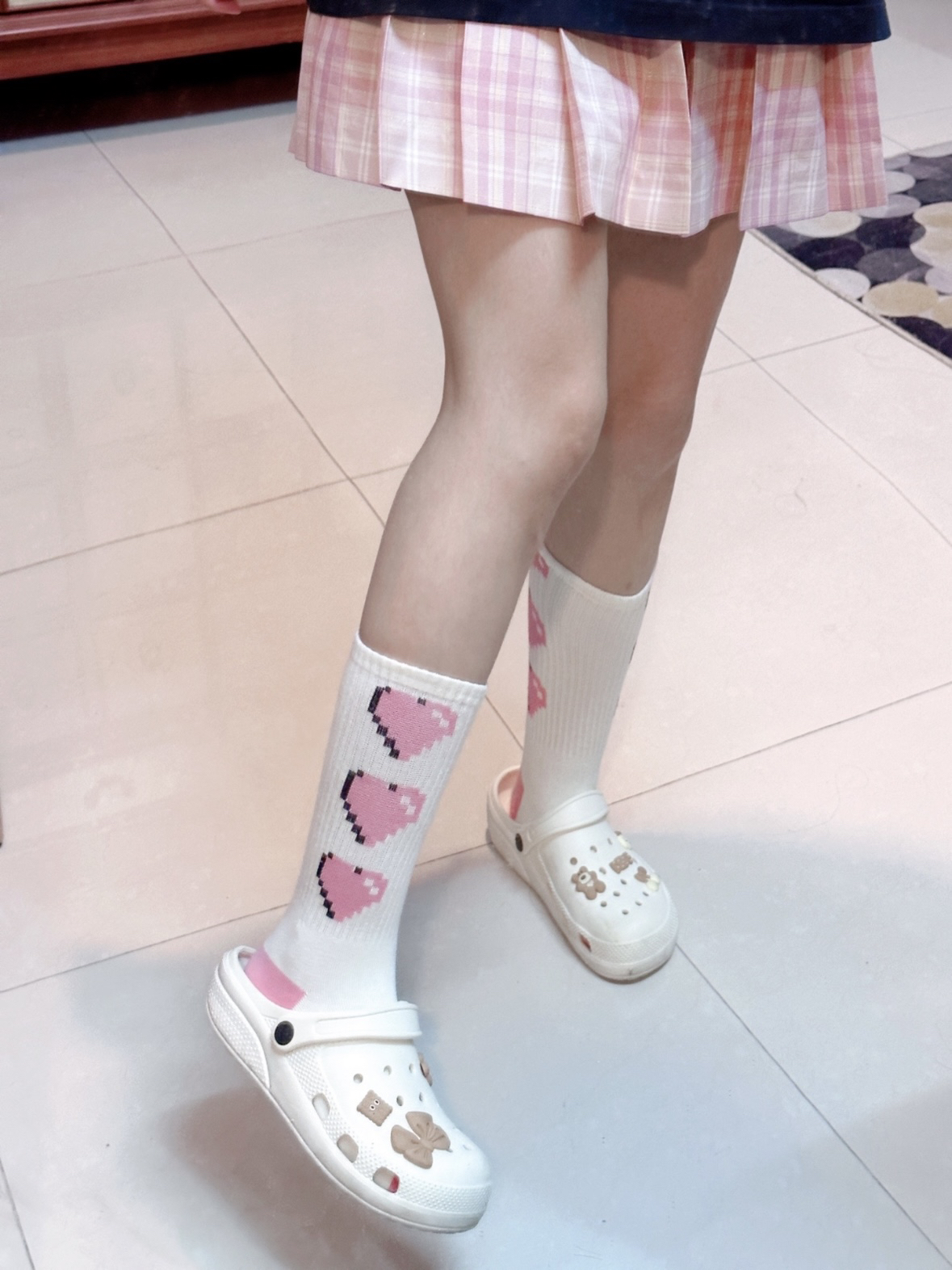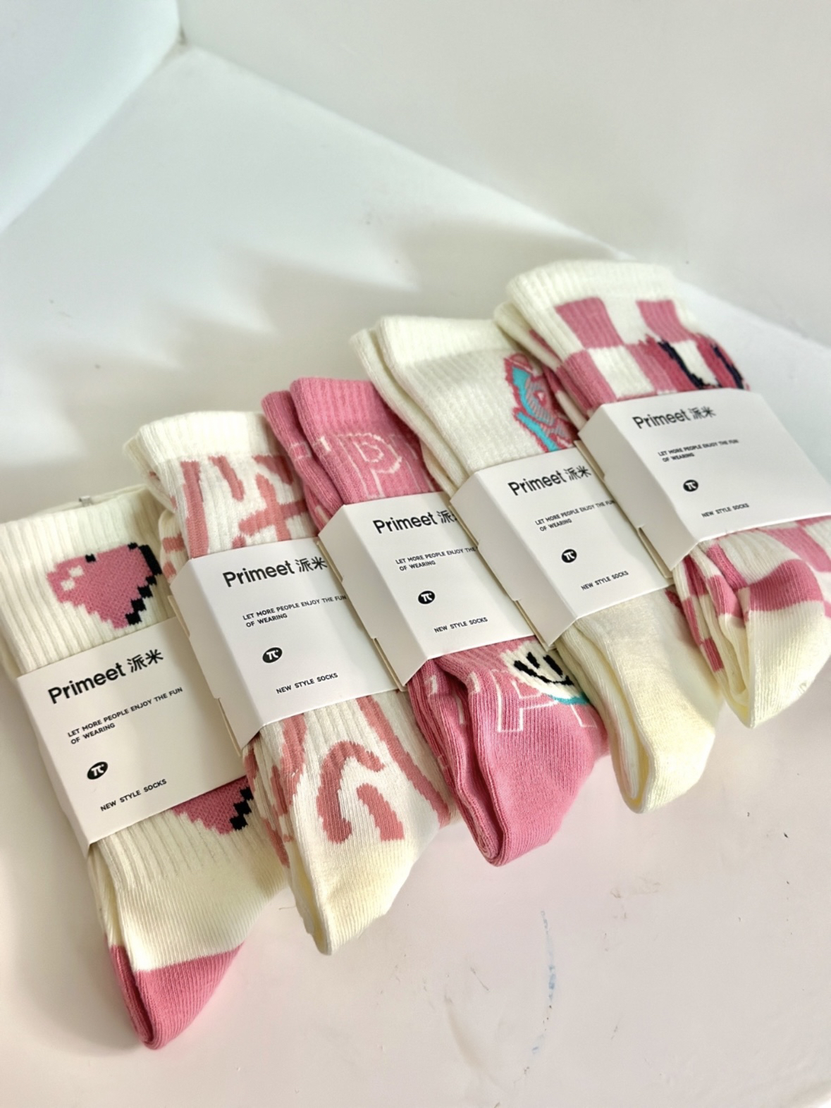 今天是粉色甜酷运动少女的男友送袜袜到啦! 粉色和白色的搭配还有的图案 鸣鸣 整个人都甜了起来 七夕约会就穿这双啦 一共5双~ 搭配运动鞋 洞洞鞋 凉鞋都可以的! 姐妹可以拥有C