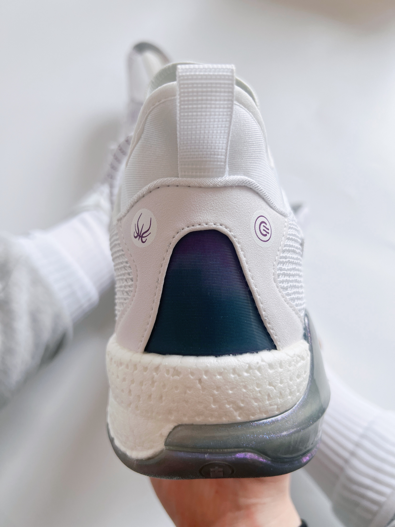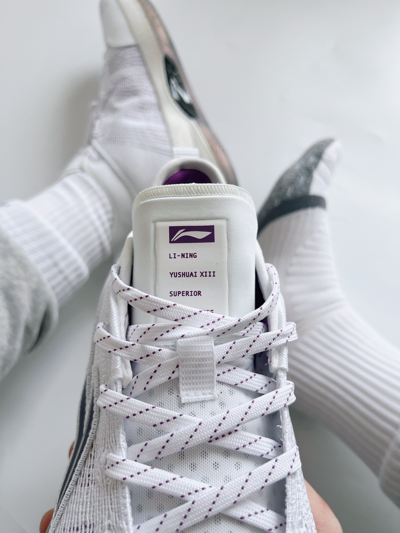回想当初驭帅13䨻刚发售之际 白色价格让人望而却步 还好忍住没买 后面入手了这双绝美的珠光紫 拿在手上的实物可比我这上脚好看多了 鞋底的紫色更是让人欲罢不能 尺码方面本人Nike实战鞋穿43 这个穿43没啥问题!