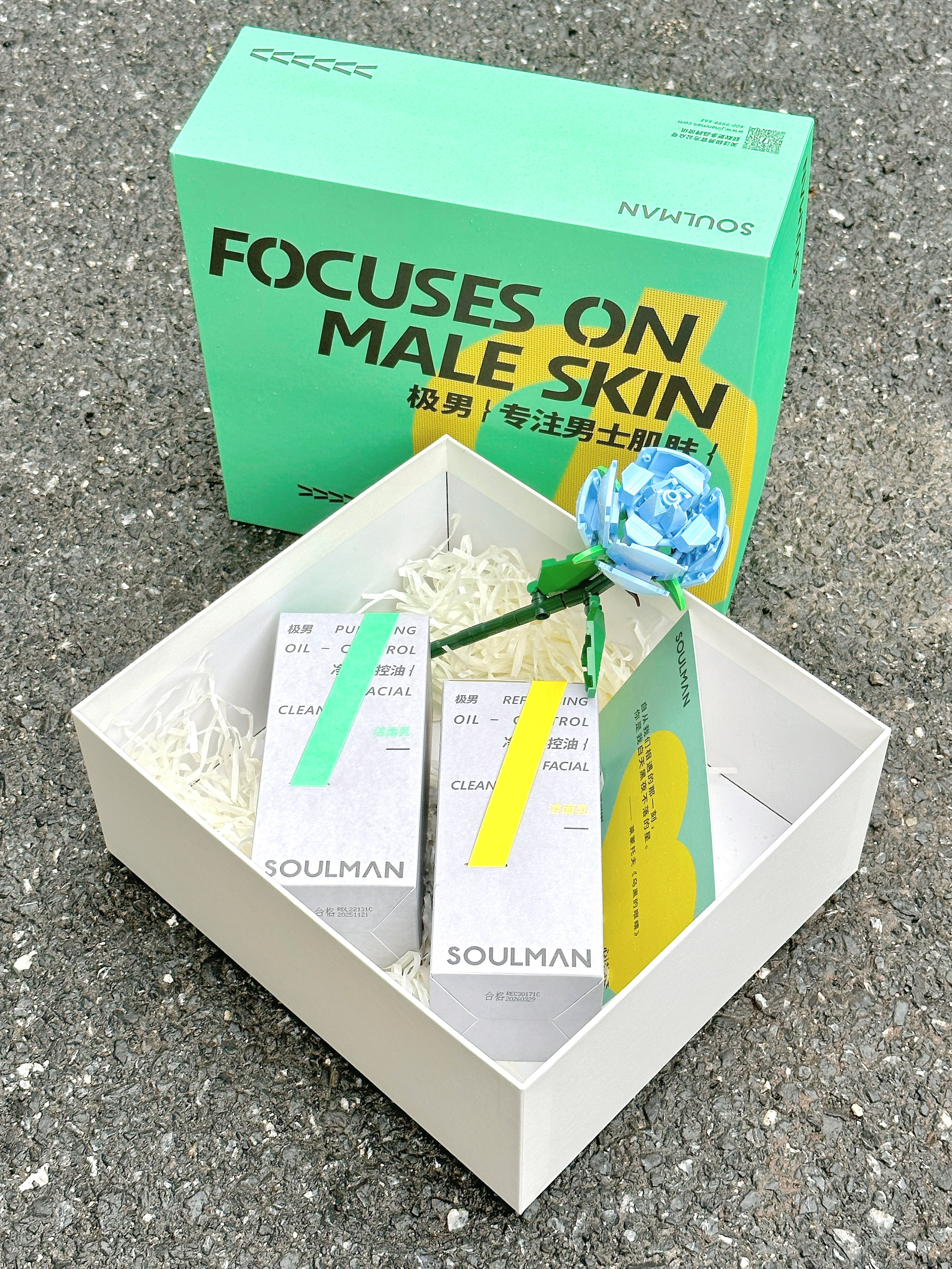 9⃣️m!我已经被男朋友夸麻了! 熬夜做了功课!给他准备了生日礼物🎂 是极男的心礼话男士护肤礼盒! 多巴胺的包装尊滴太有仪式感啦!✨ 里面是早晚两瓶洁面cp➕积木玫瑰➕告白卡 白天用白色的净透洁面乳⚪️ 温和清洁 女生也可以用哦~ 晚上用黑色的净爽洁面乳⚫️ 洗去一天下来的油光 清爽不紧绷! 男朋友再也不是油腻男孩啦! 积木玫瑰需要亲手搭!真的敲有心意💖 告白卡片承载着我对他浓浓的爱意~ 男朋...