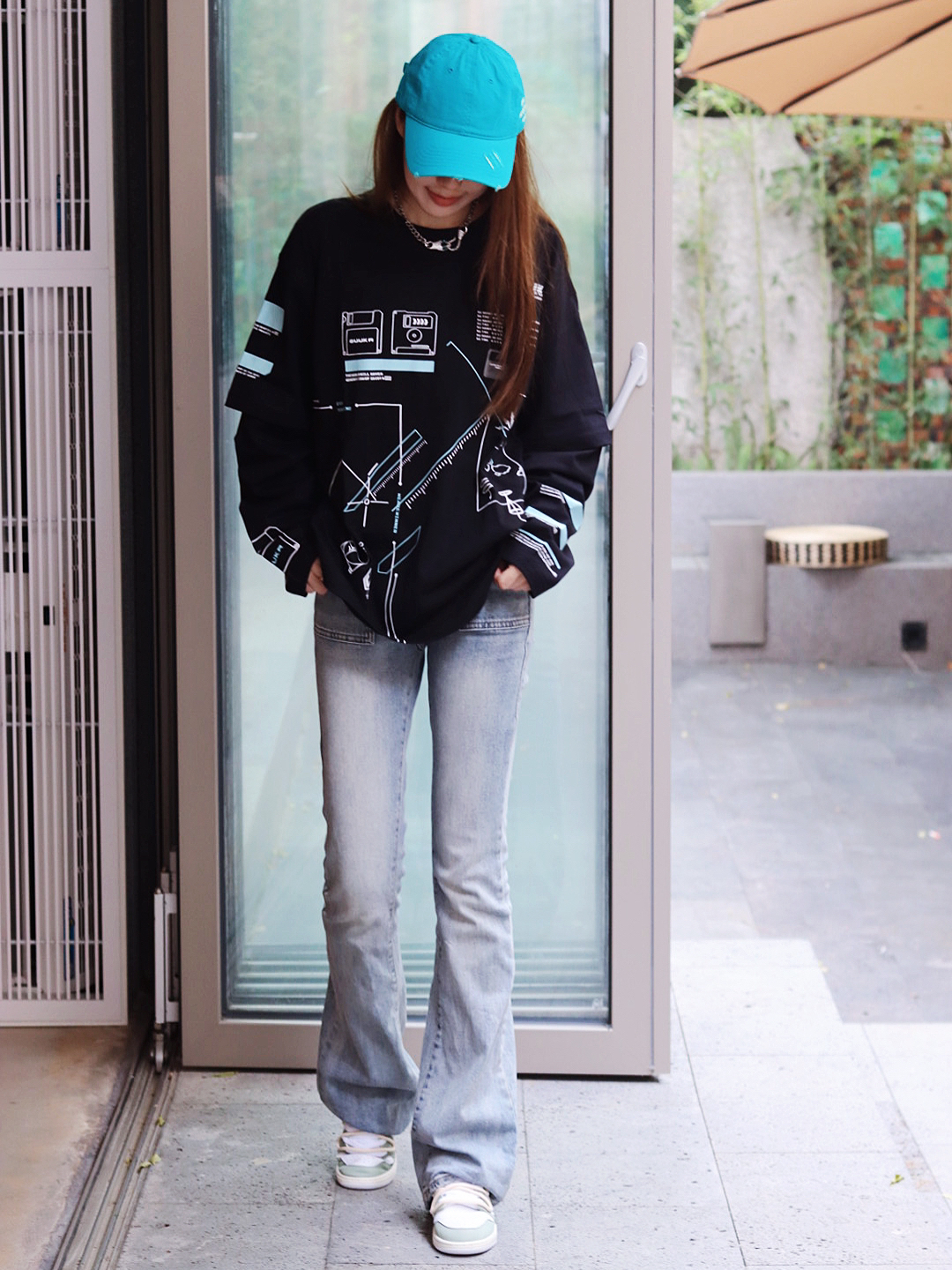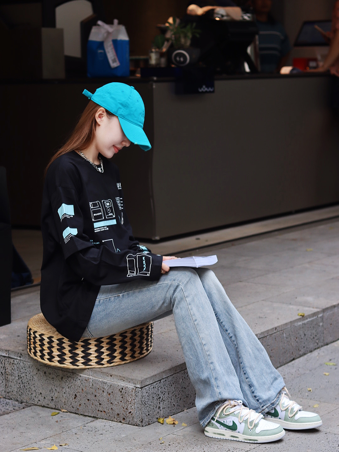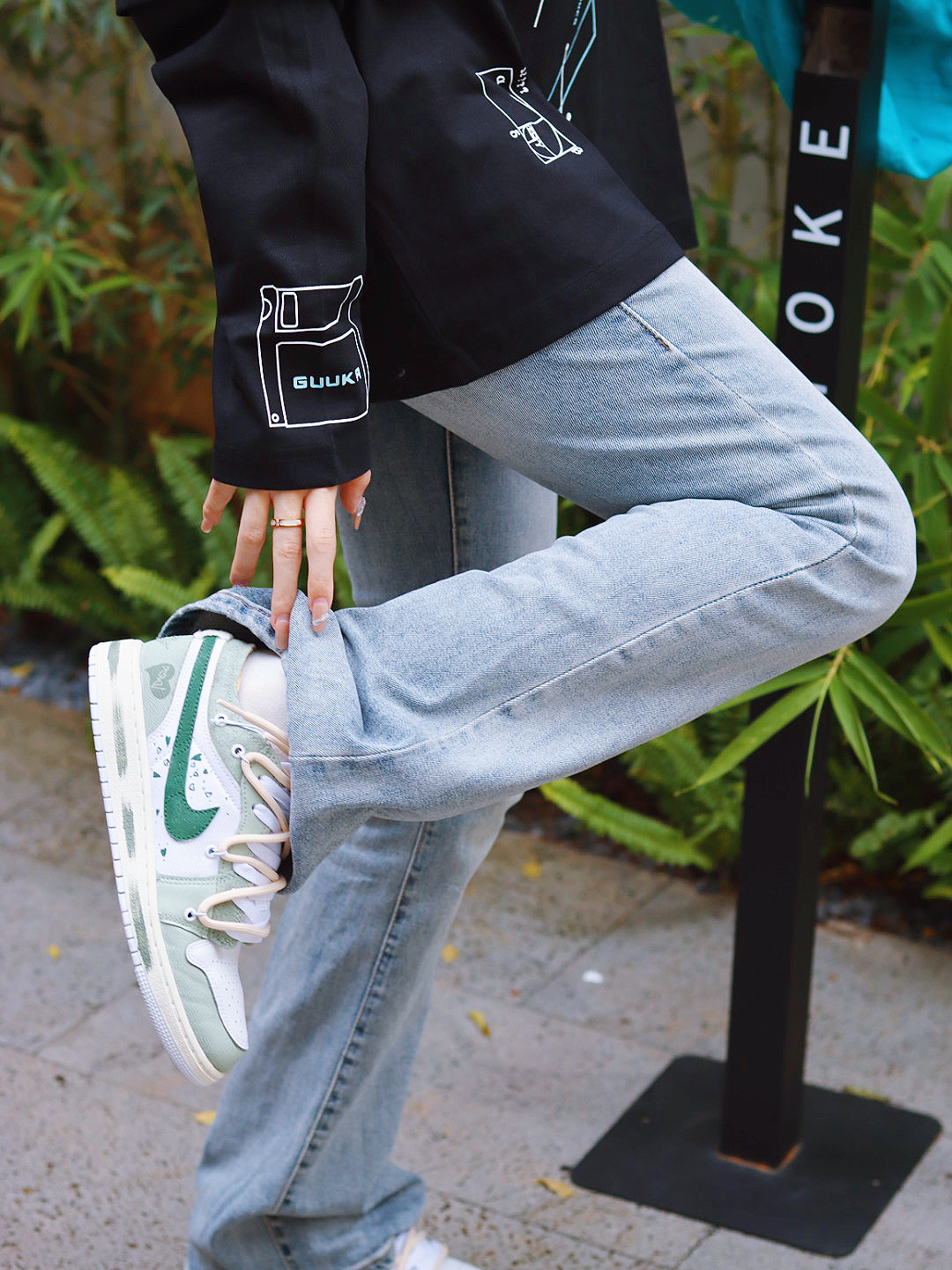 秋冬的主色调必须 是all black的主场 简约的黑色假两件长袖。 不挑人通勤百搭。 学生党和上班族都可以入。 随便带一个鸭舌帽就很帅。 可以再背一个大的斜挎包包。 手拿一杯咖啡。 就可以美美哒去上班了💚💚 衣服 Guuka 鞋子 Nike 青绿的配色简直不要太好看了 #