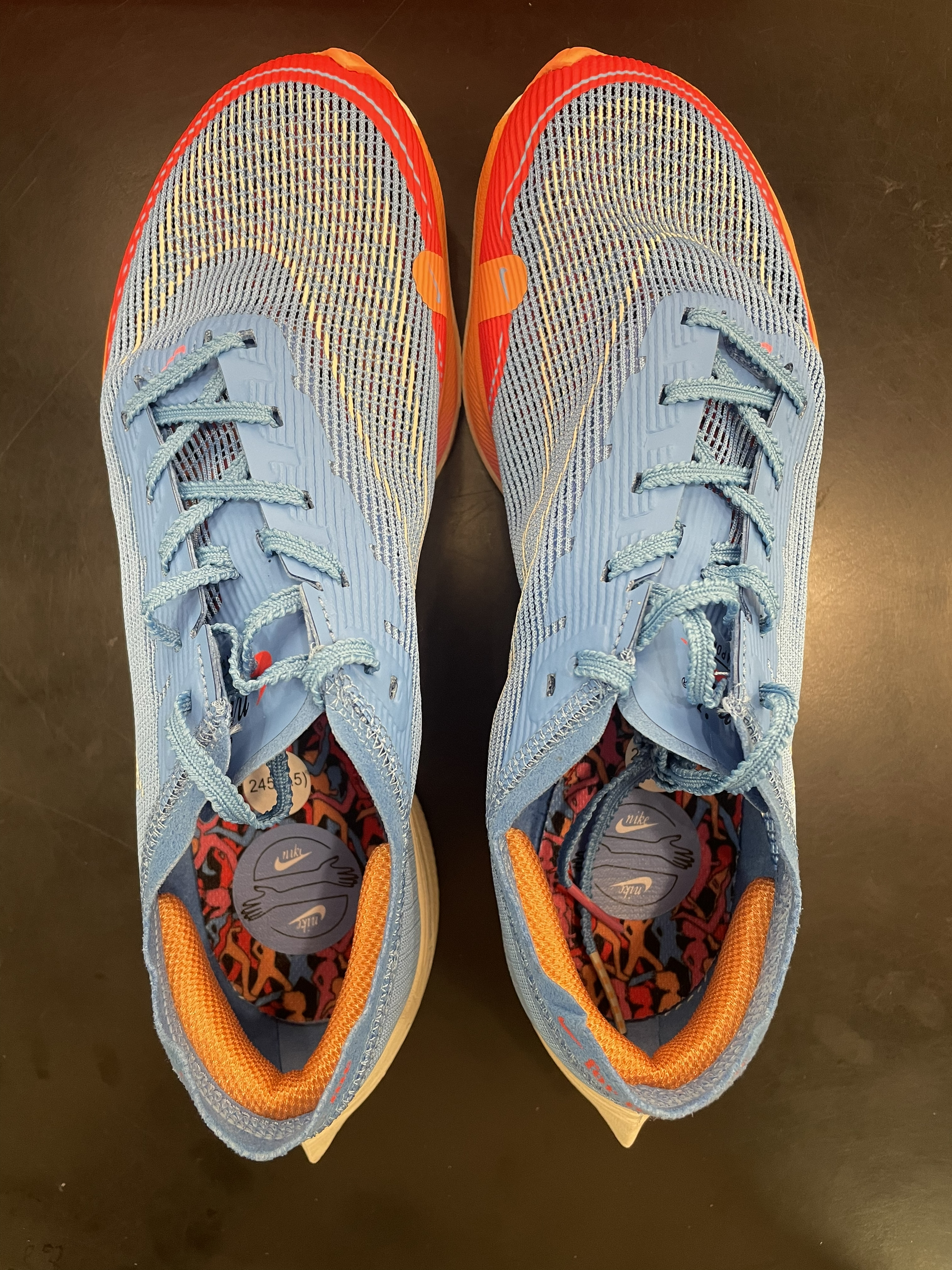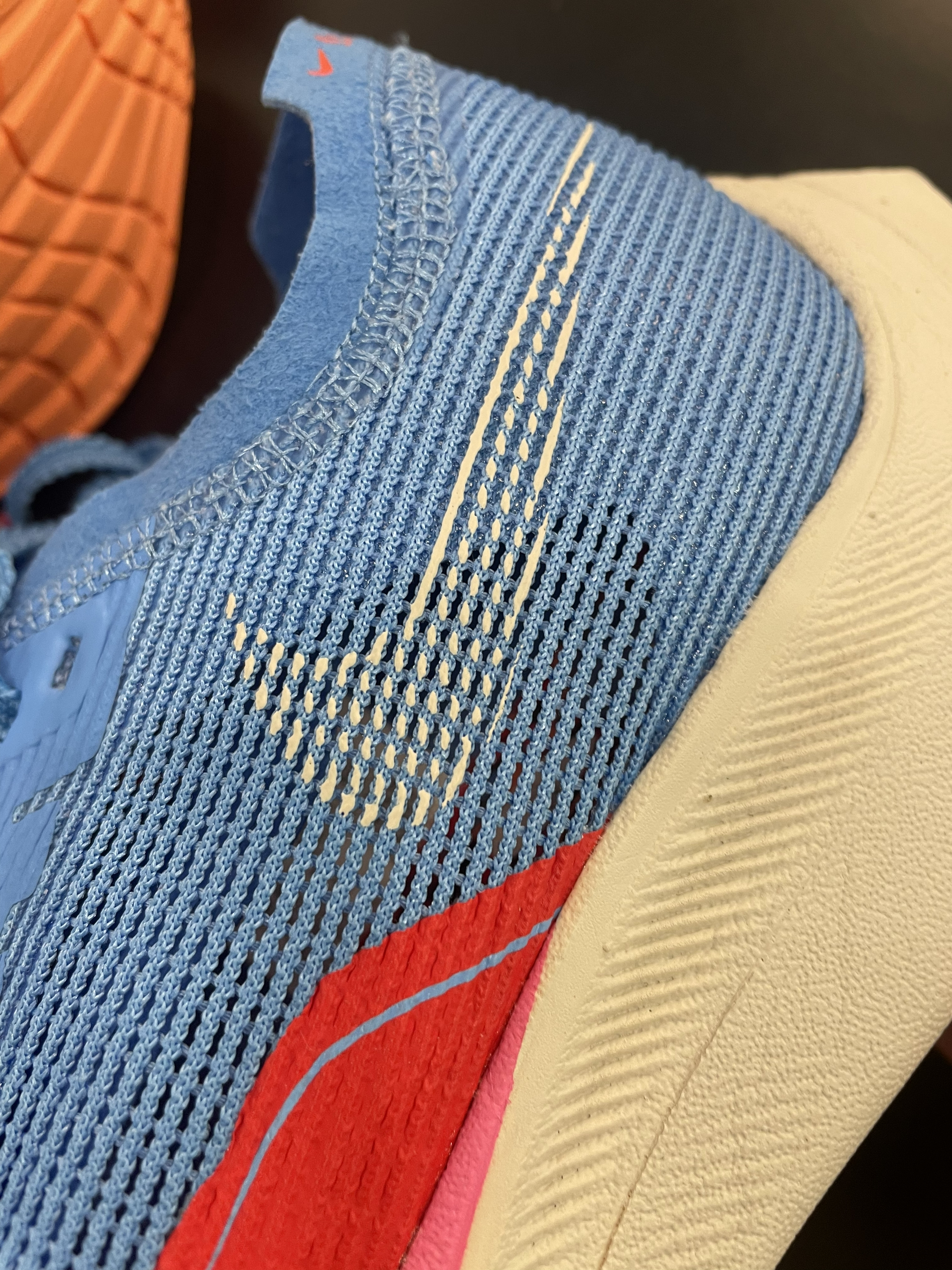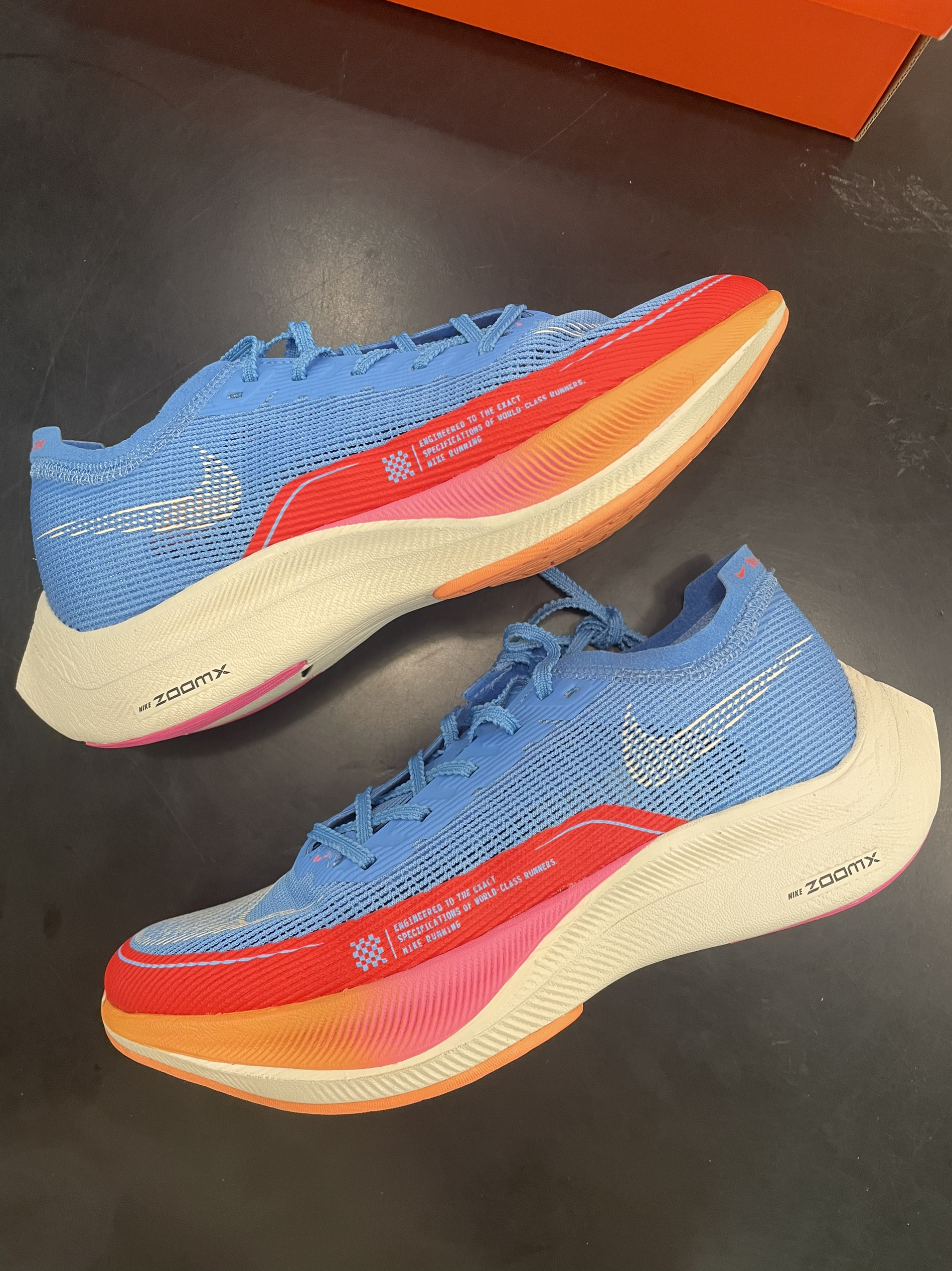 Nike ZoomX Vaporfly Next% 2 “For Future Me” 蓝红 编织鞋面加前掌半圈热熔胶补强,鞋面兼顾支撑与透气性。中底全掌ZoomX科技,脚感相当澎湃,踩屎感非常非常明显。中底还加了一块超大的碳板,跑起步来助推感明显,加上极低的重量,让你感受不到脚上穿了鞋,可以健步如飞⁉️ 这双马拉松跑鞋非常不错,但还是有一些局限性⚠️ 不适合日常通勤穿着,碳板刚性太...
