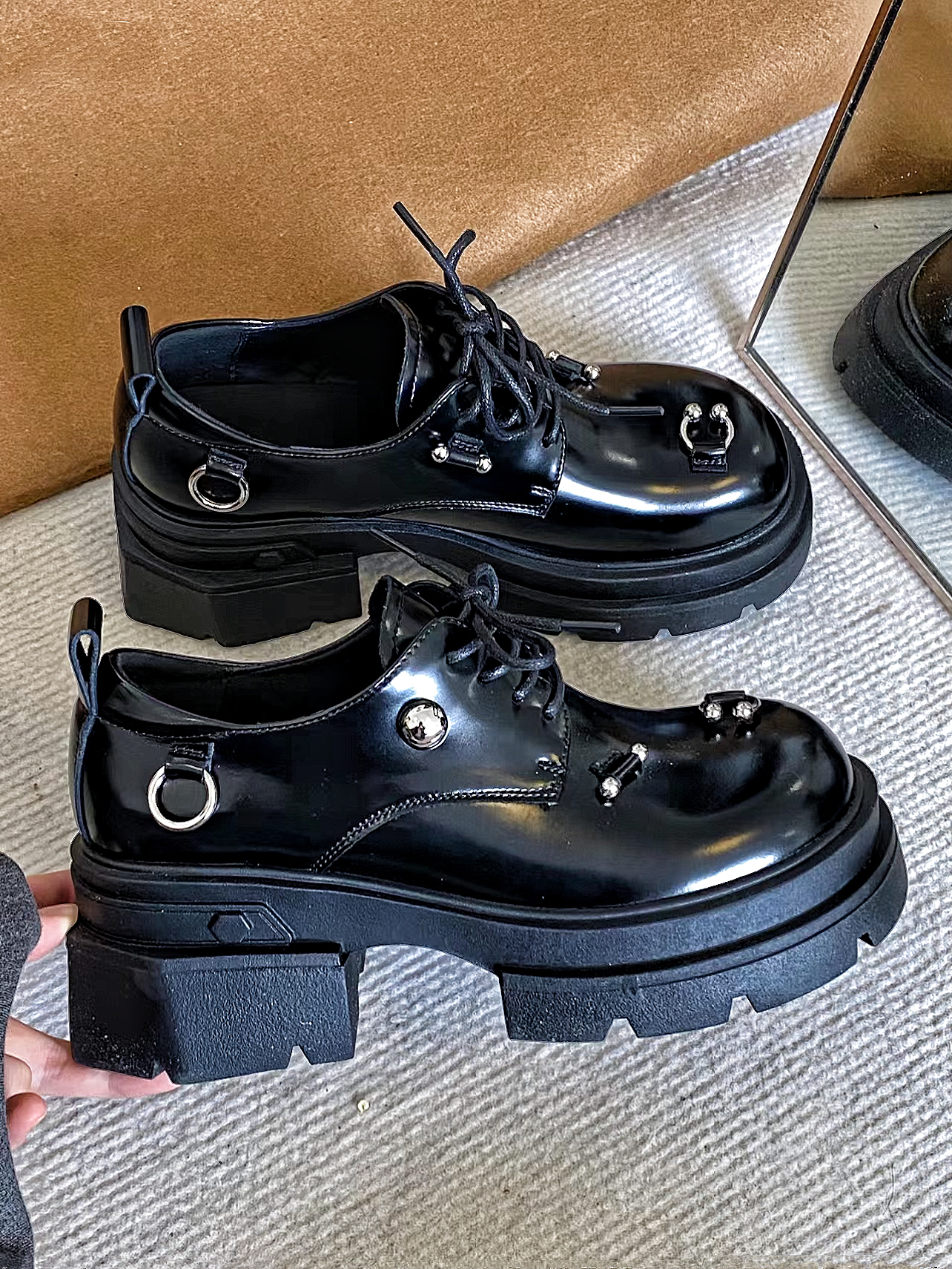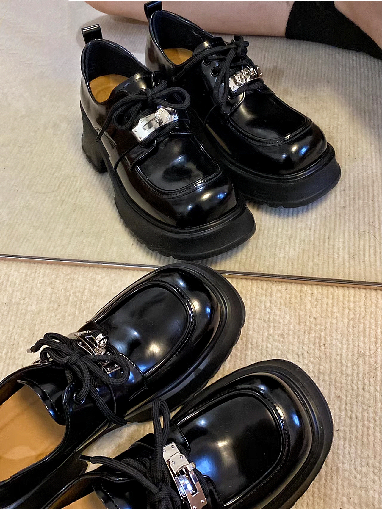 金属设计扣真的好爱!!! 根本穿不腻 鞋底设计好特别!厚底 增多了5公分,小个子女生的首选小皮鞋👞!