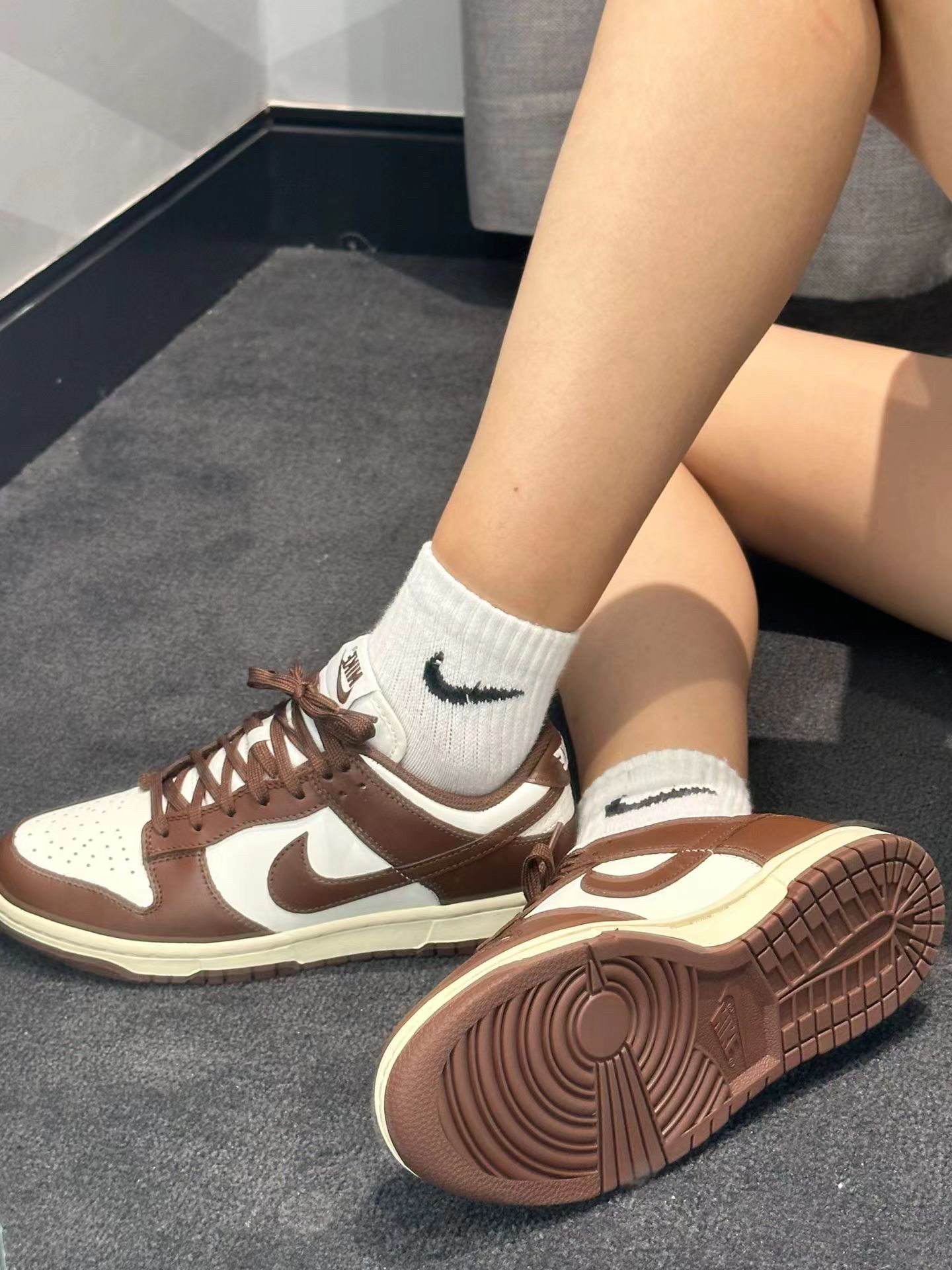 👟球鞋名称:Nike Dunk 时尚百搭 休闲鞋 纯白色/棕色 🔍设计亮点:巧克力低帮板鞋,这个新配色真的太绝了!外观上选用白色/巧克力棕作为搭配,简约大气非常耐看,中底还采用了氧化做旧的设计,为整体增添了一丝复古感,鞋面材质选用光滑皮革,经久耐穿柔软舒适😘 ⛹️实战感受(缓震/包裹/抓地力):脚感舒适,经典鞋型✨✨✨ 📃总结评价:巧克力棕永远不会过时耶,上脚轻松get氛围感,谁穿谁好看系列...