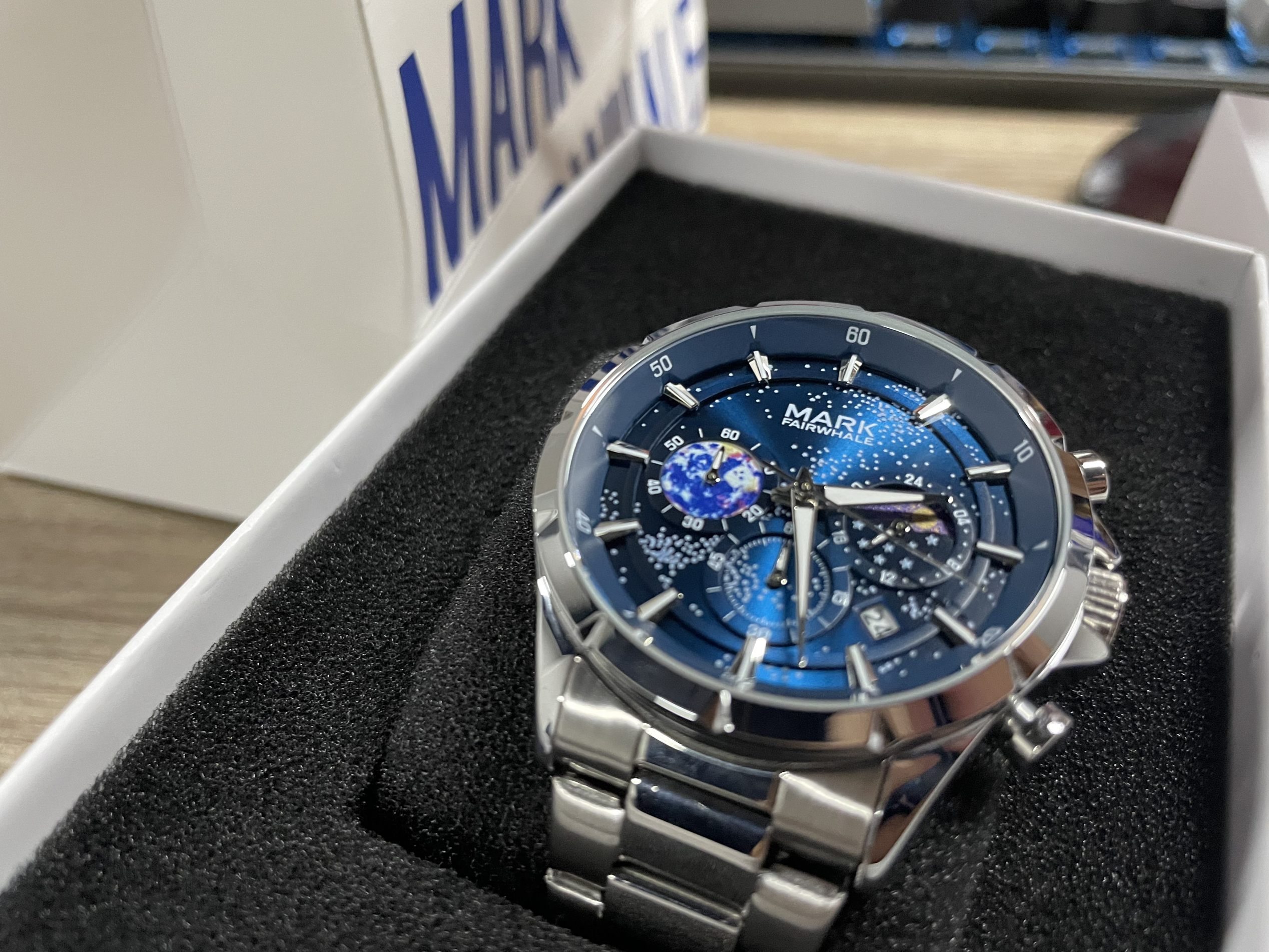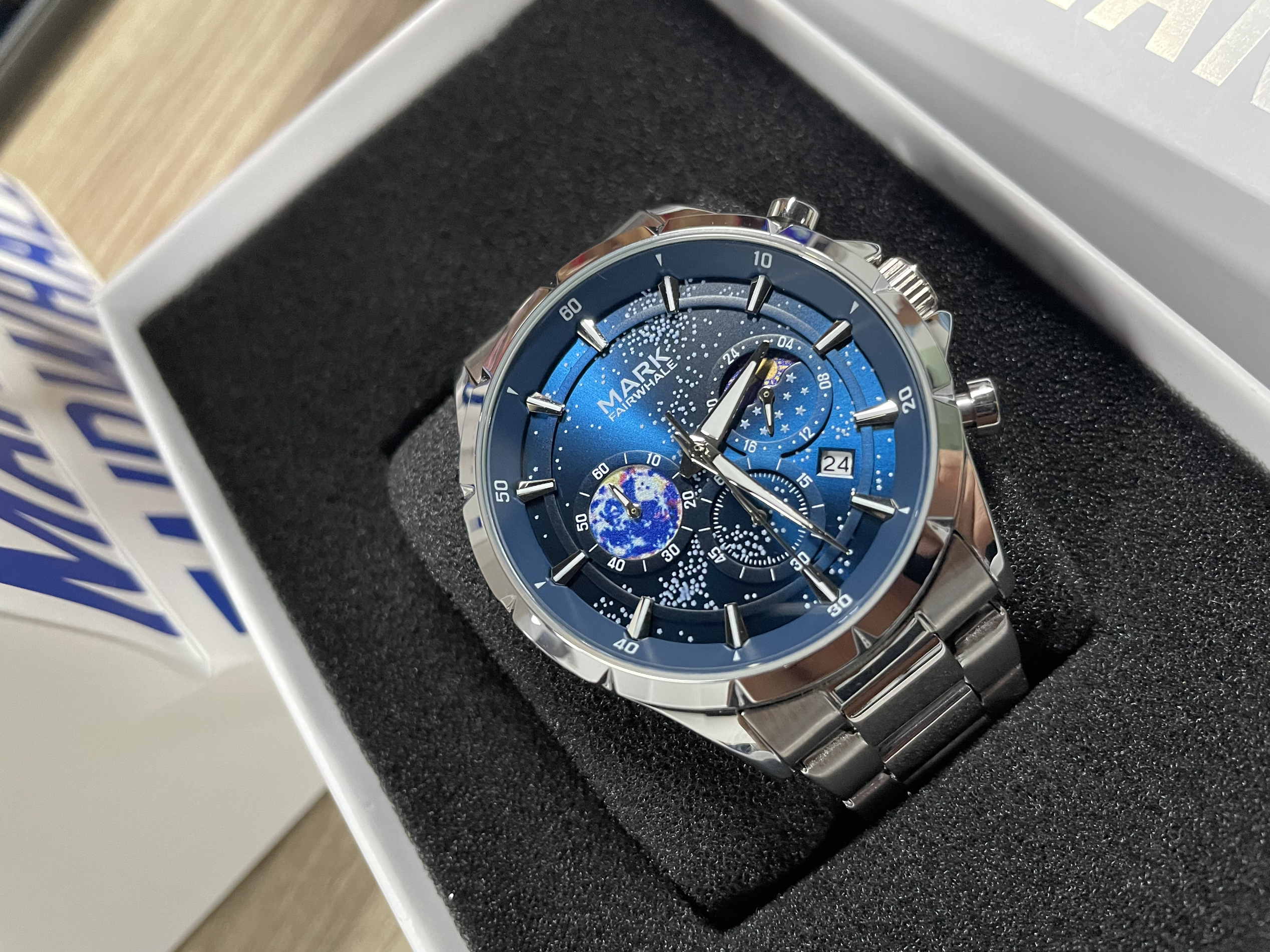 本篇笔记关联了Mark Fairwhale/马克华菲 日月星辰大海大表盘风格夜光防水高中石英男士手表 银壳蓝面皮带 等商品,为用户提供真实的使用体验和购买参考。