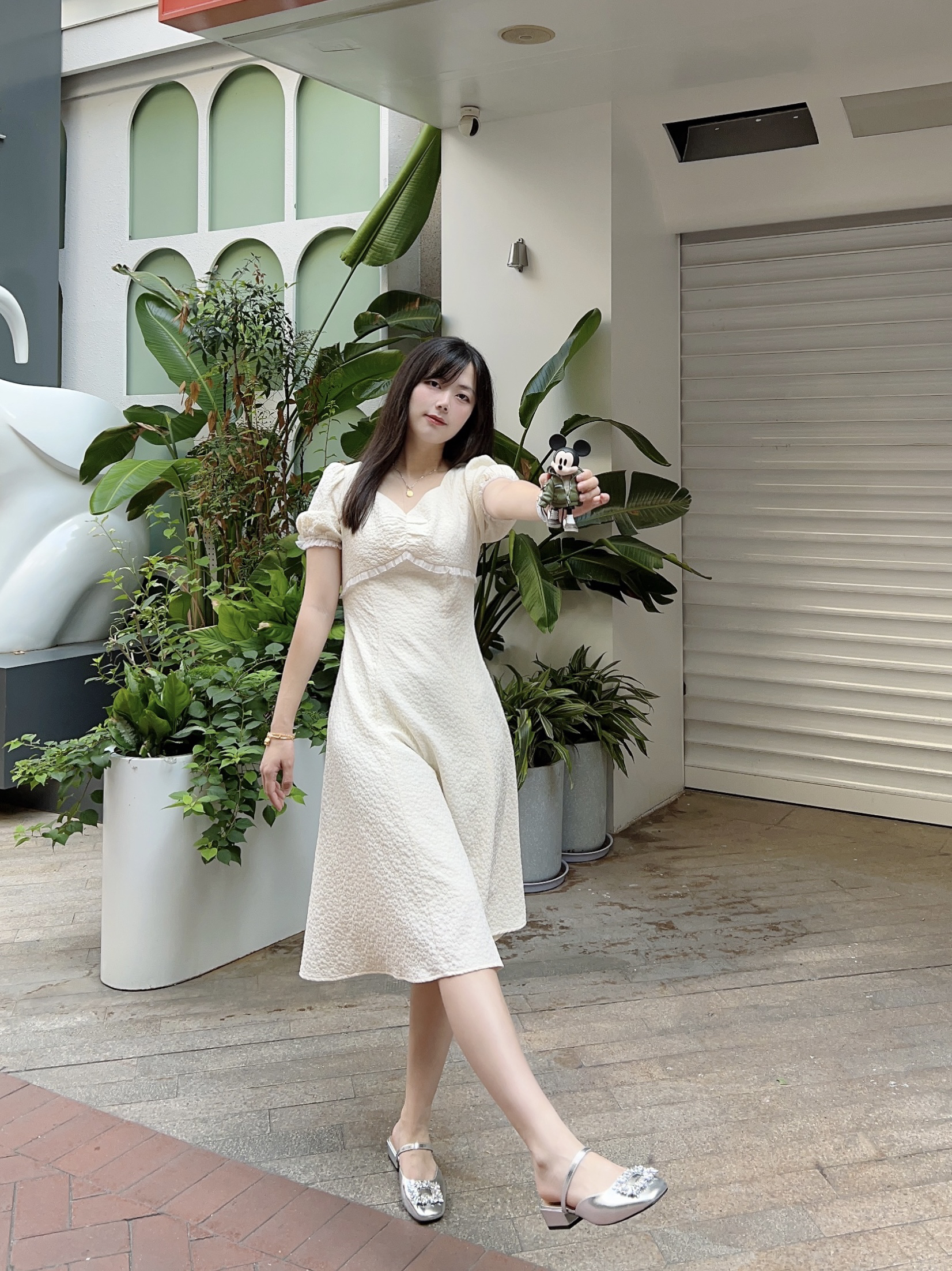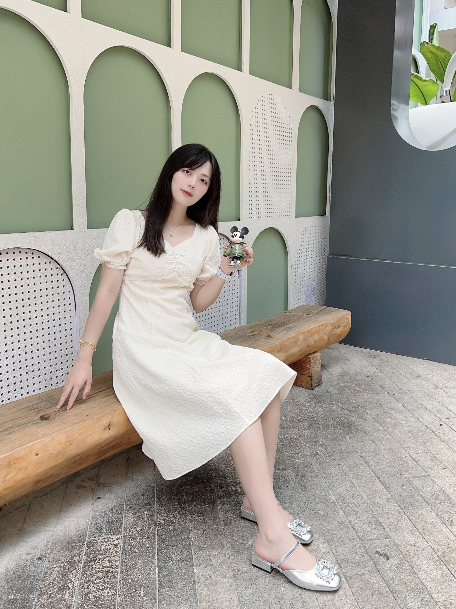 哈喽,又到了小半的穿搭分享时间啦 今天是夏季淑女风穿搭分享 一身白色的连衣长裙,淑女气质满满🈵️ 搭配上银色包头拖鞋,银色真的是一个很搭配的颜色,鞋头blingbling的装饰和谐好看。半拖鞋设计,出门真的很方便~ 搭配裙装还是裤装都是很棒的选择 ٩(˃̶͈̀௰˂̶͈́)و