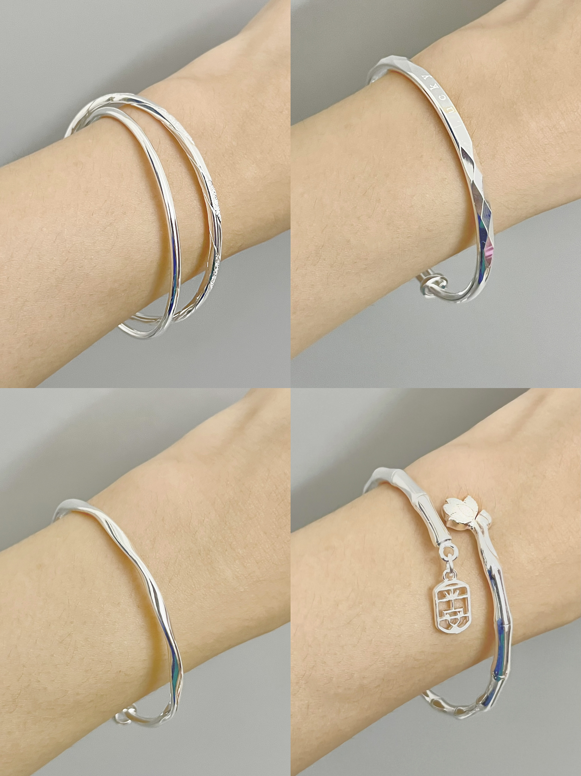 手镯合集来咯 每一款都美到失语😭 👧幸运女孩:菱形光面闪闪的 hin有质感 刻有lucky 开口可调节 戴上就是幸运女孩啦 ♾️爱意无限:莫比乌斯的款式尊滴简约又不失大气感 戴上显得手腕纤细修长 💘环爱手镯:双环叠戴增加了层次感 显得更为灵动精致 清冷感拿捏住 🎋净心莲手镯:一眼沦陷 尊滴呔爱啦 竹节设计搭配镂空平安牌 hin好搭衣服 是我心中的白月光没错啦 这四款不论是自用还是送礼...
