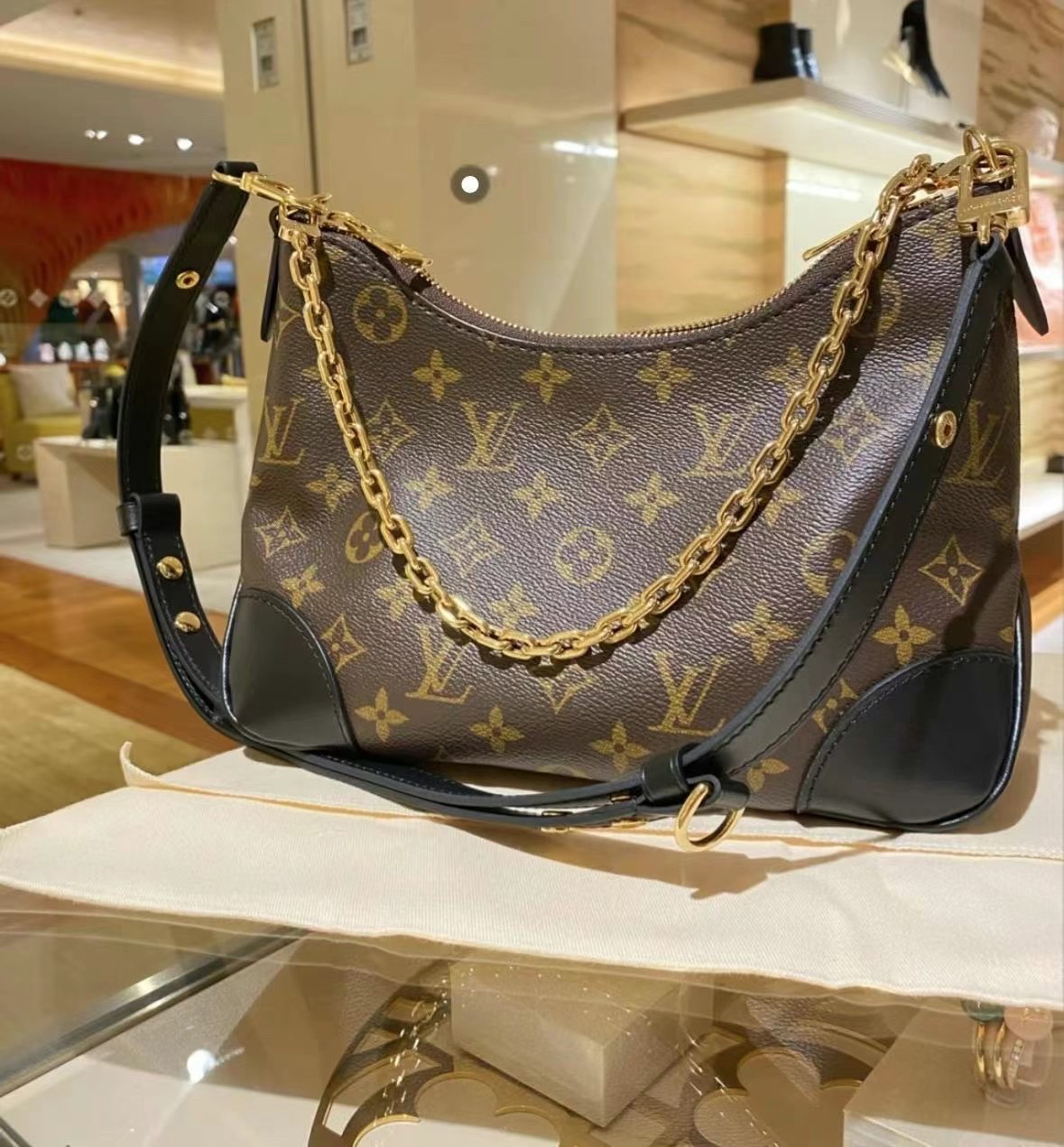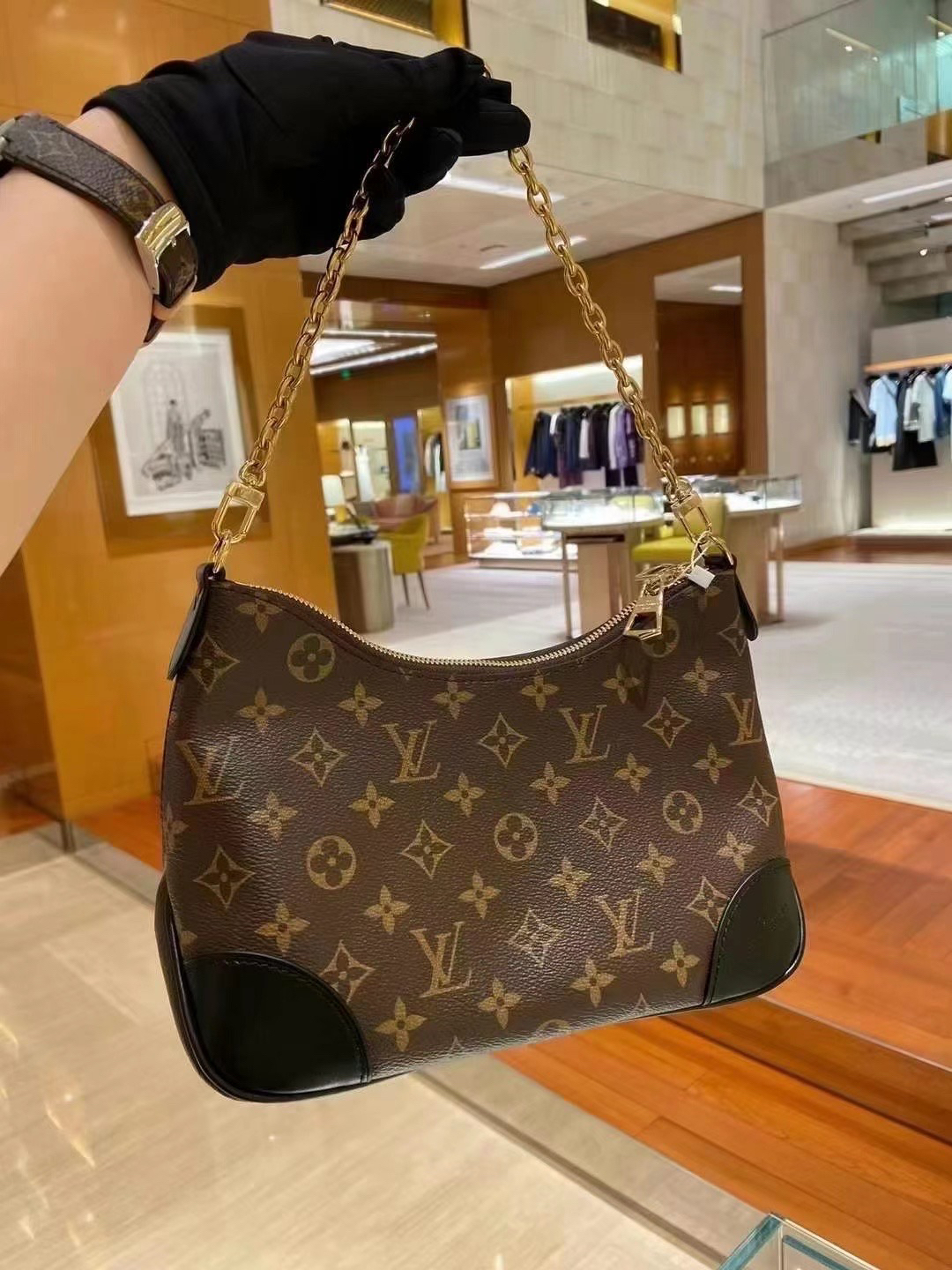本篇笔记关联了Louis Vuitton Boulogne 涂层老花帆布拼牛皮革黄牛角饰边可拆肩带链条单肩牛角包斜挎包 黑色等商品,为用户提供真实的使用体验和购买参考。