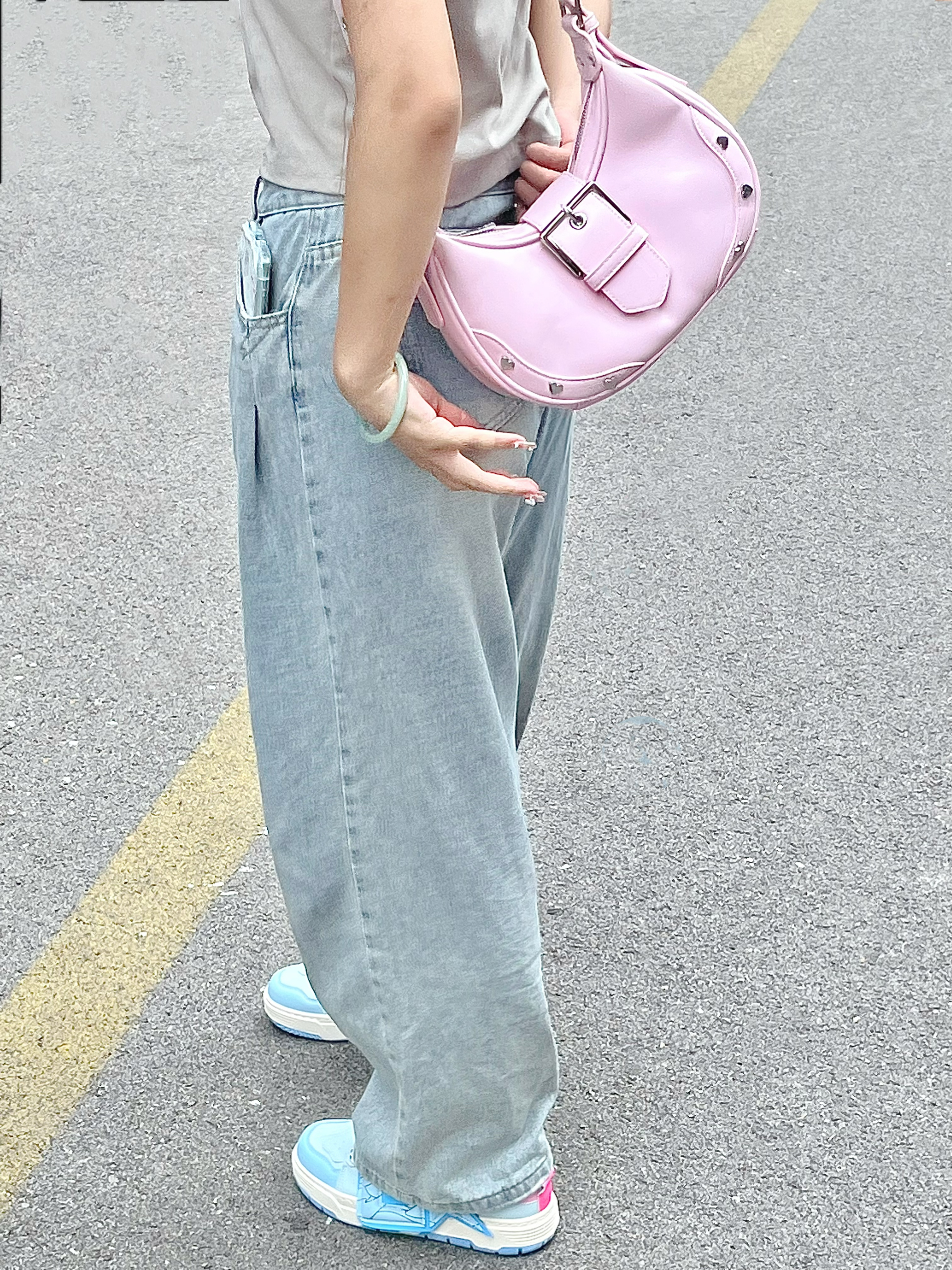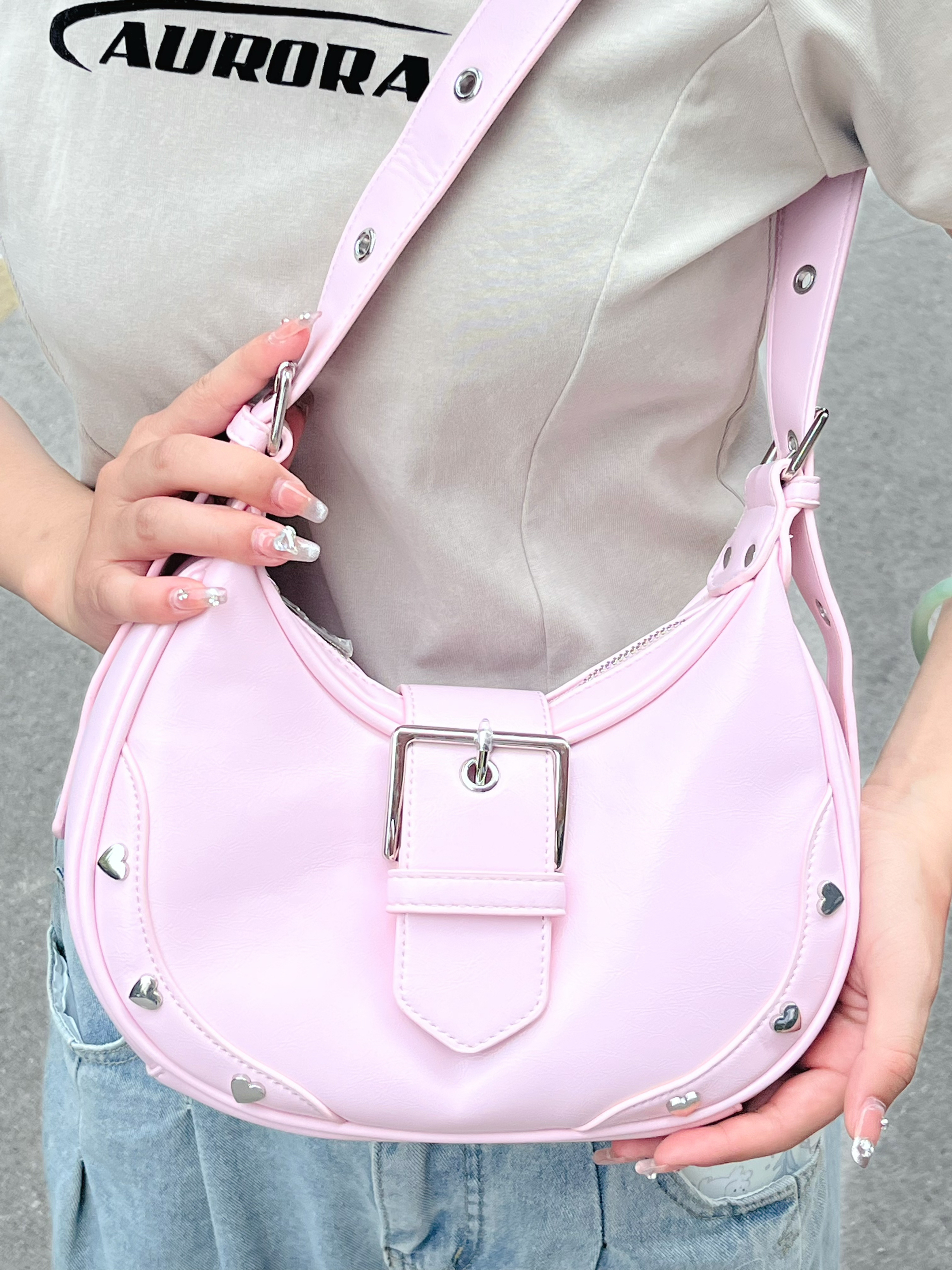 完全少女心爆棚的包包哇! 上身温柔又酷辣!hin减龄! 日常出街单肩斜挎都可,嘟尊的好美! 还有好特别的爱心柳钉装饰简直美麻了!