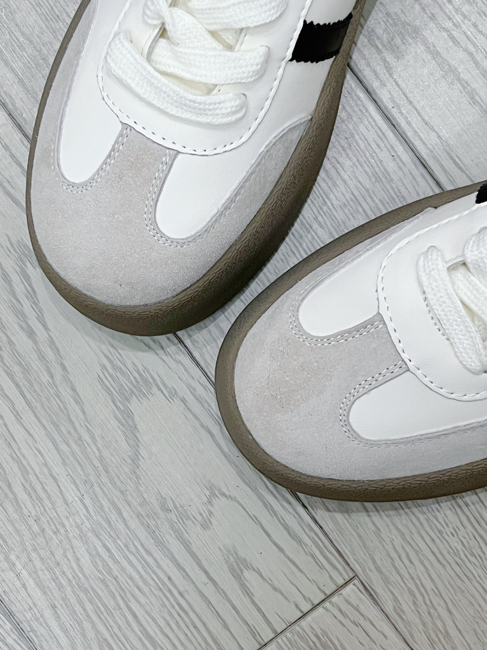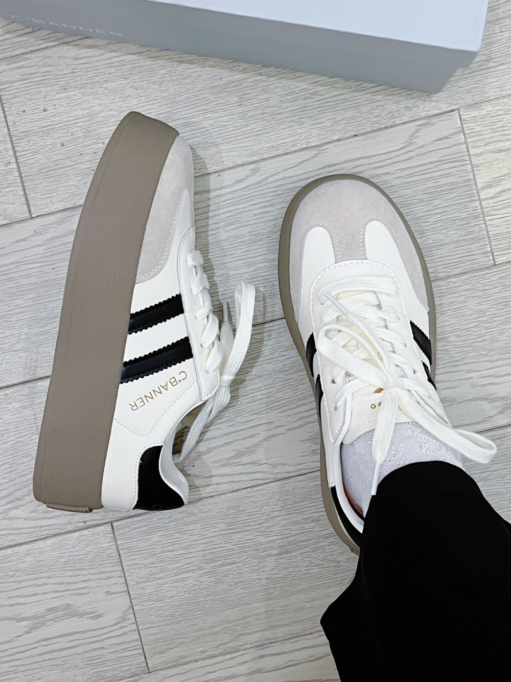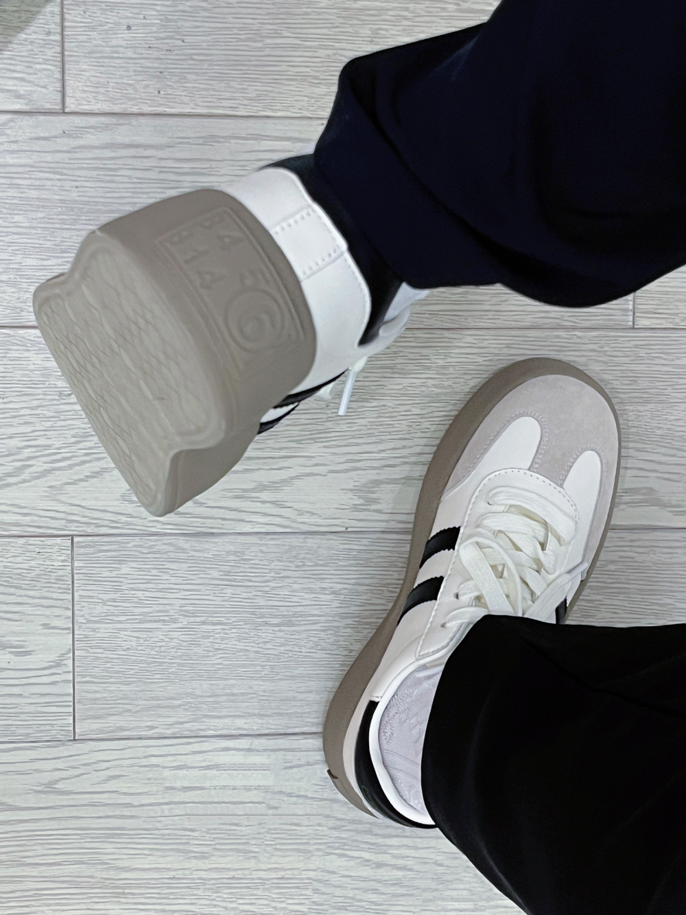 丸子🍡冻冻来分享❣️ 今天分享的就是这双非常🈶复古风的板鞋啦 这双板鞋和德训鞋还蛮像的🎉 鞋面是皮革和麂皮的拼接设计 看上去看上去很有质感💓 鞋底还是那种防滑材质的橡胶底 很舒服👍🏻 搭配黑色裤子都能很好看的程度怎么会不爱呢