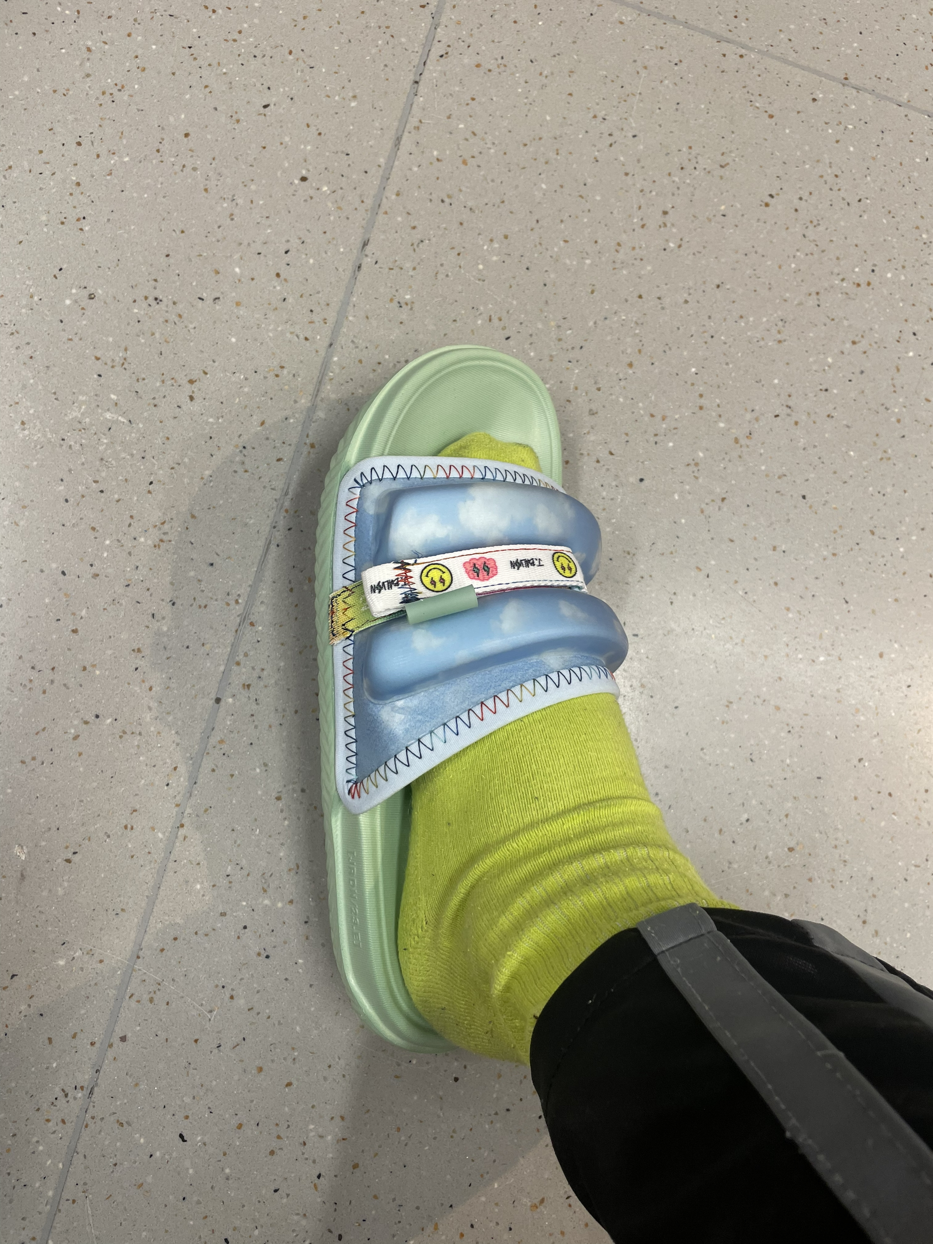 嘿,各位大朋友们,这里有一款超酷的潮流拖鞋想要给大家介绍!它是J Balvin与Air Jordan联手打造的Super Play Slide SP拖鞋,采用蓝绿配色,瞬间让人想起大学的夏天,记得那时候我们总是穿着拖鞋在校园里晃荡,自由自在。 这款拖鞋不仅外观时尚,而且舒适度极高,鞋底软绵绵的,就像我们的校园生活一样。它的设计独特,带有J Balvin和Air Jordan的经典元素,穿上它就像脚...