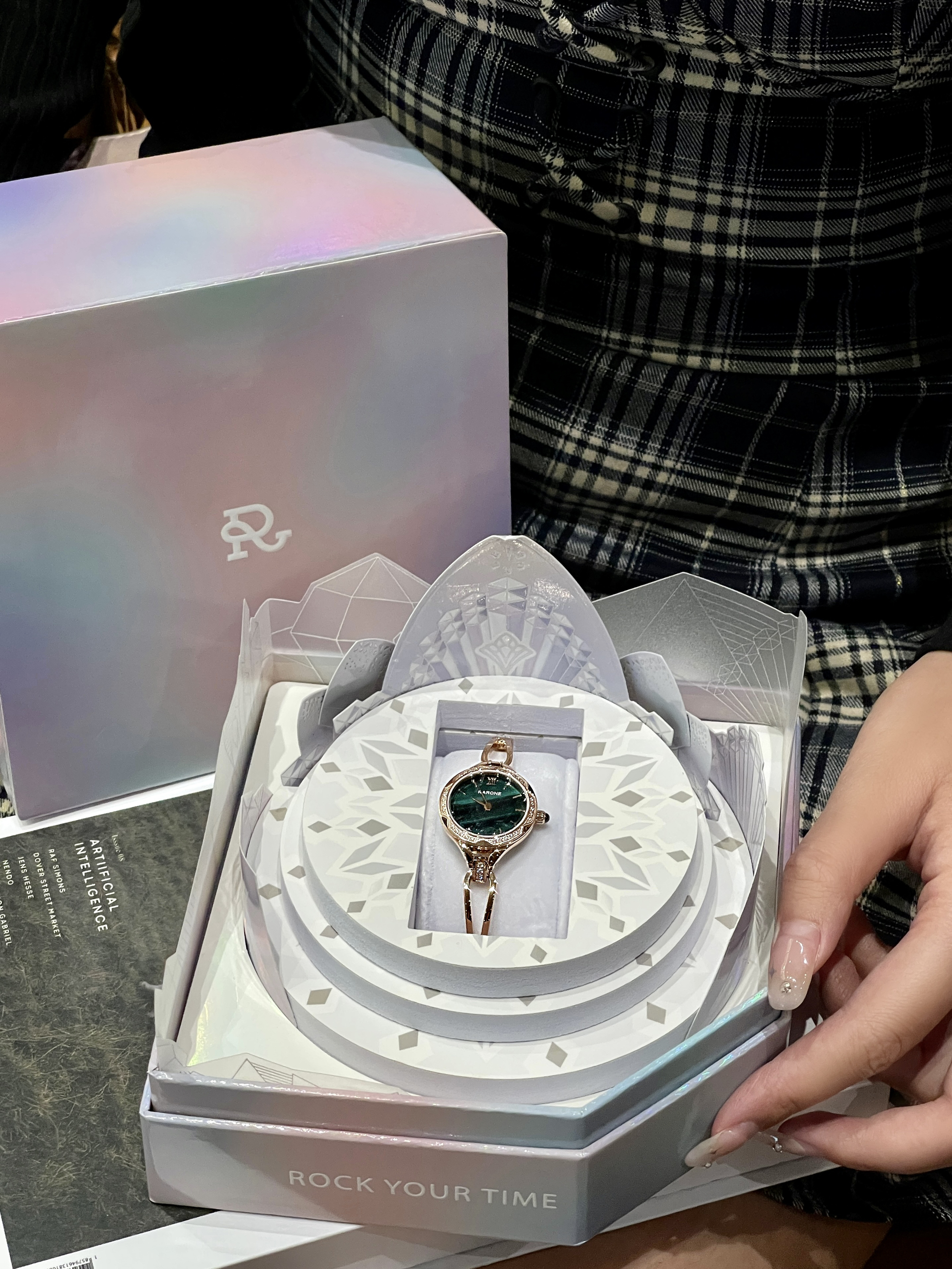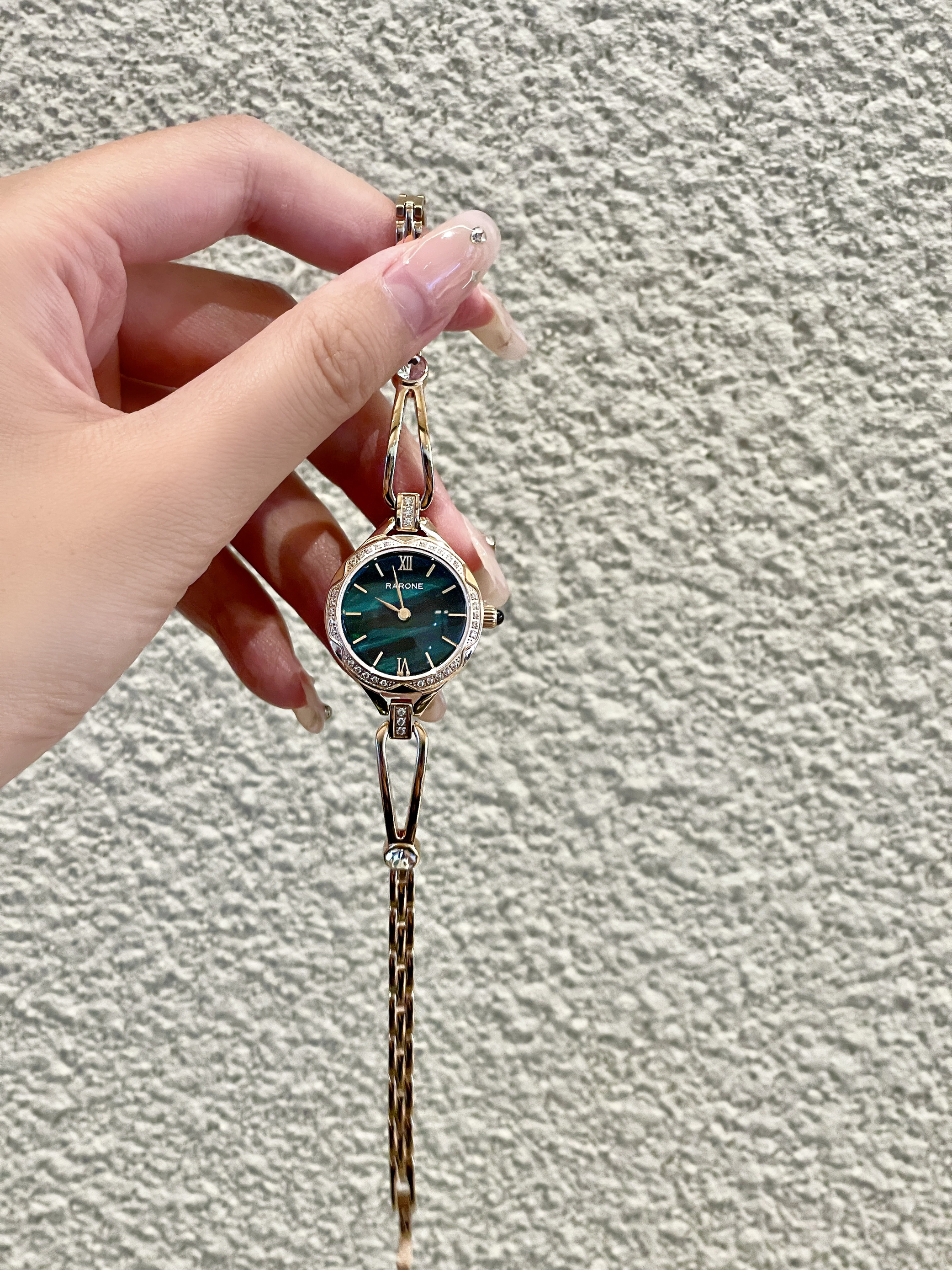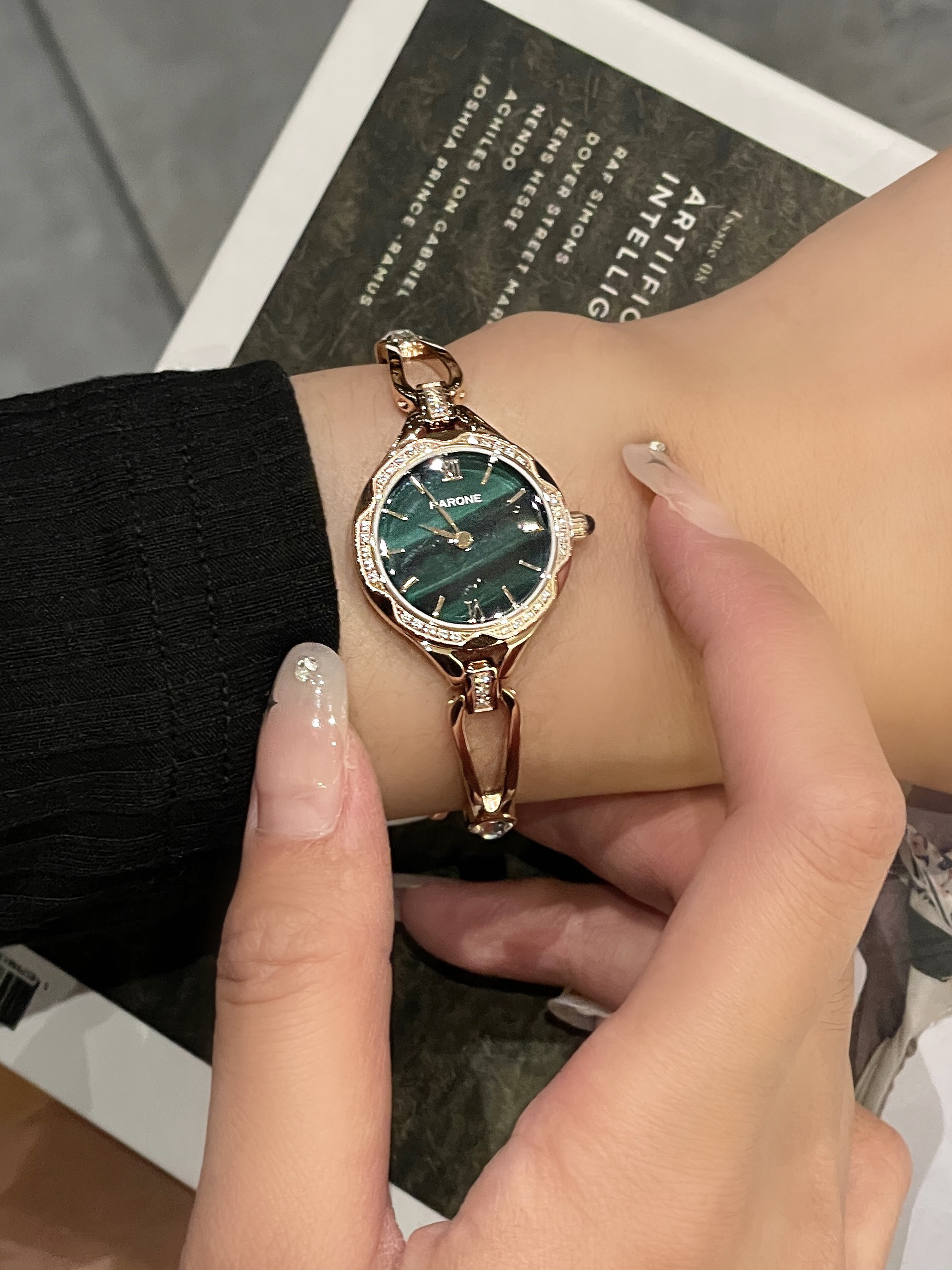 本篇笔记关联了RARONE/雷诺 小蛮腰珠宝式女士首饰手链设计腕表ins风轻奢防水精钢表带石英表 孔雀石绿等商品,为用户提供真实的使用体验和购买参考。