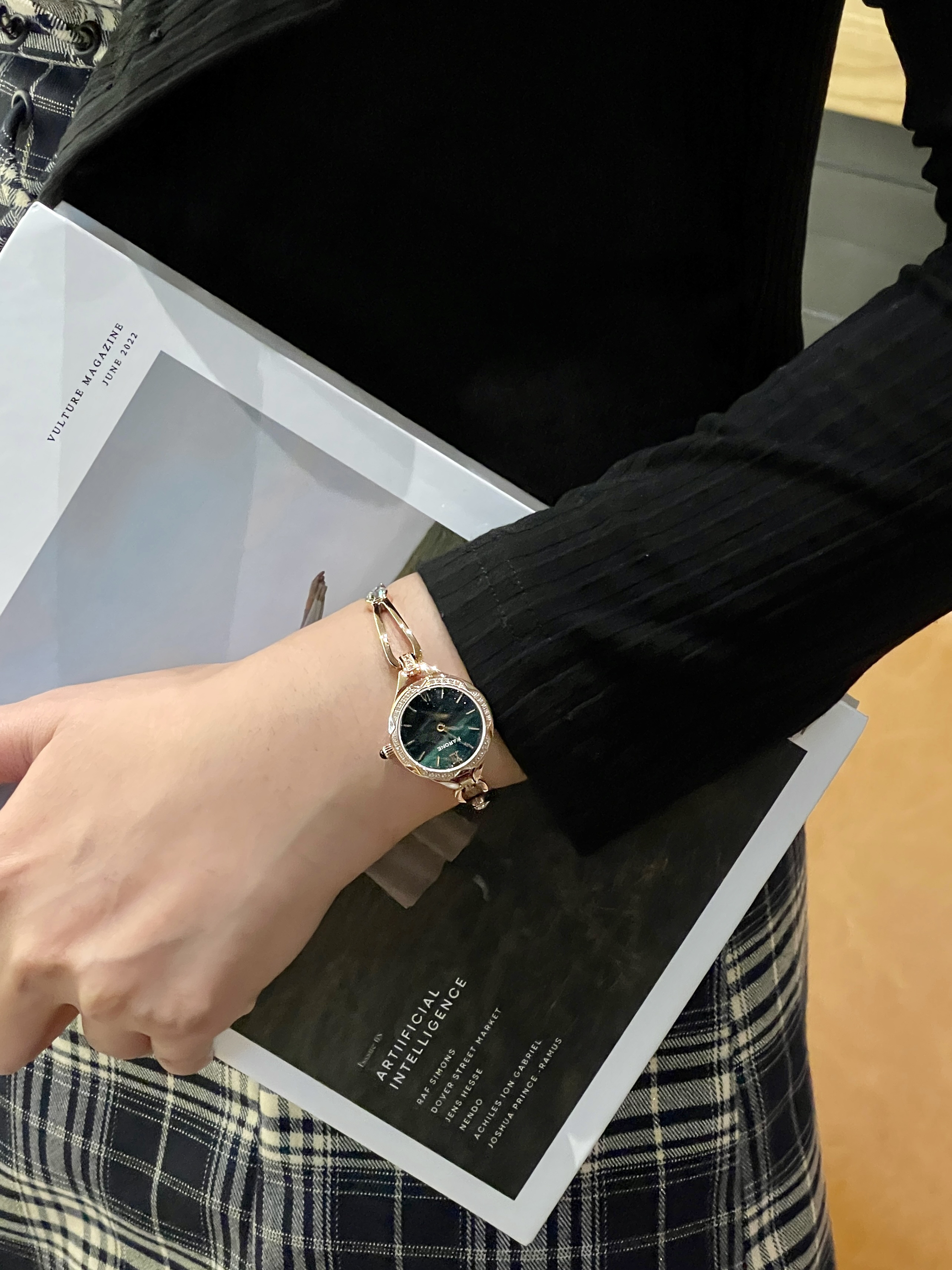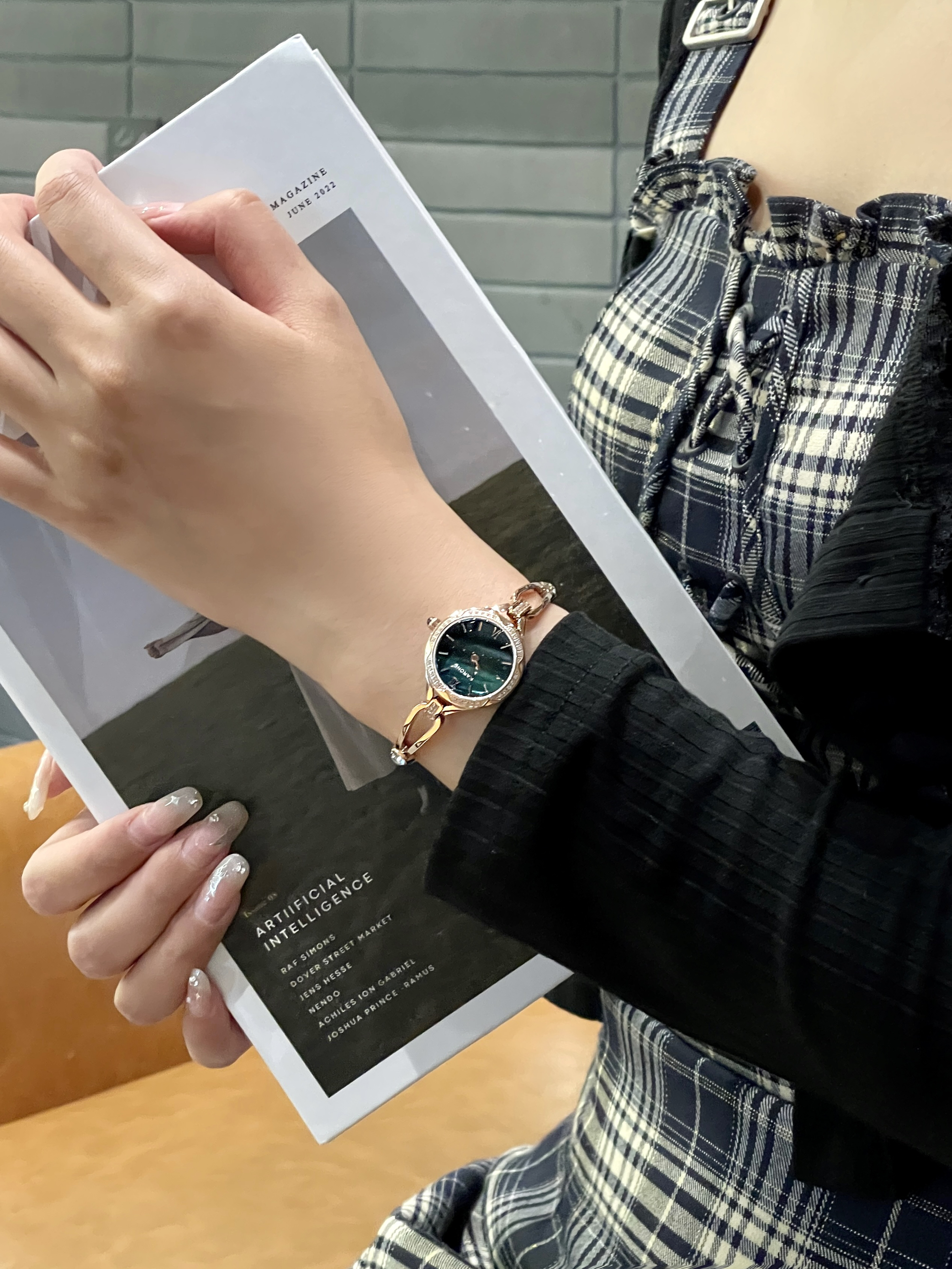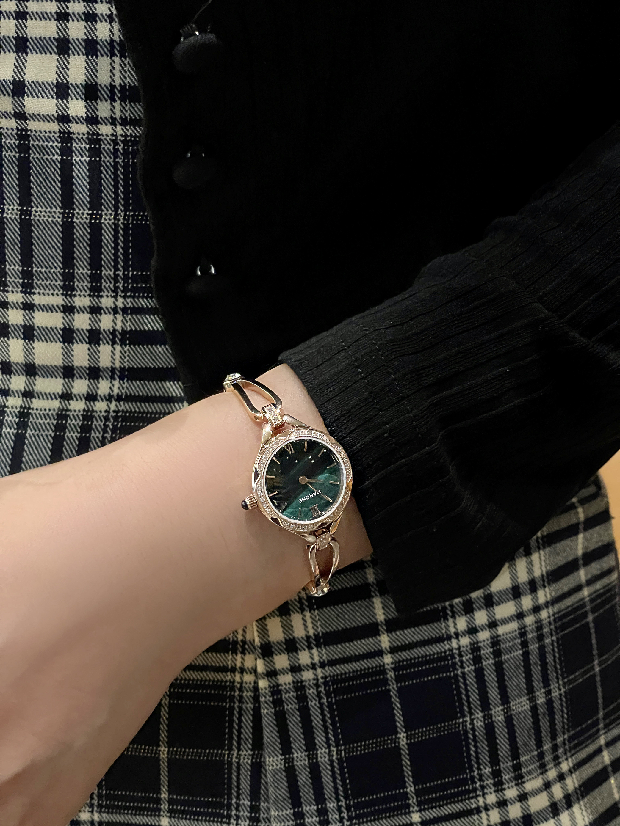 这表真是长我的审美上了 镂空的表链配上孔雀石绿的圆形表盘 上手精致大气不说 显得手腕都细细的 - 日常通勤上班聚都常带 不愧是三十多年的资深国产品牌 把我原本枯燥的衣服 衬托出了另外的味道~