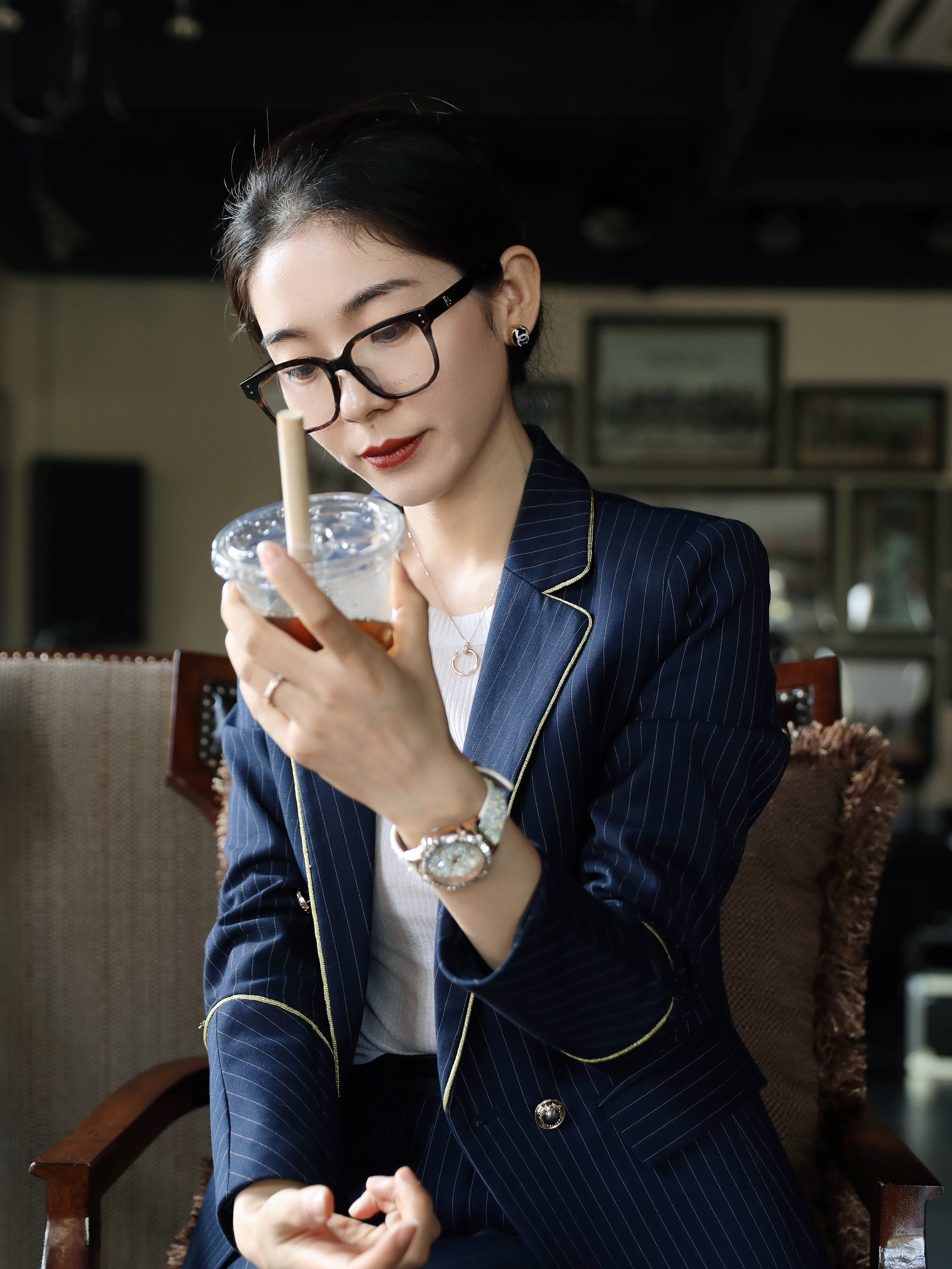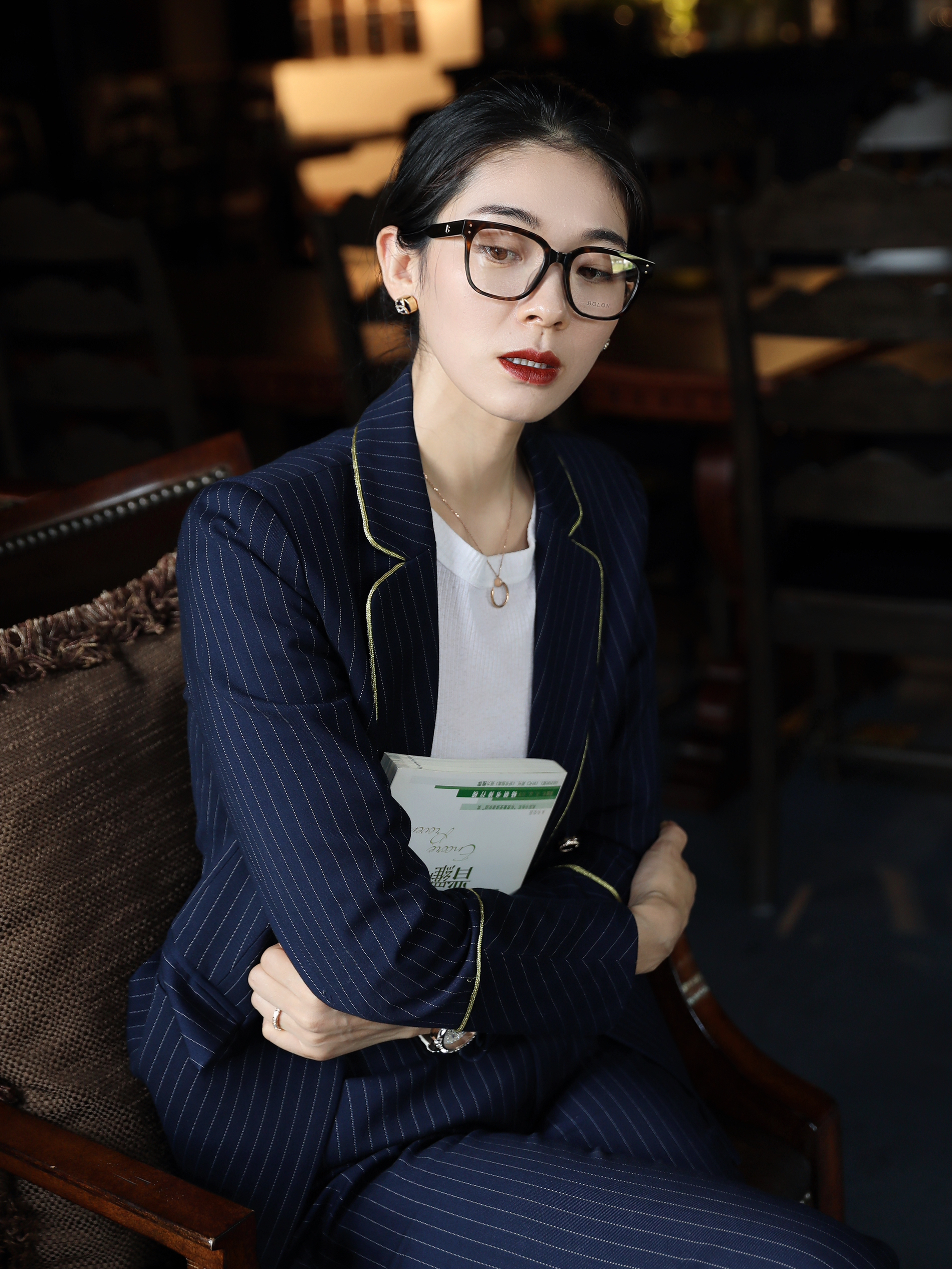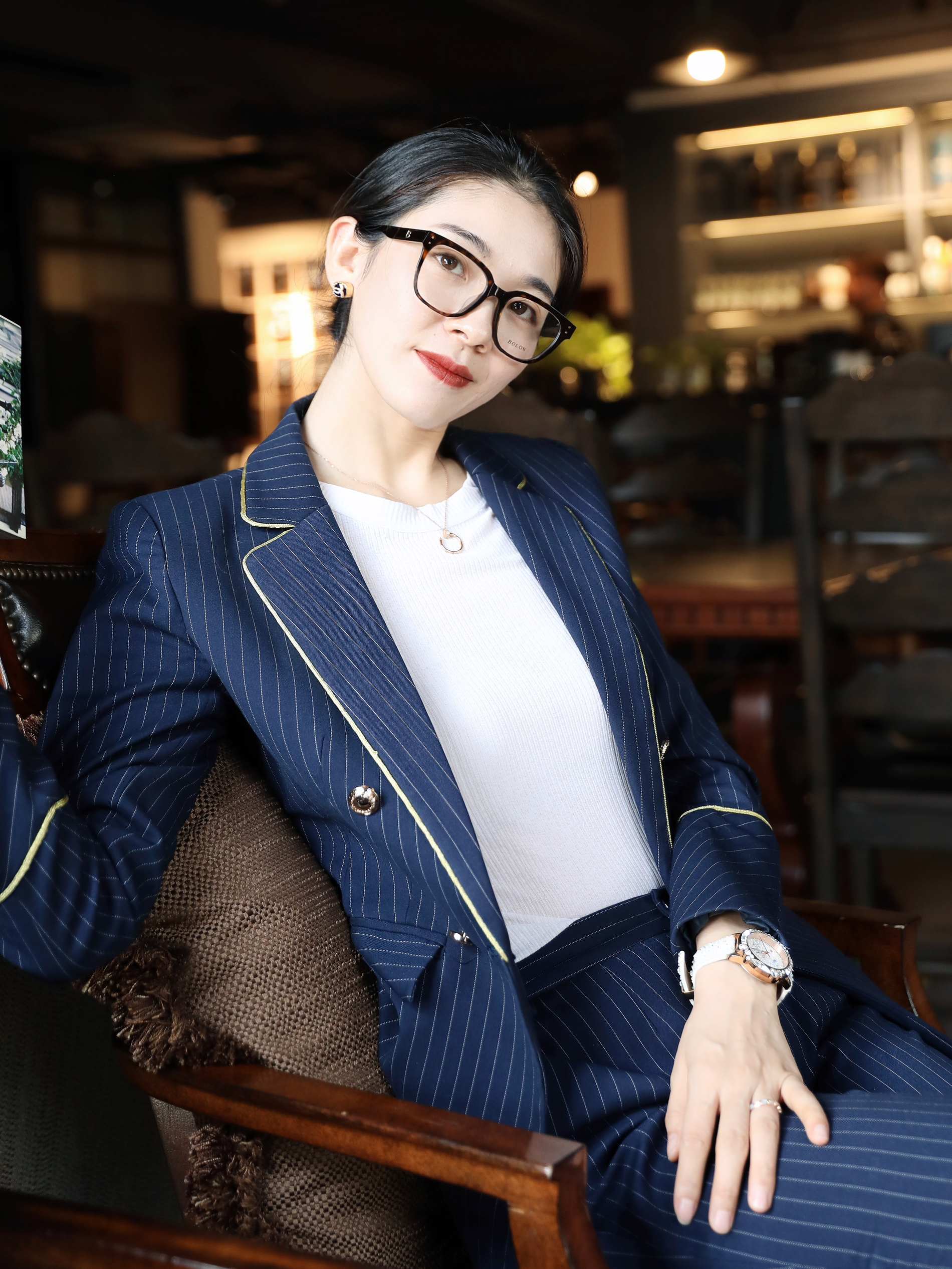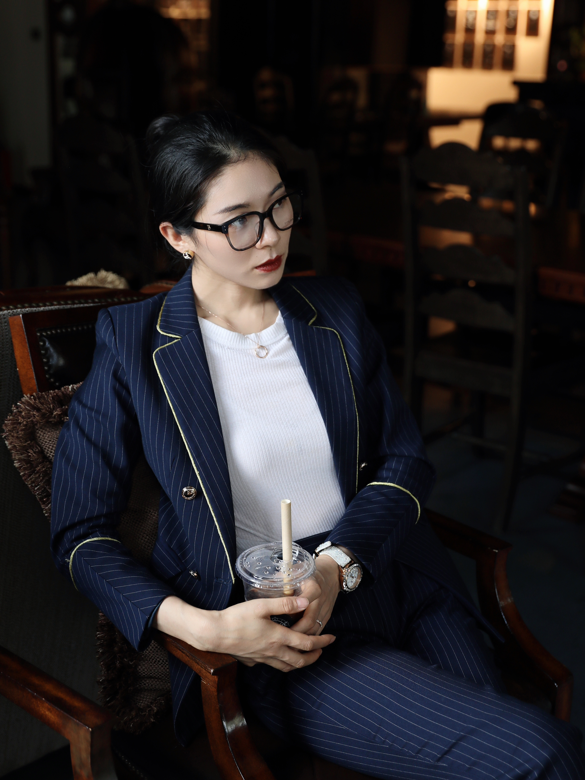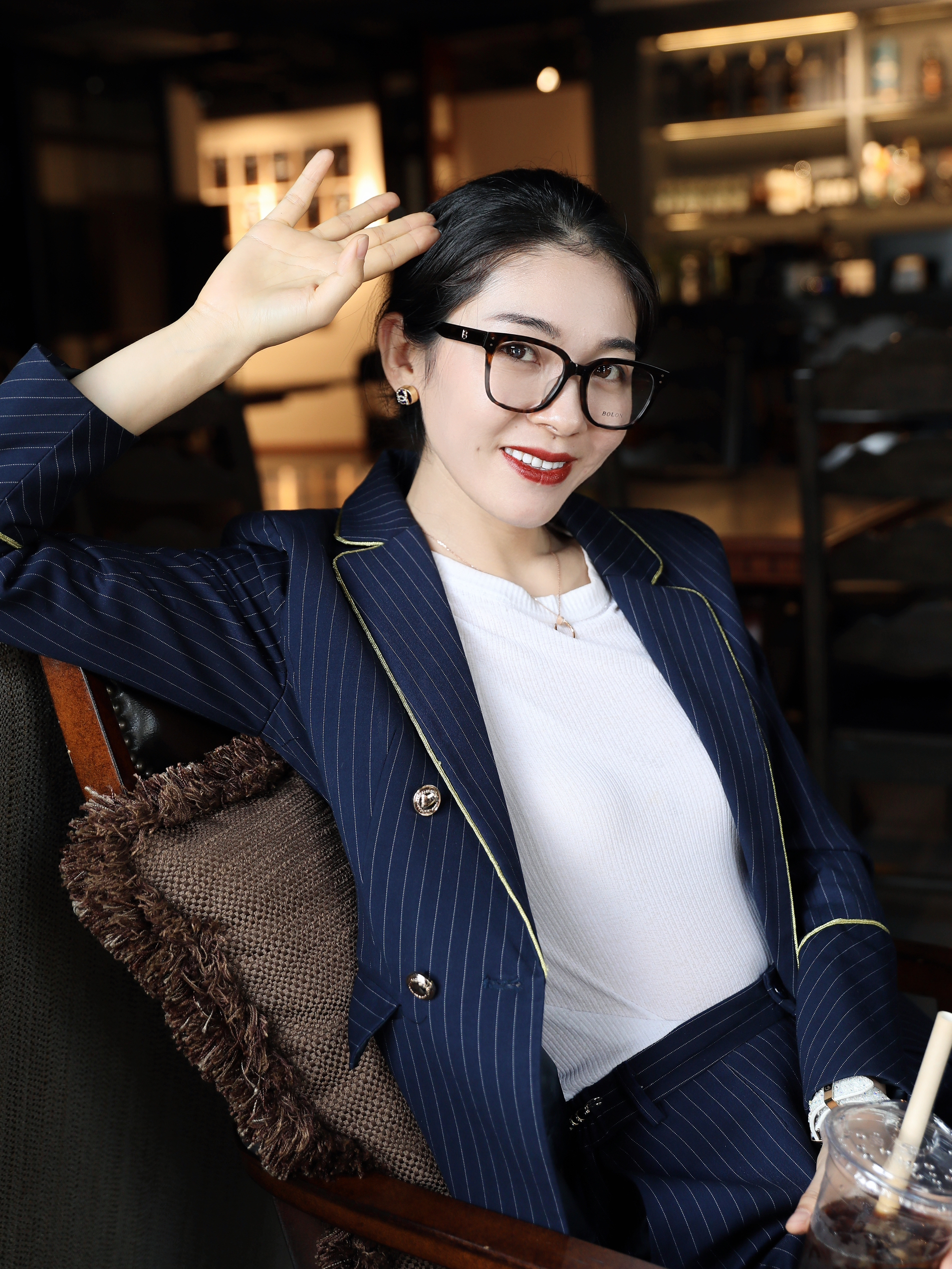 今天看起来有种女强人的既视感 职场人的标配 除了干净利落的服装 一些精致的质感配饰当然也不能落下了! 像今天搭配的这个眼镜就是个栗子 简约纯黑的眼镜框挺好搭配的 重点是它能修饰脸型 每次戴上都感觉自己的脸真的小了一圈hh~