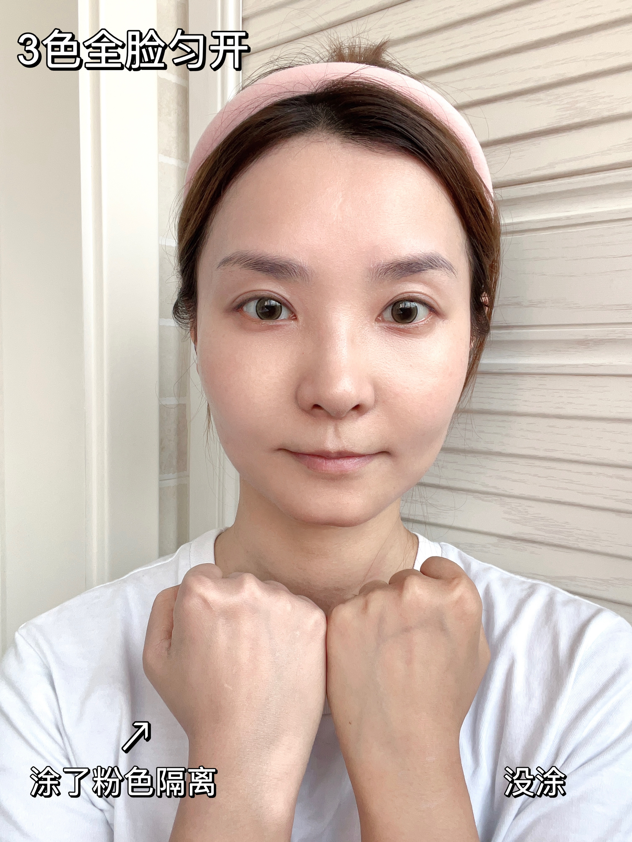 我是个黑黄油敏皮,脸颊一直会有些红色,所以有色隔离每次都是绿色紫色一起买分区上妆的。这次试了试带珠光的粉色隔离。局部提亮和修饰黑眼圈的效果很不错诶~ 话说这次Za新出的隔离霜惊到我了,4🈴1隔离也太卷了叭❗️本职工作是修正肤色+让后续妆容更服帖持久,但居然它还额外搞了防晒和美白特证…早八打工人和懒人福音啊~我觉得性价比很不错✔️