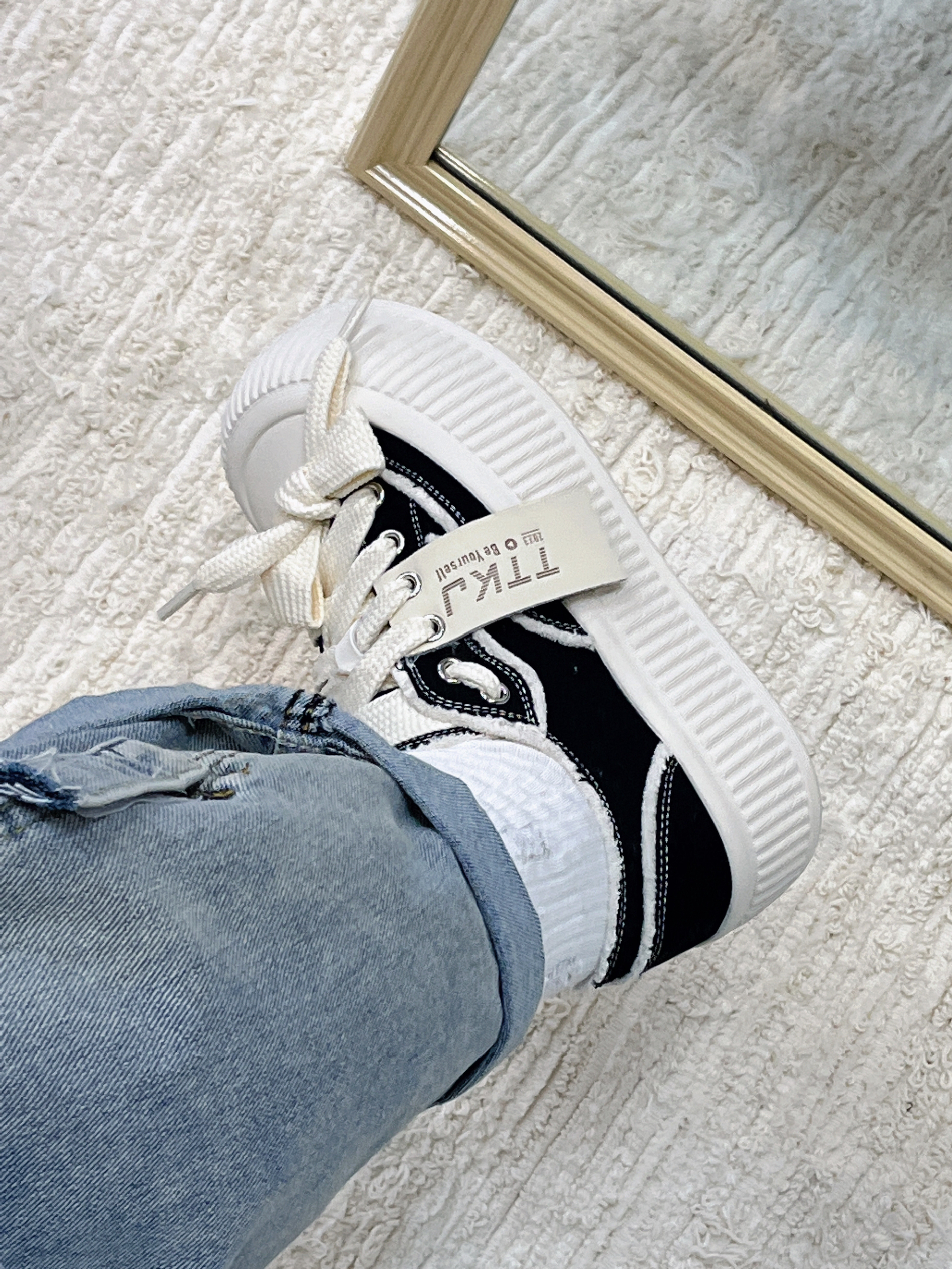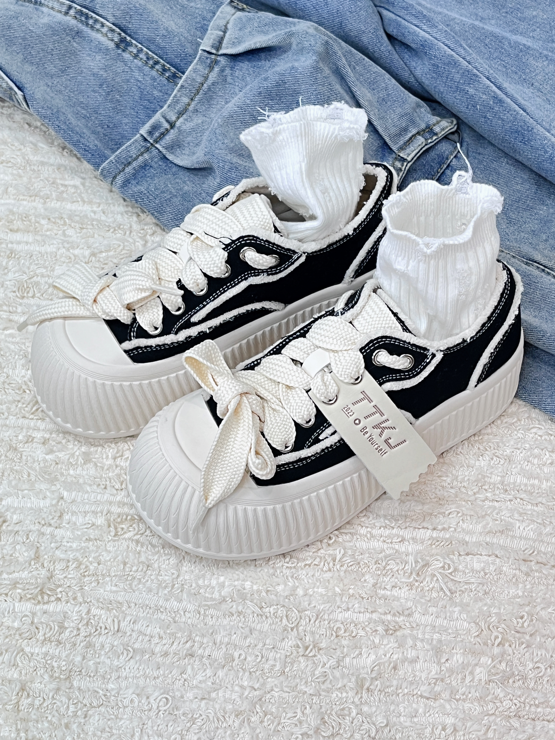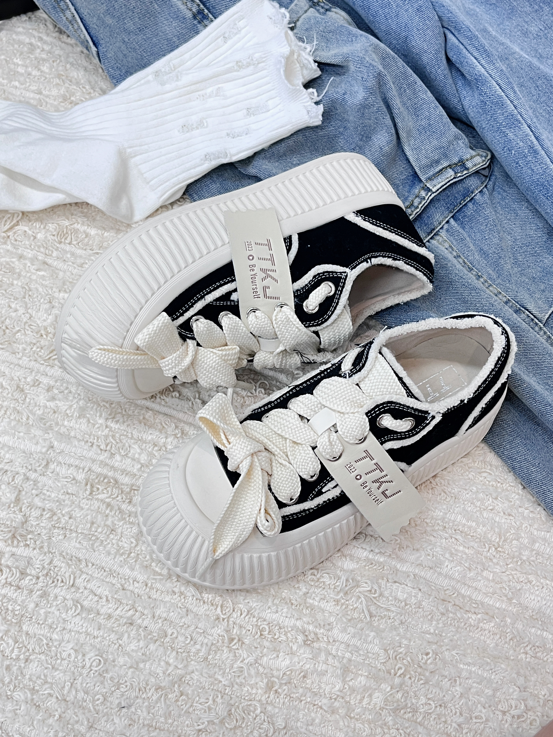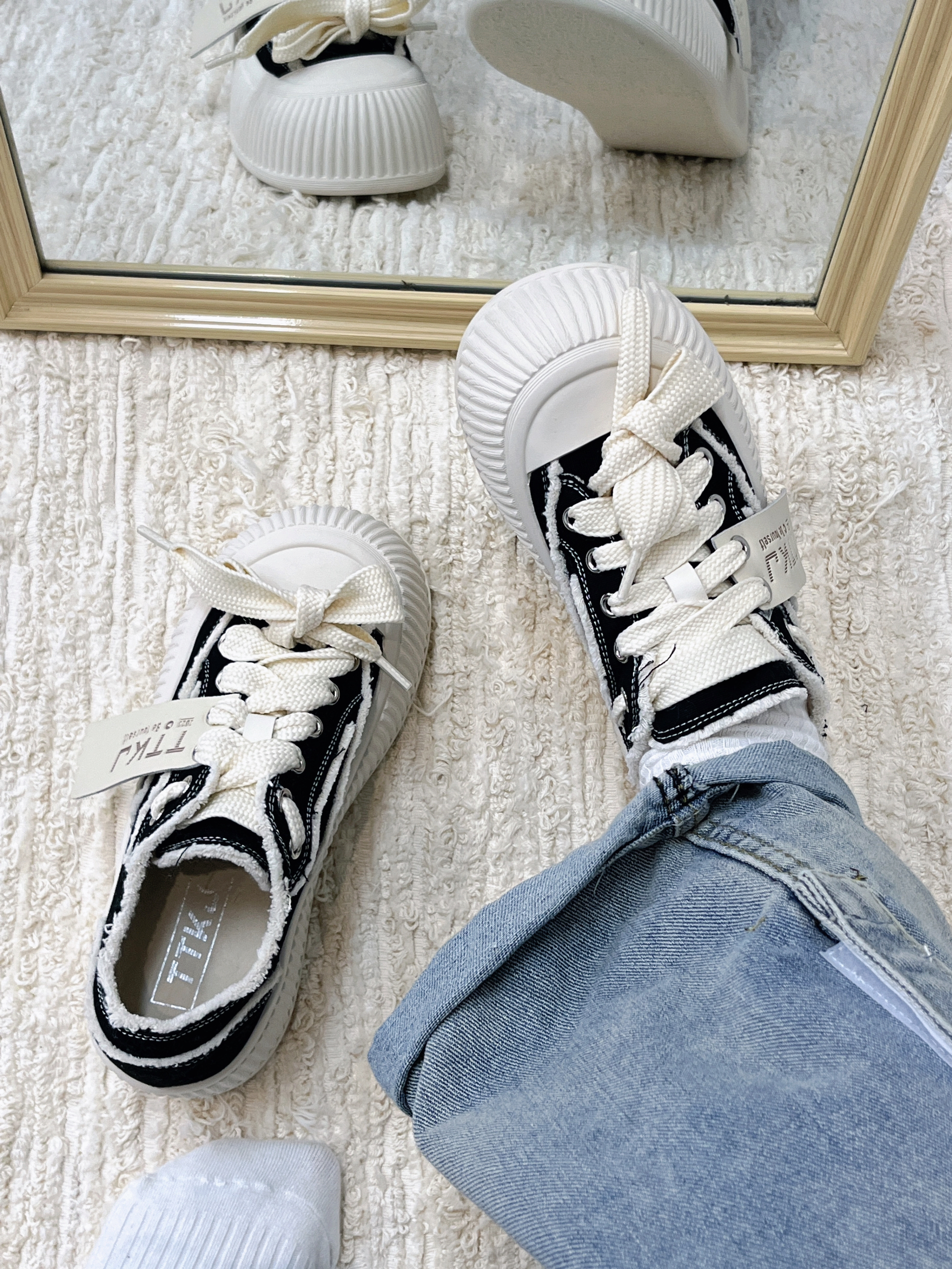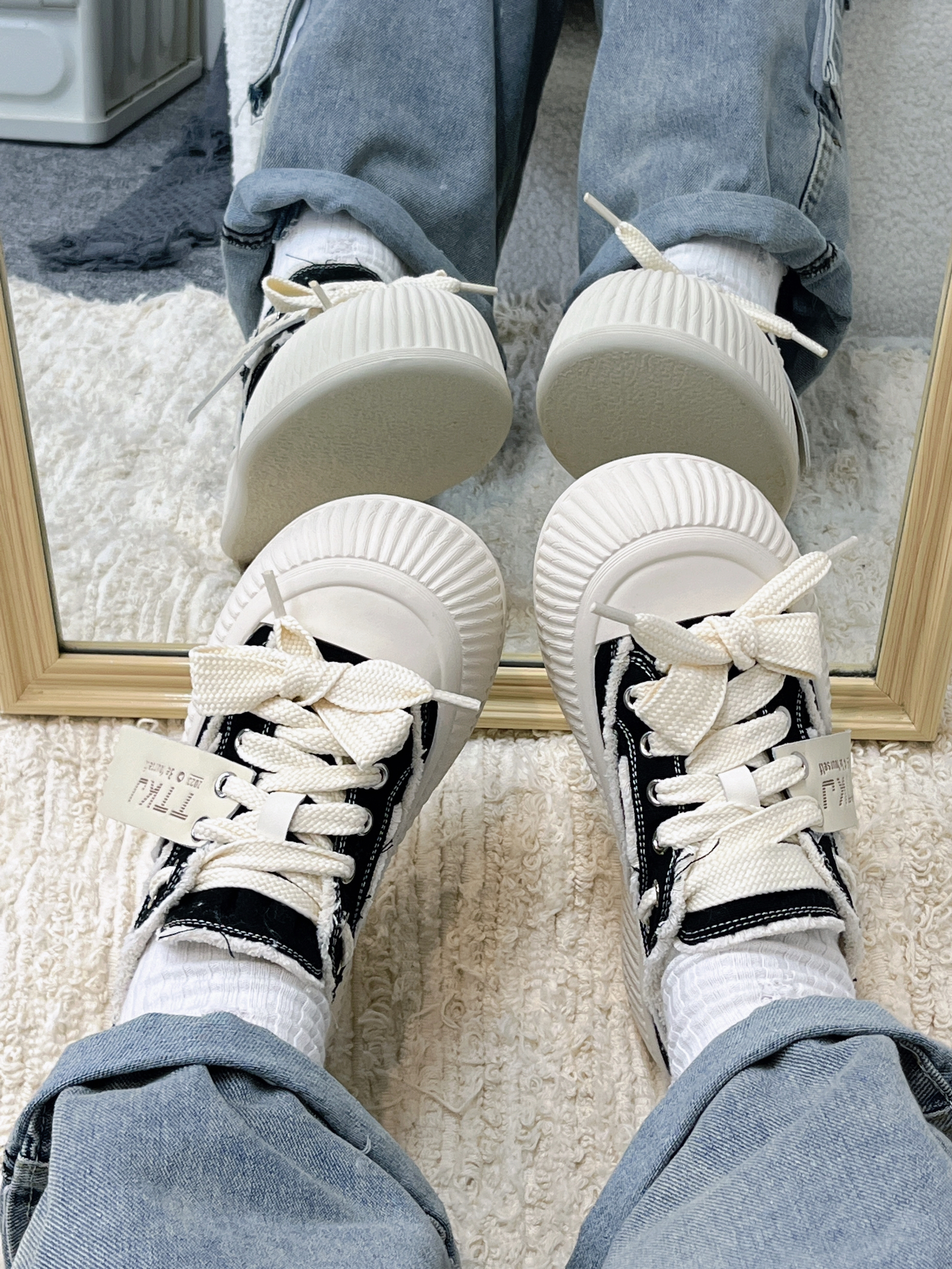 越穿越喜欢的黑色帆布鞋👟 很有设计感,而且还是大头设计的 穿着很软萌!还显脚小 鞋垫很软~走路很舒服 踩💩感在线 平时上课和 课间跑操都能穿 很百搭