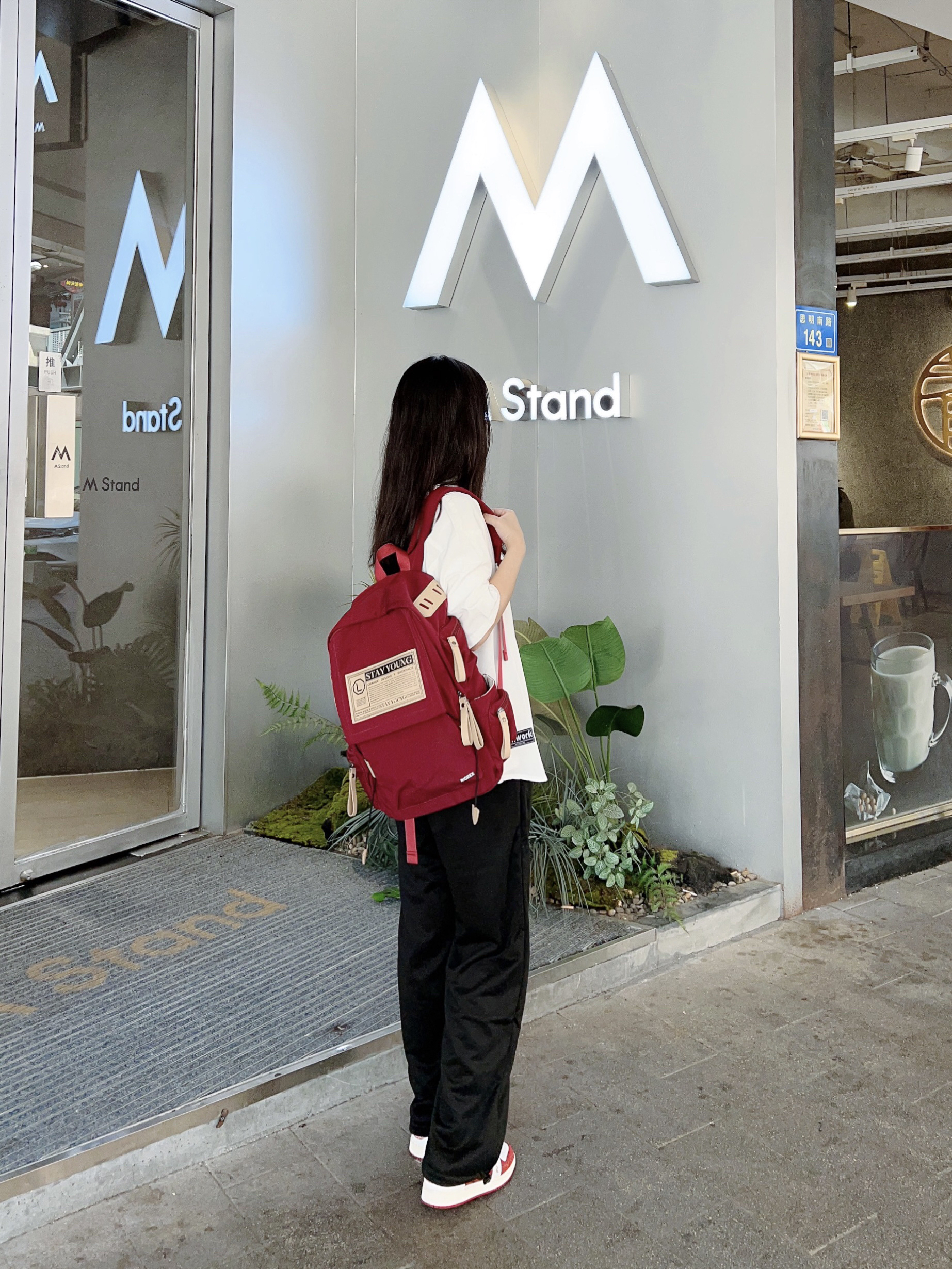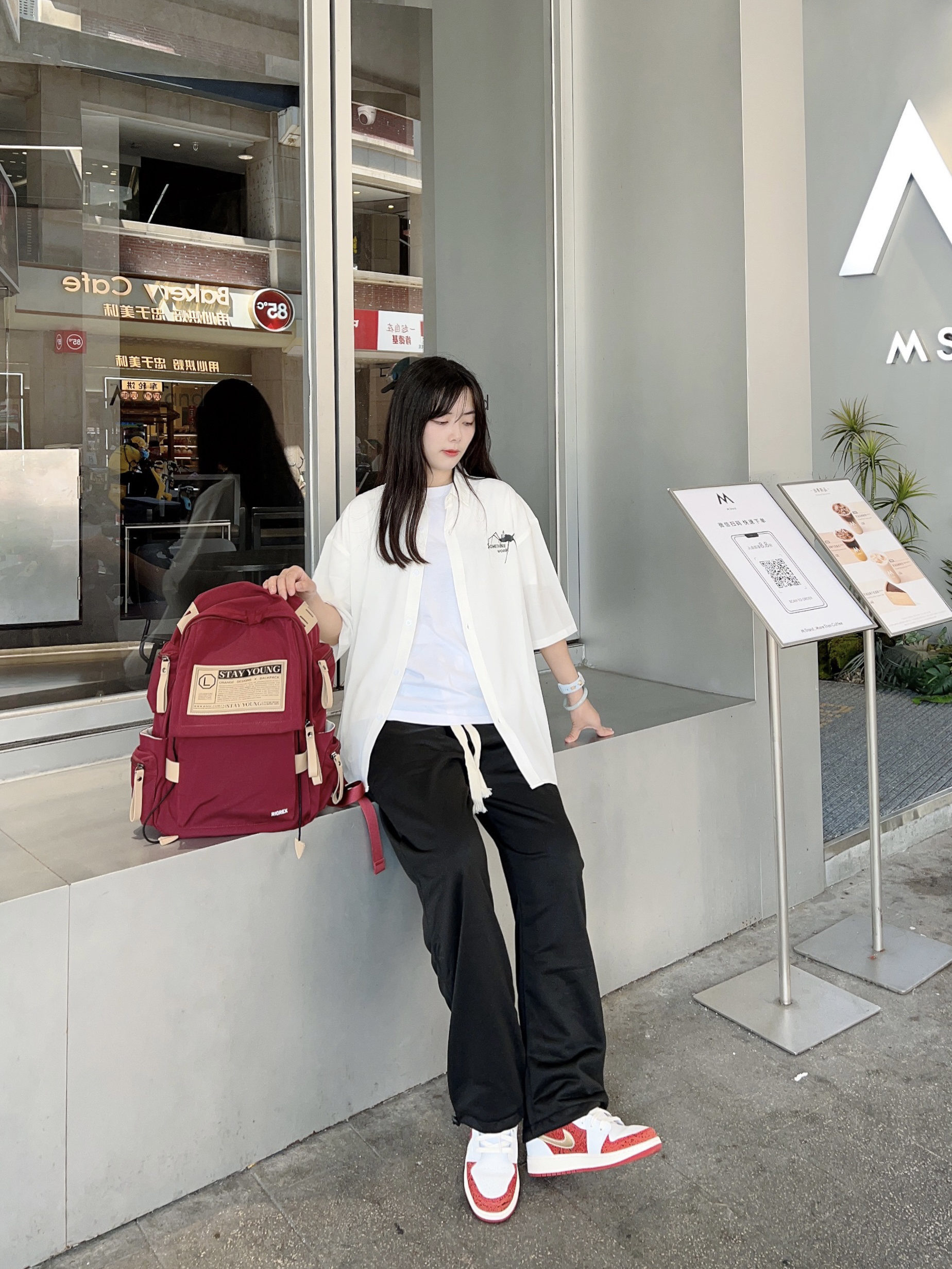 哈喽,又到了小半的穿搭分享时间啦~ 今天是一身休闲的穿搭分享,没有色彩搭配灵感的时间黑白色系真的不会出错! 选择了白衬衫➕黑裤子,版型很棒,穿起来舒适又显瘦!不管是男生还是女生都可以轻松驾驭 出门的时候习惯要背包包,今天背的是RIOREX帆布美式校园双肩包🎒,选择了亮眼的红色来提升整体的穿搭,包包是大容量设计,分层很多,很适合上学或者外出背~太喜欢啦!!