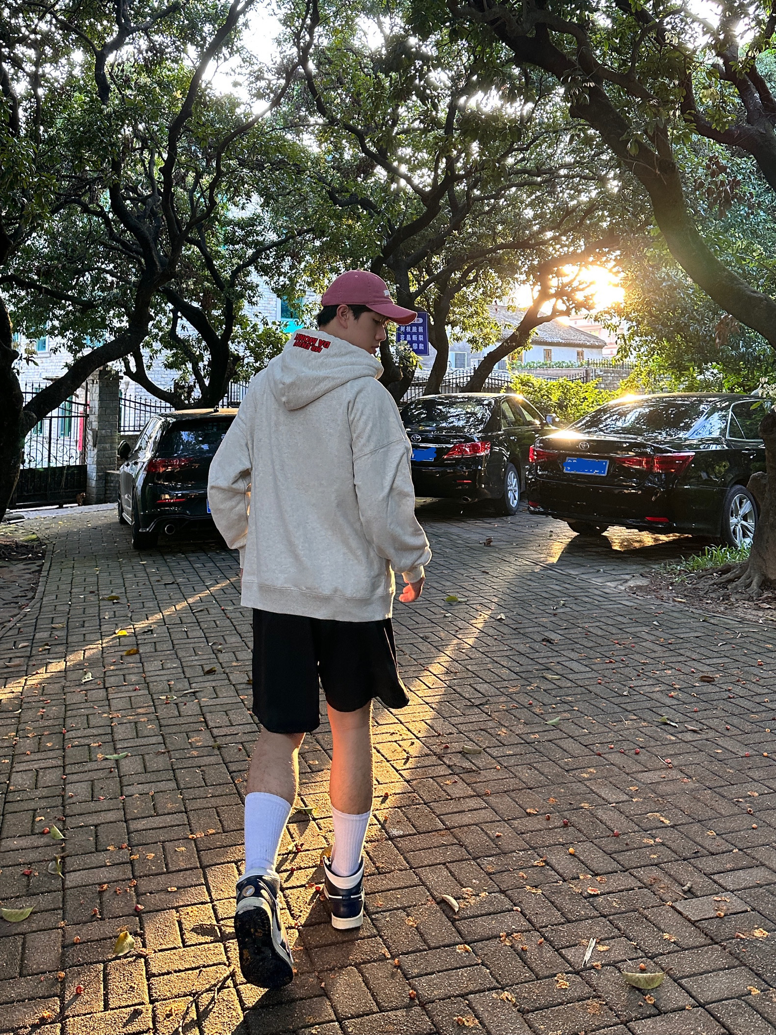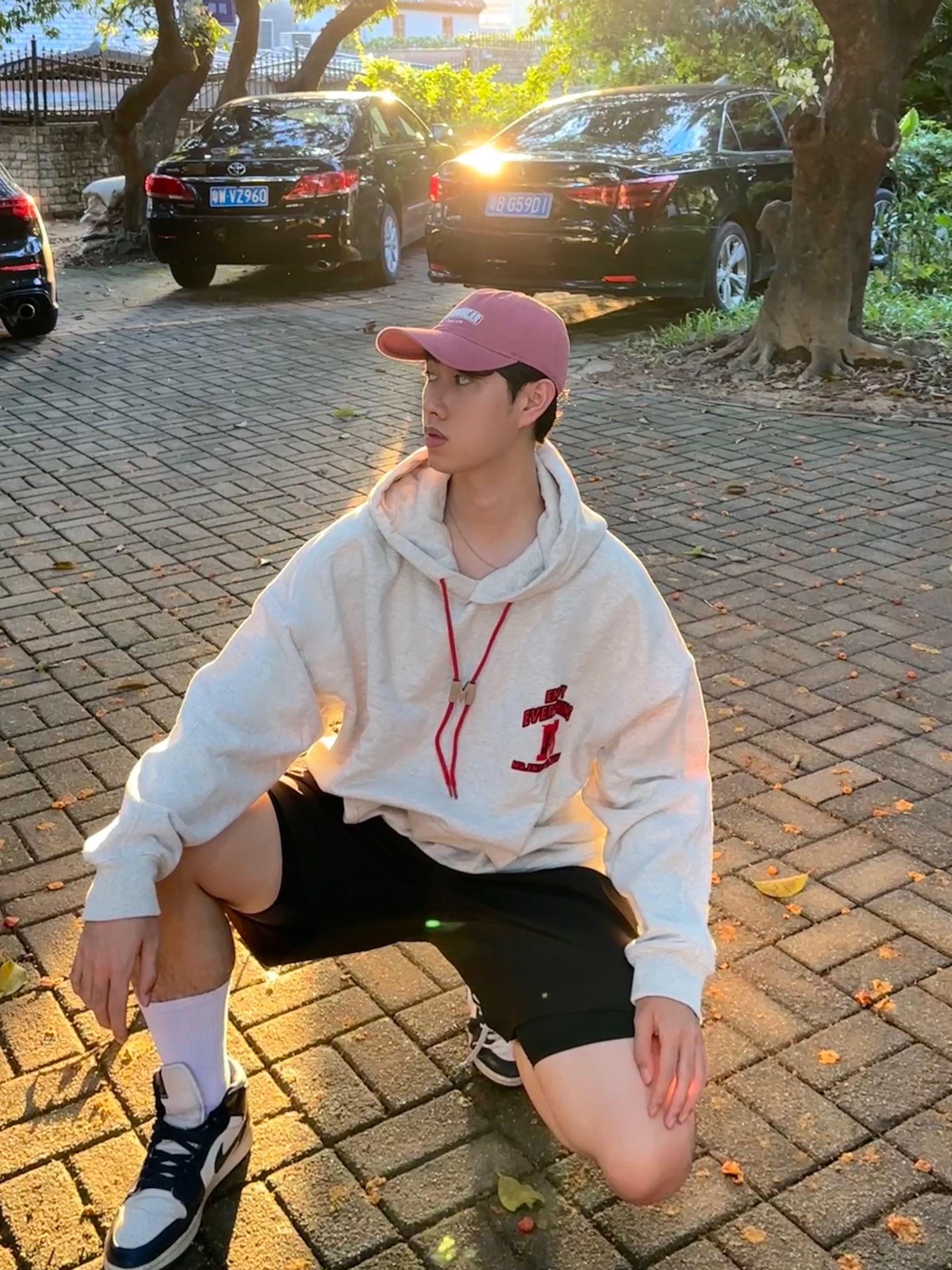 身高|体重:186cm 79kg 🧍♂️ 穿搭风格:美式穿搭get上喽!朋友们都来分享你的美式穿搭吧!街头感十足~而且这个色系还蛮干净看起来! 👔 上衣:MEDM潮牌M扣拉绳字母印花美式连帽卫衣 👖 下装:特步的运动短裤 👟 鞋子:经典aj1黑曜石➕乔丹白色长袜yyds 🎒配饰:觉得这一套比较适合夸张的项链,当然也可以像我一样不戴,也会显得干净很多 (和夕阳合照被蚊子叮鼠了!)