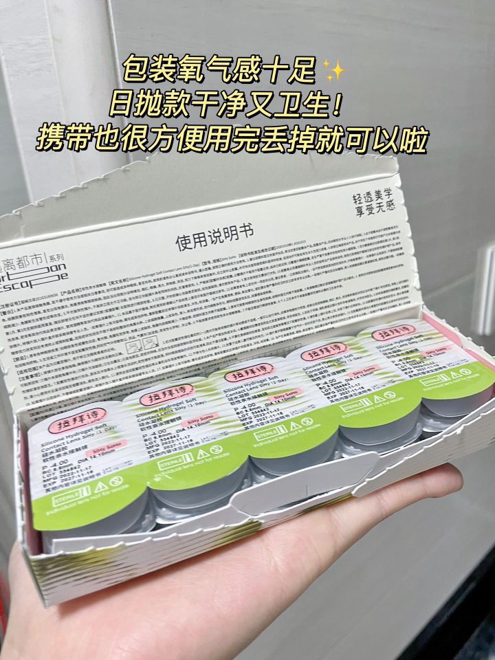我敢说它是外出必备单品哇! 干敏眼可以放心冲的一款日抛 是拉拜诗逃离都市款的 他们家无论是隐形还是美瞳 都是很火的🔥 深得人心不是没有理由的! - 上眼舒适度很好! 硅水凝胶材质!超6倍高透氧 镜片软硬适中 带上也很水润💦 就算长时间外出 久戴眼睛也不会干涩 而且还是日抛款的~ 干净又卫生 外出携带也方便 轻松实现日抛自由啦😃