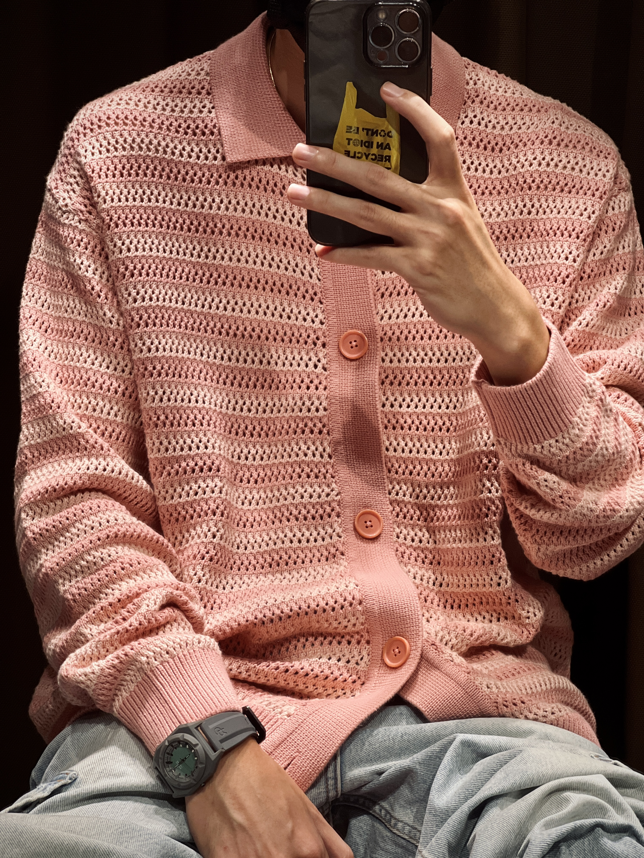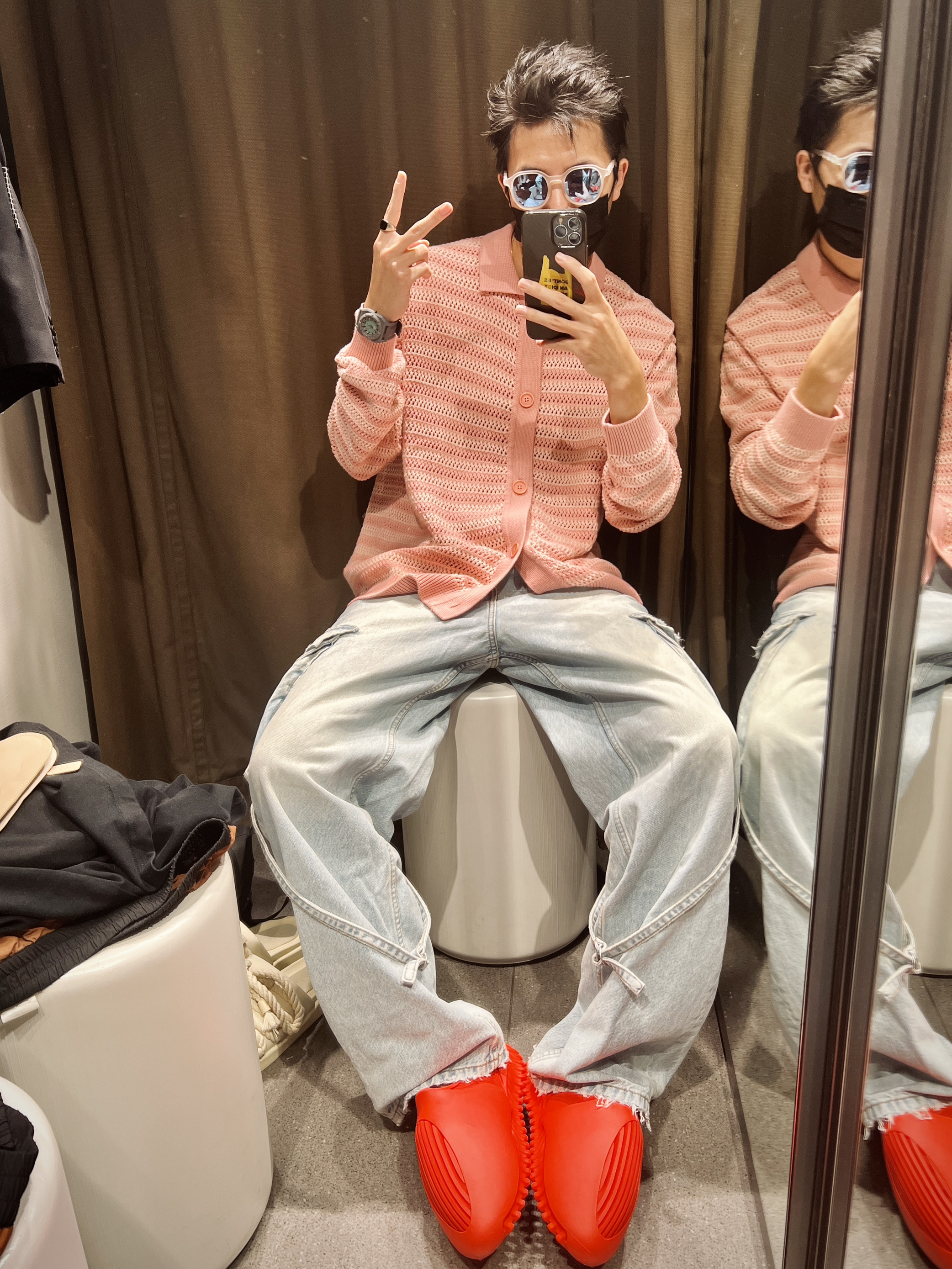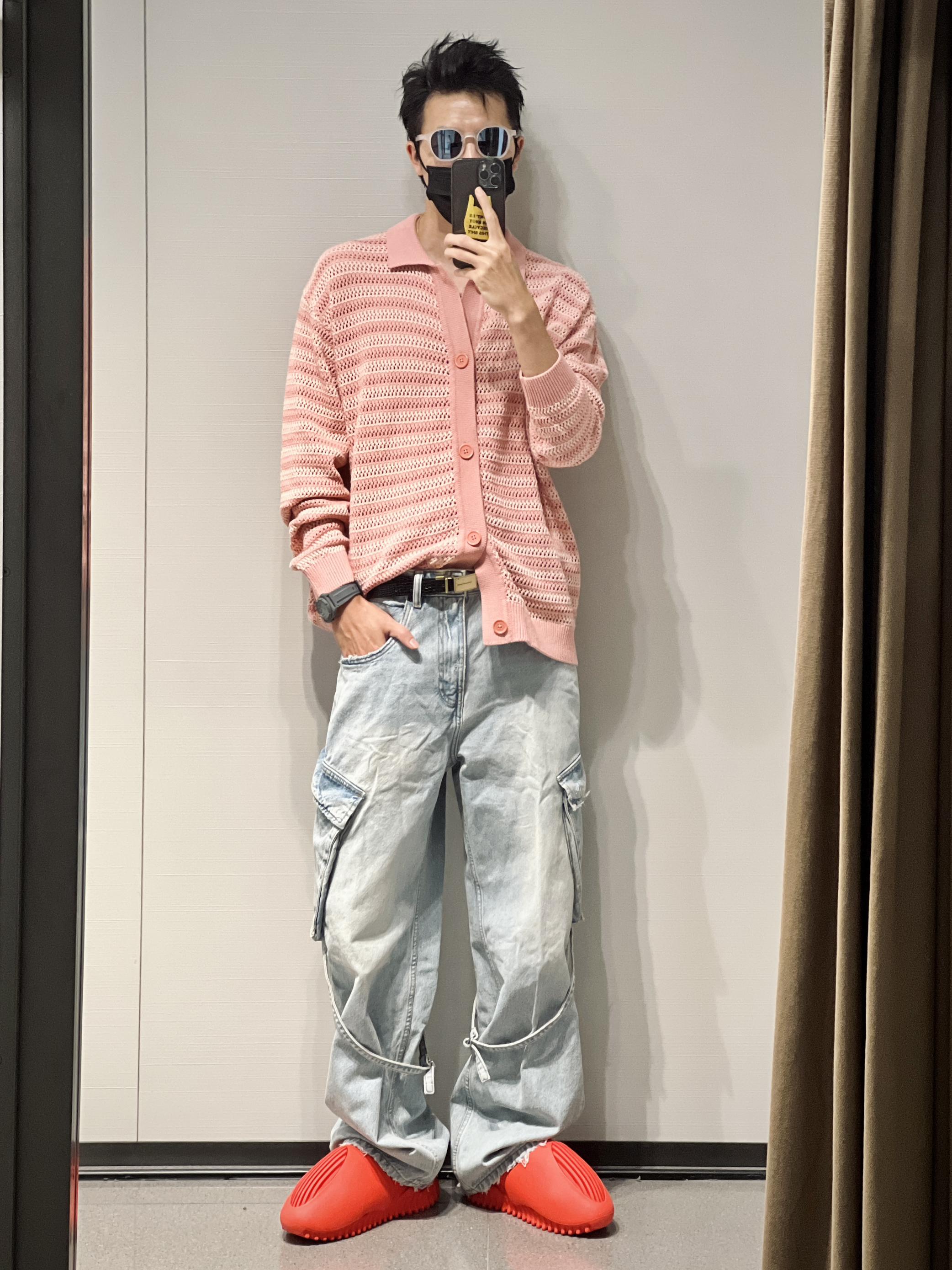 粉红色镂空钩针长袖开衫 条纹的粉色特别温和 拿捏住了早秋的氛围感 宽腿水洗牛仔裤 口袋,系绳酷似acne 版型修饰腿形也很百搭 脚感非常好的蛋蛋鞋 很多明星都有上脚 材质很柔软亲肤没有硌脚的感觉 红色很容易get多巴胺风格 让你在搭配中有很多乐趣 👦🏻:180/65 👕:2621/303 L 👖:1538/316 40 👟:GENEGG