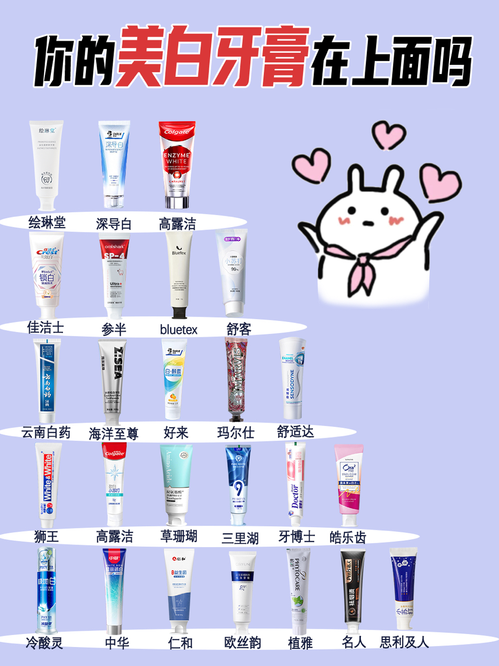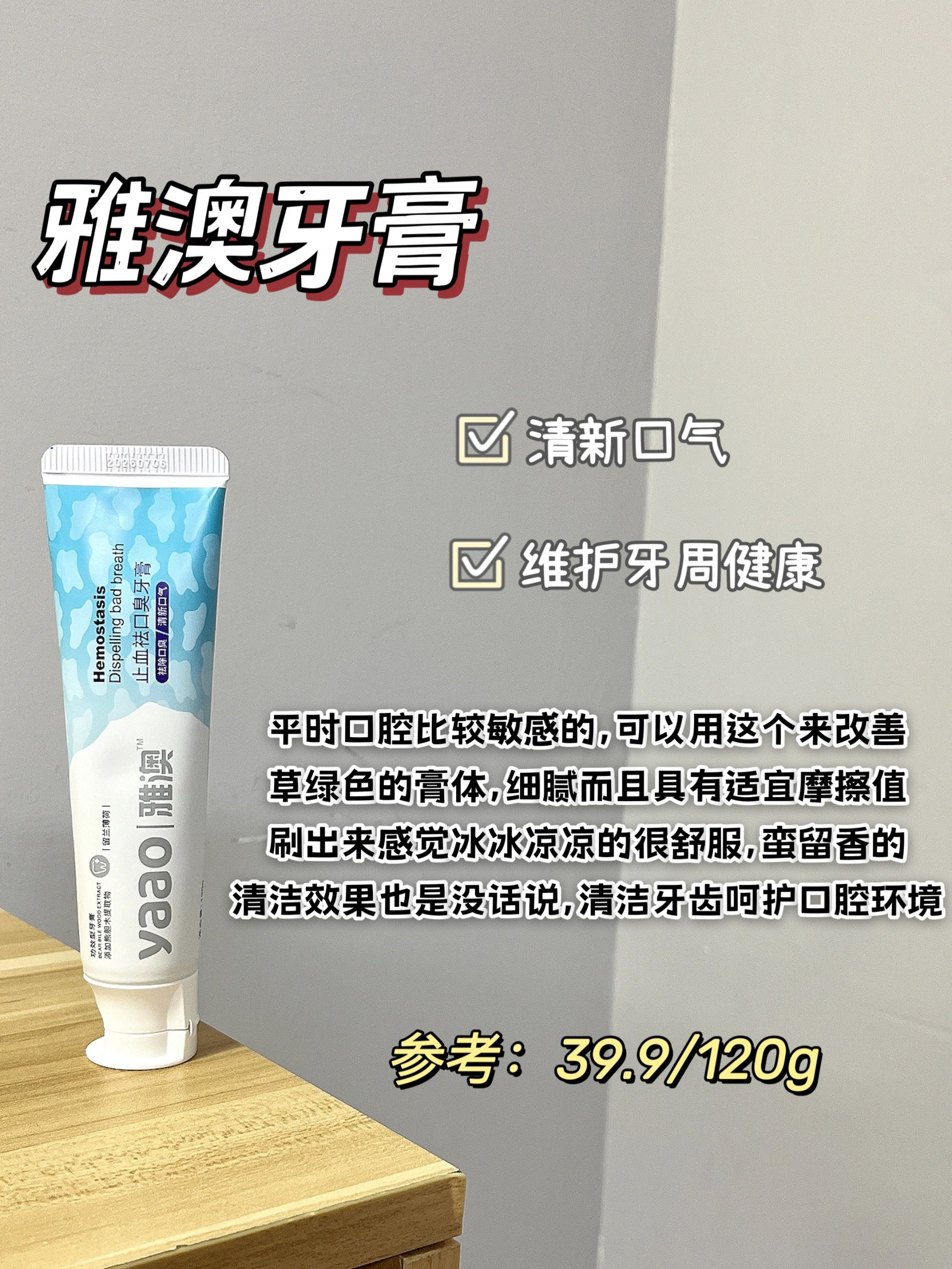 真香现场!性价比高的牙膏请码住! 市面上的牙膏各种各样的都有,纠结不知道哪个适合自己的快来抄作业,功课都整理好了 - 雅澳牙膏 主打的就是舒缓维护牙龈健康,清新口腔,留香也嘎嘎棒 - 玛尔仕牙膏 铝管的包装比较高级,香甜的茉莉味,改善牙渍发黄 - 参半牙膏 适合经常喝咖啡喝茶的牙渍黄的用,清洁牙渍提亮牙齿 - 云南白药 知名度比较高的一款,缓解口腔问题,持久留香