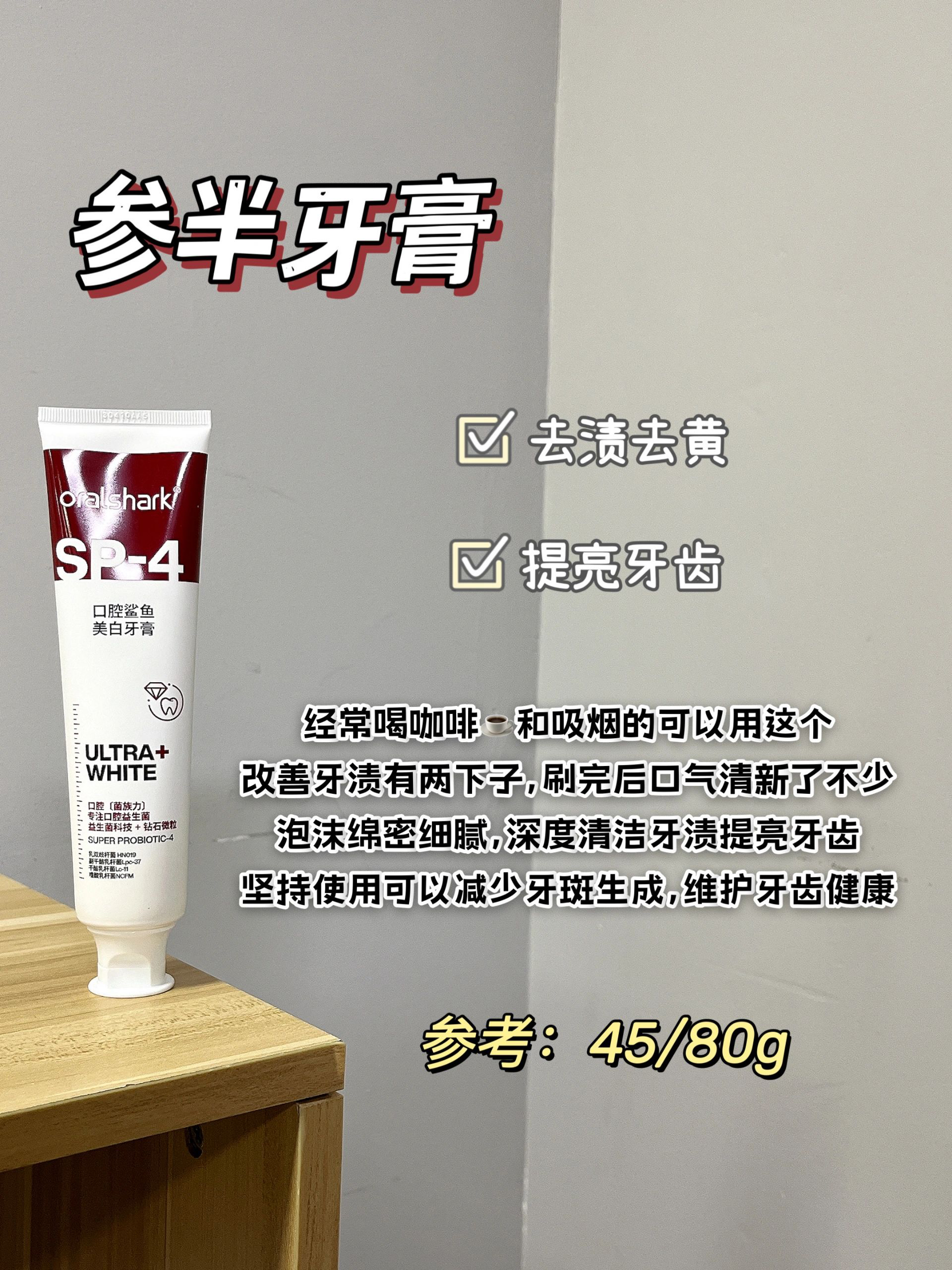 本篇笔记关联了【华晨宇同款】NYSCPS/参半 SP4口腔鲨鱼牙膏 美白清新口气改善口臭 美白等商品,为用户提供真实的使用体验和购买参考。