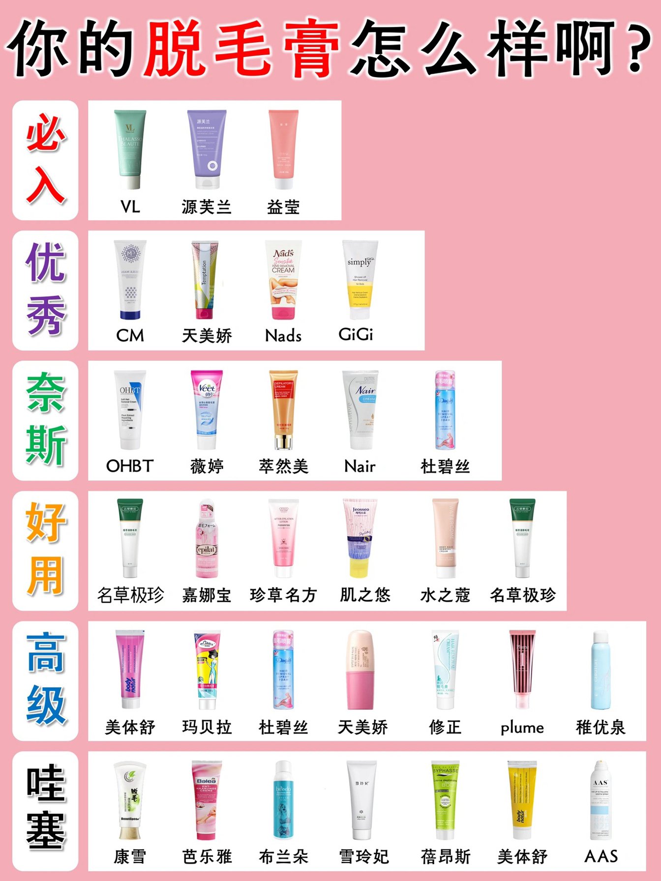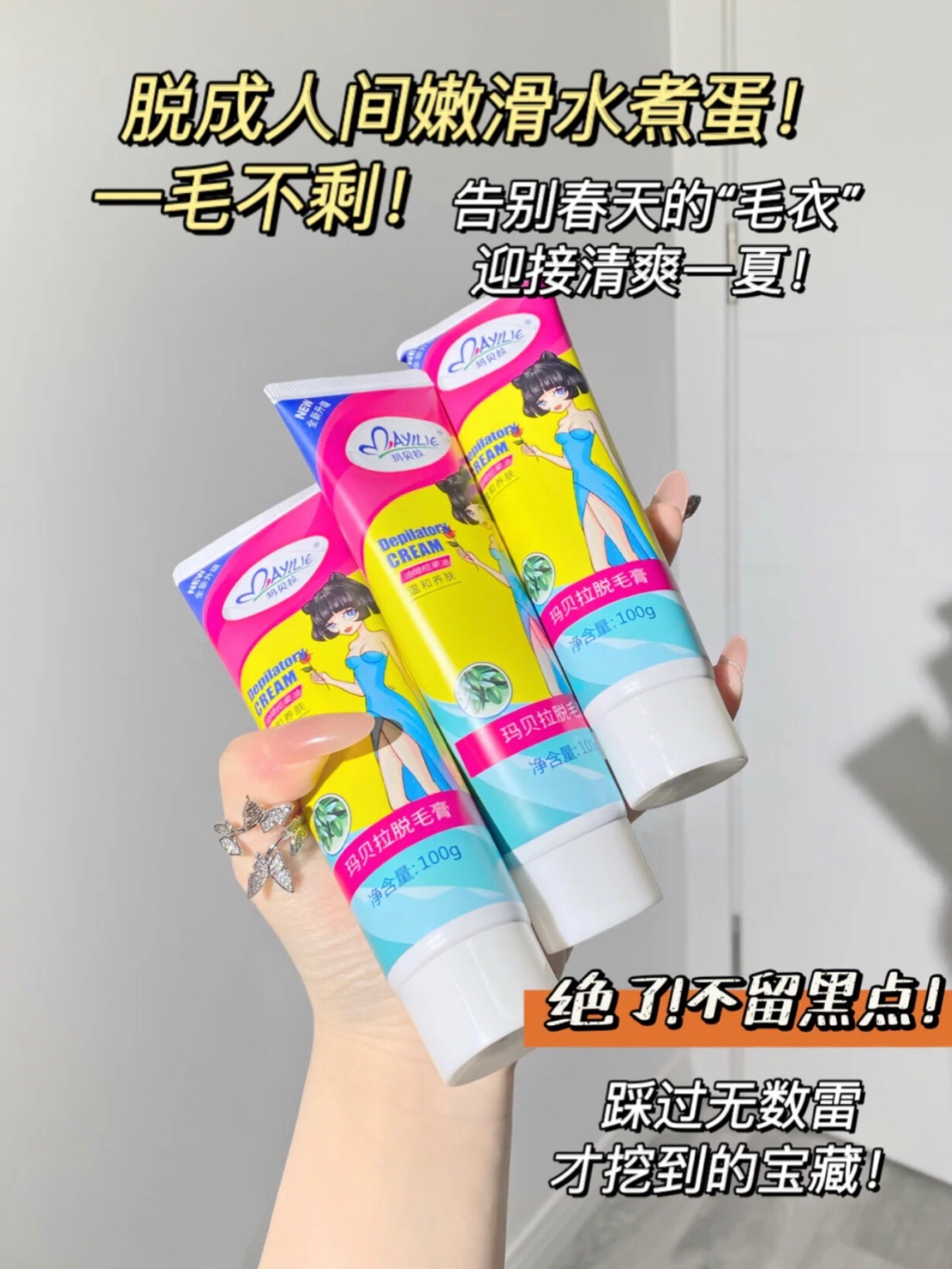 姐妹们脱毛还是要好好听劝!选择好适合自己的,这几个都是我上身试过的,姐妹们可以参考下使用感受 •Zozy脱毛膏 这个脱的敲干净呢,膏体温和上身不次几,脱胳子窝都不留黑茬茬,感觉脱完毛毛长的也慢了呢 •Cm脱毛膏 淡黄色乳液质地很温和,也没什么难闻的味道,脱四肢软毛毛还是挺干净的 •Nair 脱毛膏 这款是脱唇毛的哦,不会刺激唇周,新长出来的毛毛细软不硬 •薇婷脱毛膏 老网红了,脱毛还是比较有实力的...