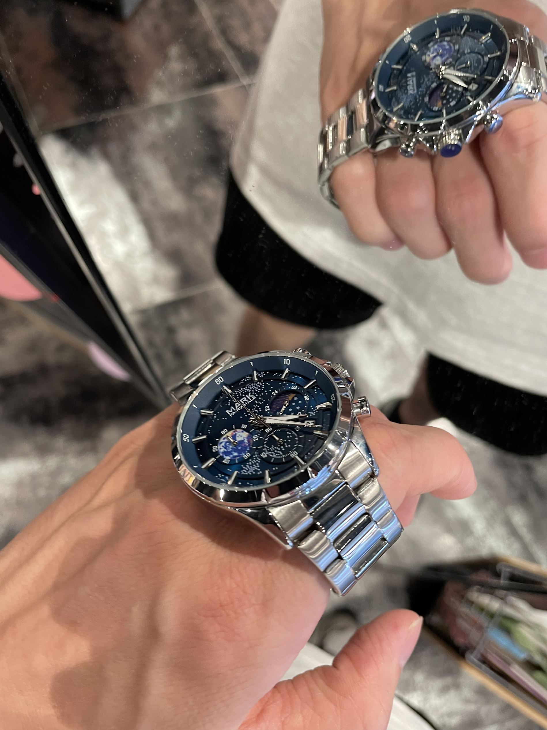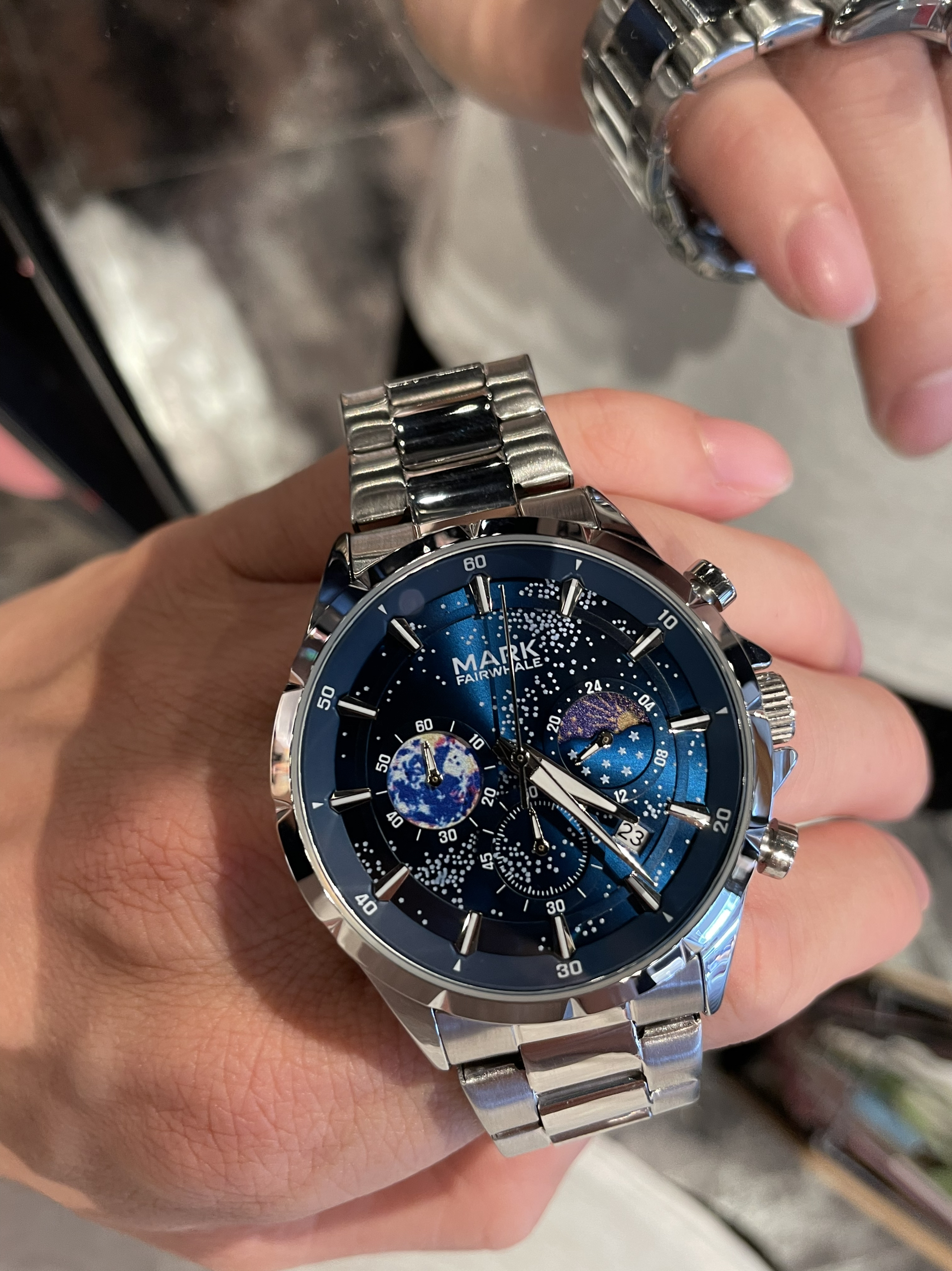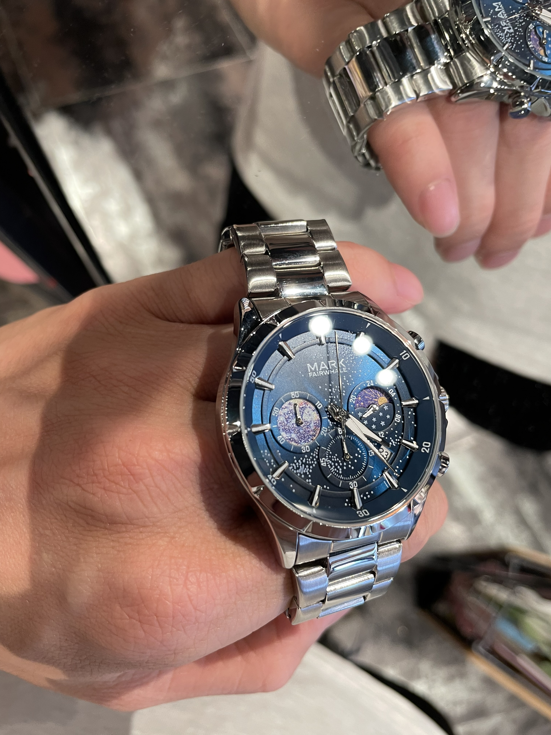 本篇笔记关联了Mark Fairwhale/马克华菲 真皮带日月星辰大海大表盘风格夜光防水高中石英男士手表 银壳蓝面皮带 等商品,为用户提供真实的使用体验和购买参考。