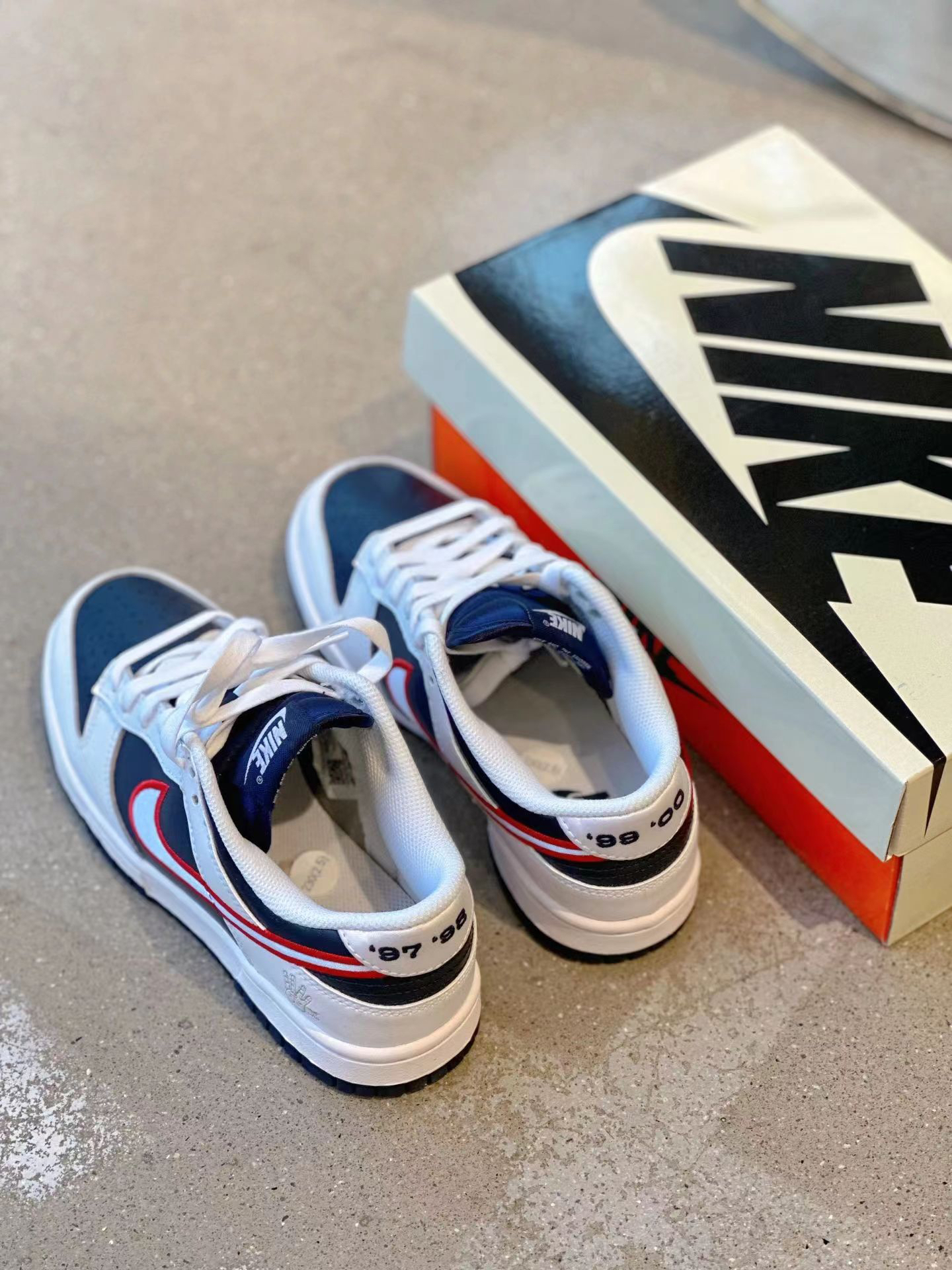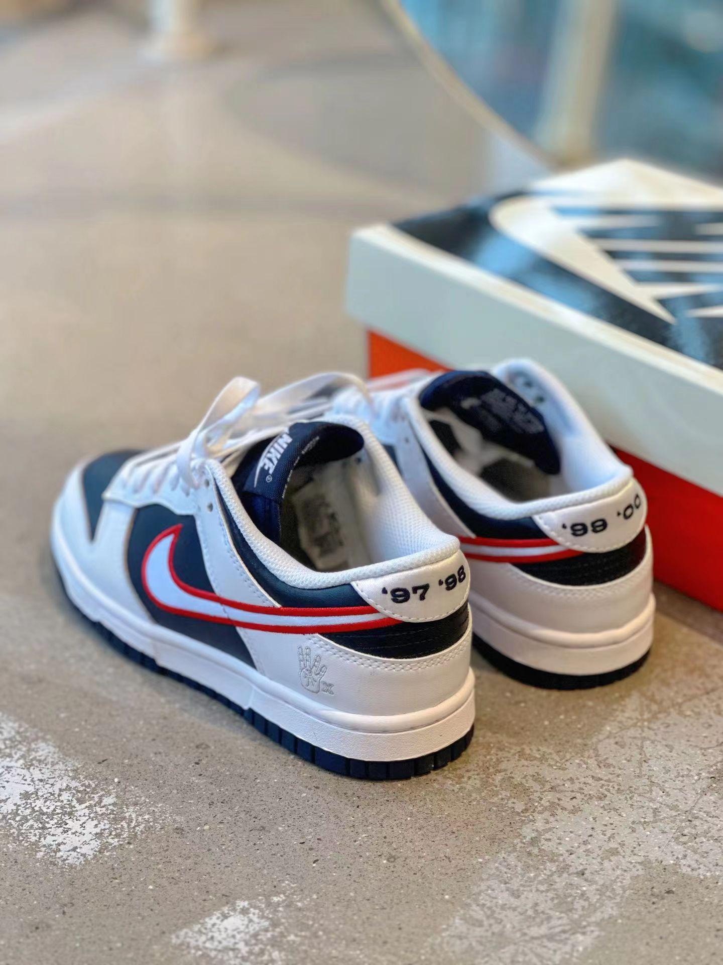👟球鞋名称:Nike Dunk 时尚百搭 休闲鞋 女款/白色/深蓝色 🔍设计亮点:1997年,休斯敦彗星队成为女子国家篮球协会(WNBA)最初的八支球队之一。 凭借辛西娅.库珀、谢丽尔.斯沃普斯和蒂娜.汤普森三巨头球员的出色技术,她们赢得了联盟前四个冠军。 为了纪念这一令人印象深刻的壮举,Nike将推出全新「特殊配色」DunkL.ow 配色方案采用白、蓝、红三色呈现,灵感源自于休斯顿彗星队的队服...