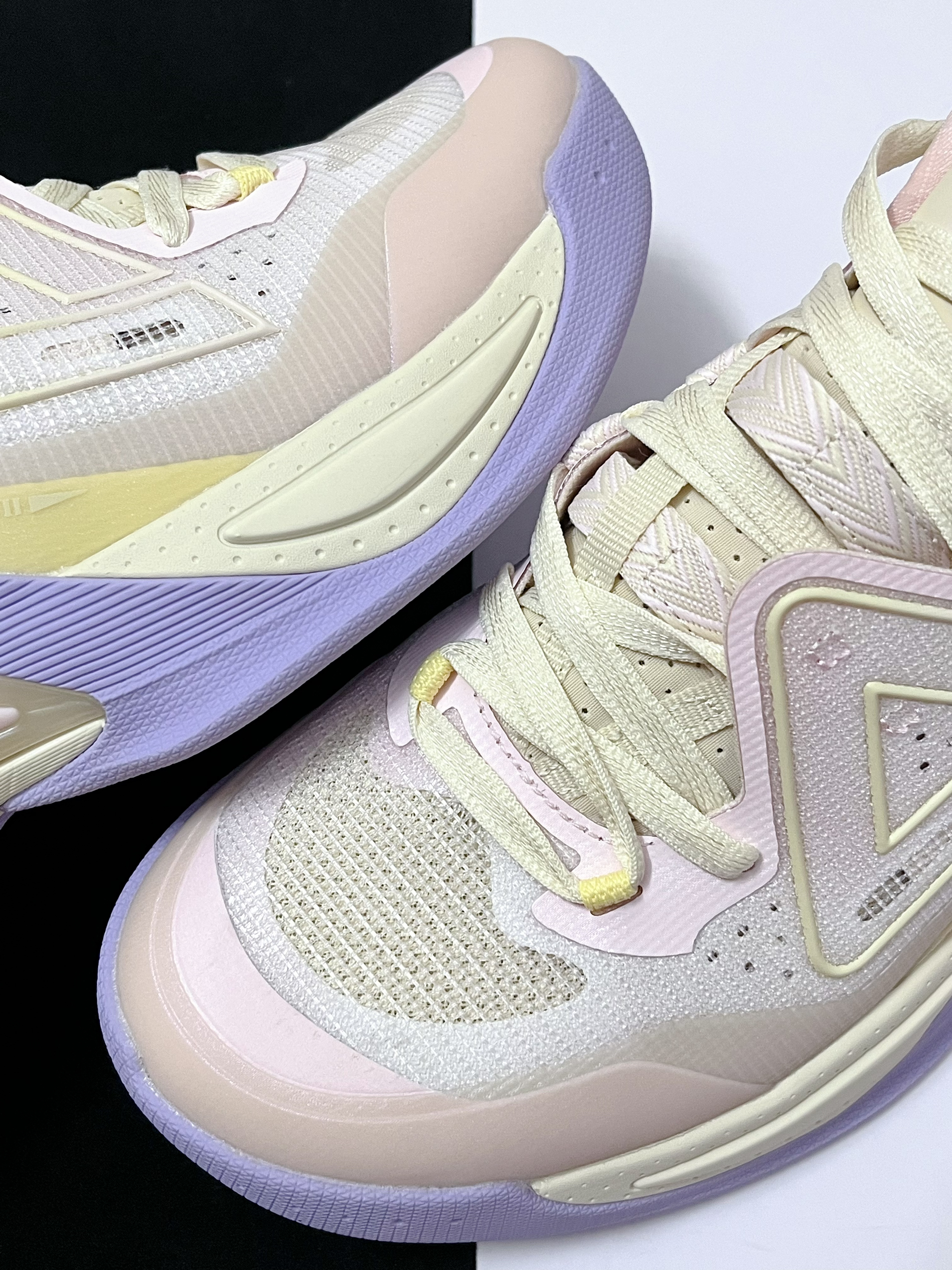 🔹对于这一双匹克幻驹2.0篮球鞋,其鞋面的细节设计蛮多的,柠檬粉的鞋面搭配浅紫色中底,给我的视觉效果很不错,上脚颜值挺高的。 🔹我个人挺喜欢它鞋面的这一个类似“独角兽”的三角锁定结构,辨识度很高,实战起来会有着很不错的包裹性能和稳定性能。 🔹鞋底方面使用到SWR耐磨橡胶材质,可以作为一款外场实战利器,抓地力和耐磨性很到位。中底有软弹的态极缓震科技加持,很适合大体重的锋线球员穿,有着不错的缓震保...