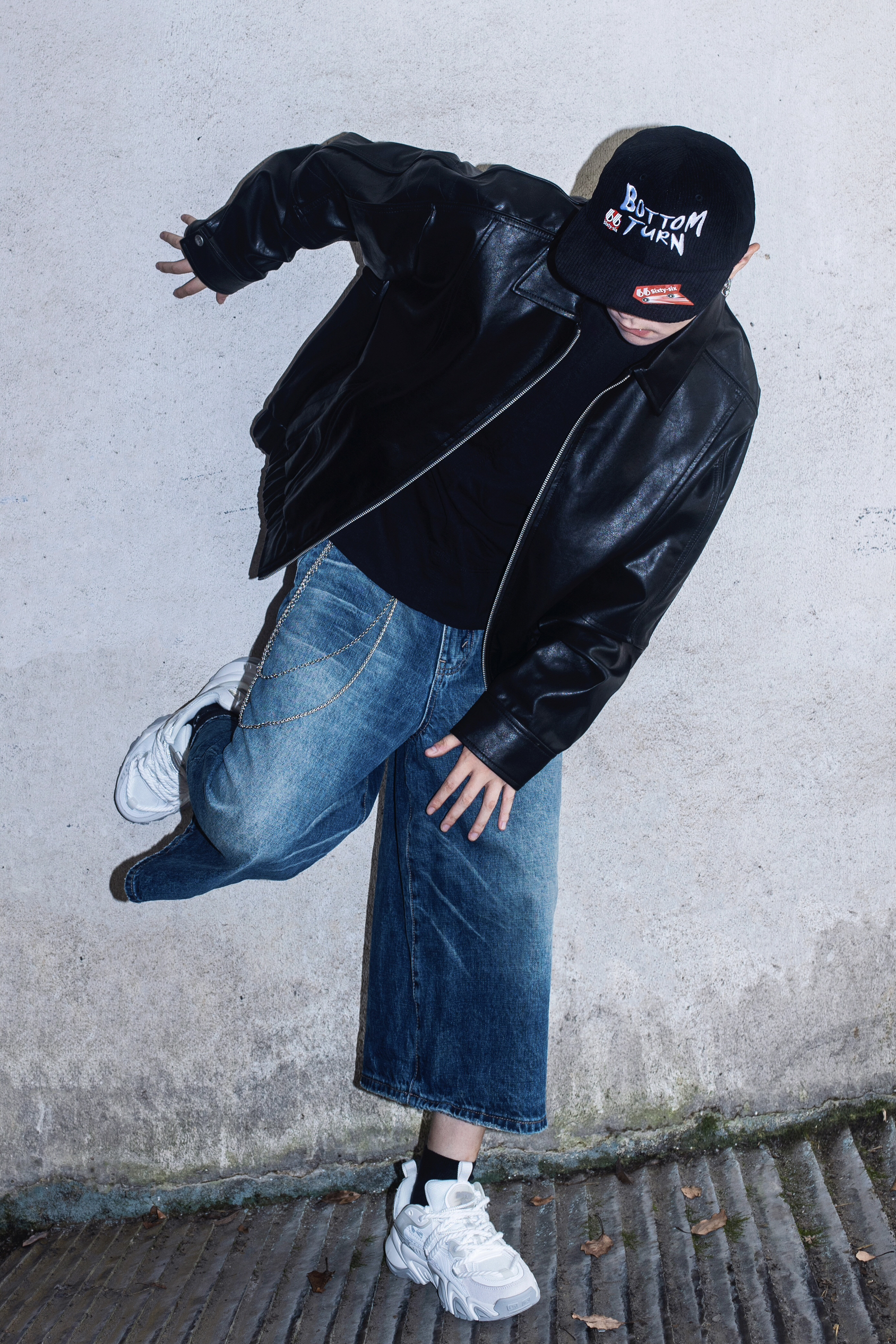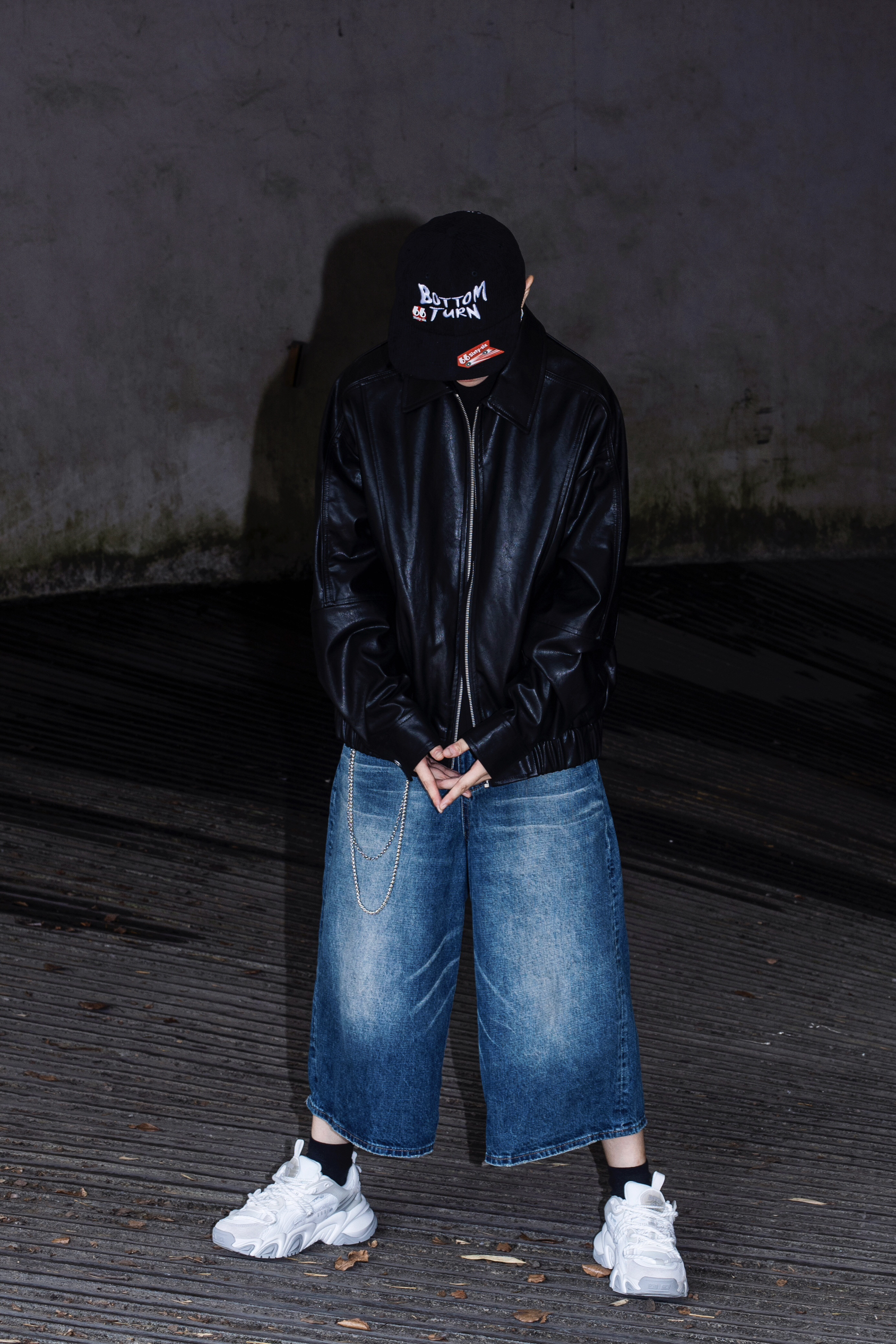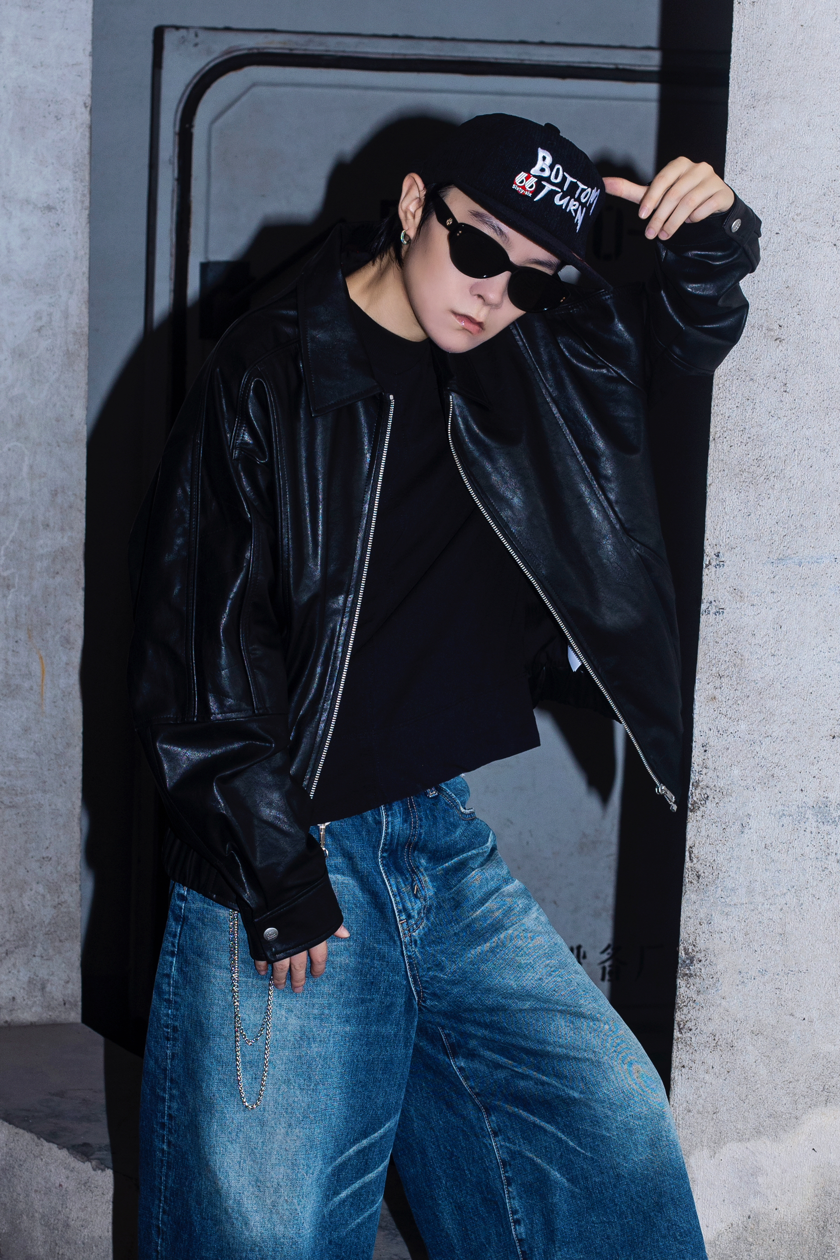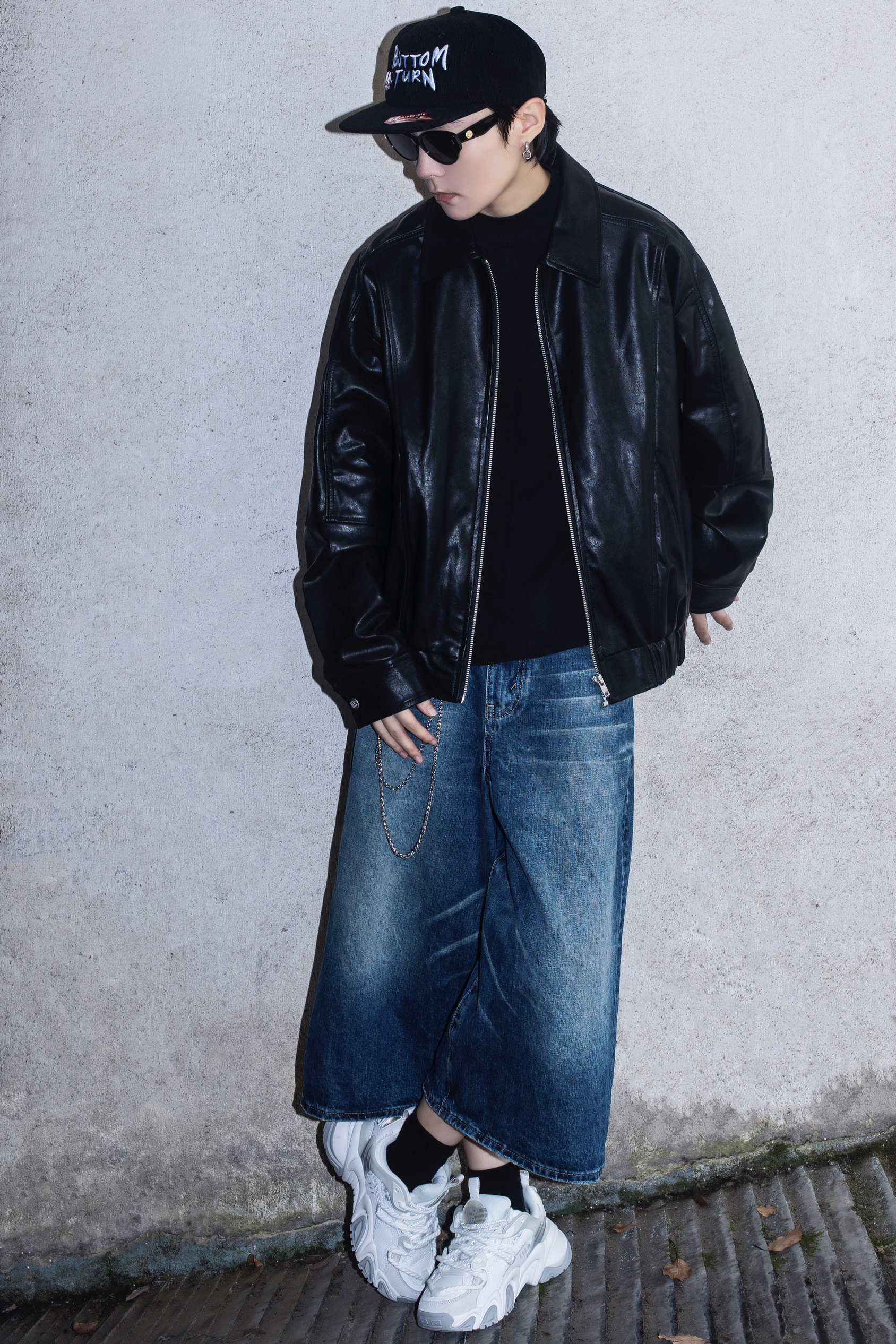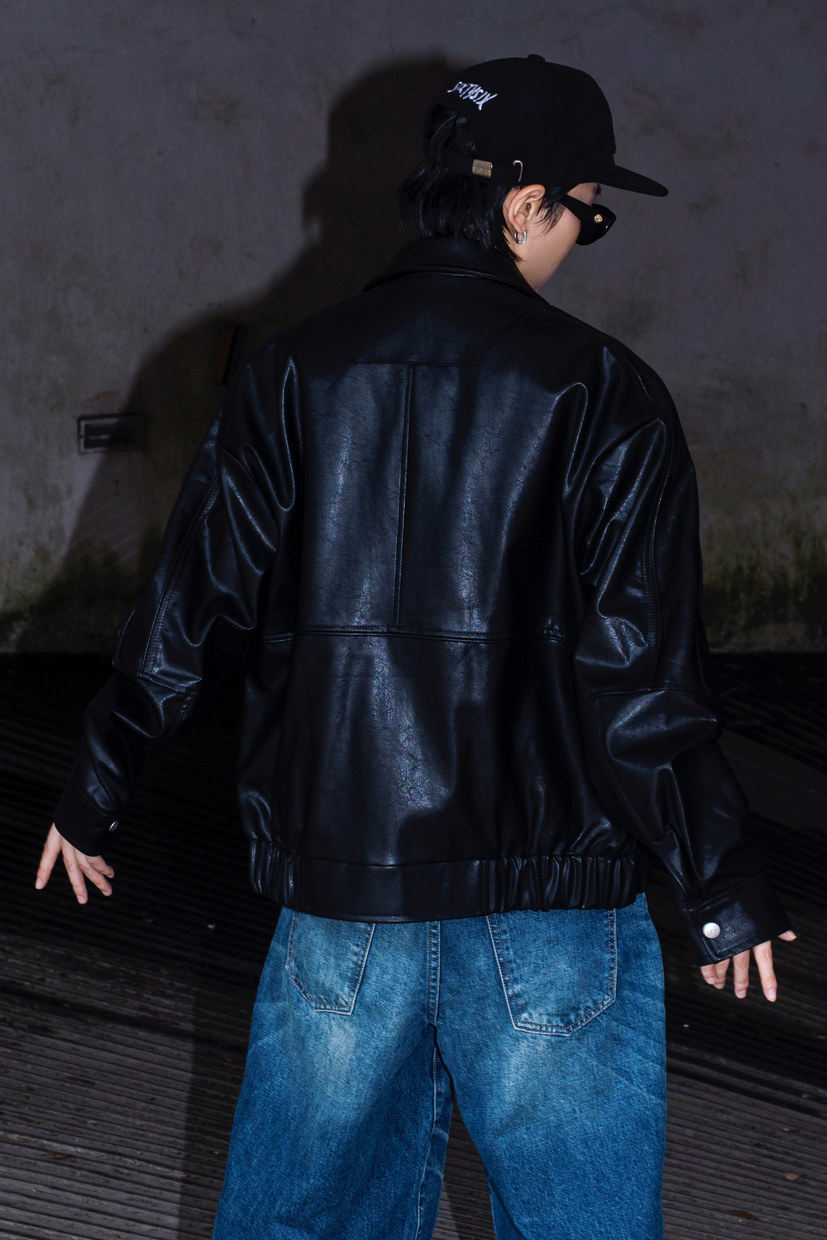 没有男生能拒绝的了黑夹克 今天分享一套超帅的皮衣穿搭 穿搭指南: 上身一件基础黑t打底 外搭一件宽松的黑色皮衣夹克 方领设计和带点肌理感的拼接很有质感 下身选择了一条七分水洗牛仔裤 简单的搭配就很cleanfit 帽子是我最常选择的穿搭配饰 今日搭配了一顶很美式的平檐帽 黑色灯芯绒面料 很适合秋冬 很出穿搭效果还能修饰头型 这一身真的好机车好帅呀