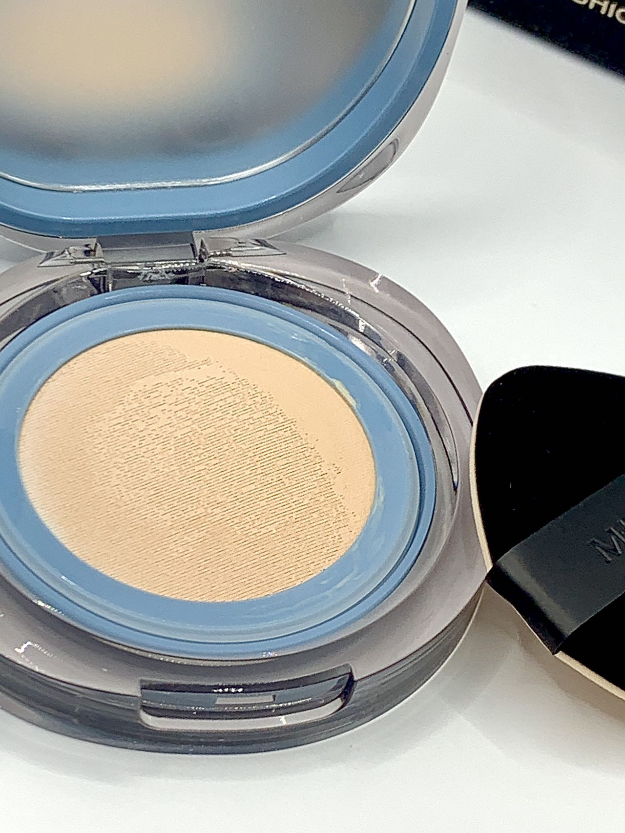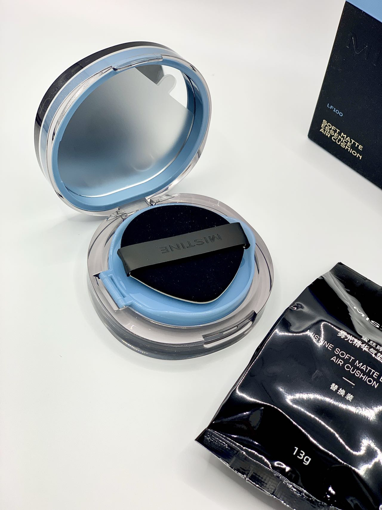 色号是LP100 透亮瓷白🌟 限定莫兰迪蓝外壳 适合油皮🉑️ 上脸是润润的奶油肌妆效 自带光泽感✨ 没啥粉感 多次叠加也不会厚重 吼自然👍 遮瑕力还算可以 痘印能遮个七七八八 我平时带妆一整天妆面还是保持的很完整 没有出现浮粉卡粉的情况 出乎意料的好用! 早八人轻松拥有伪素颜~🤩