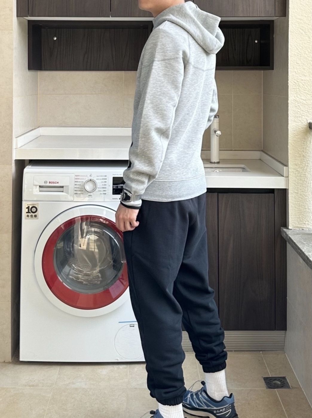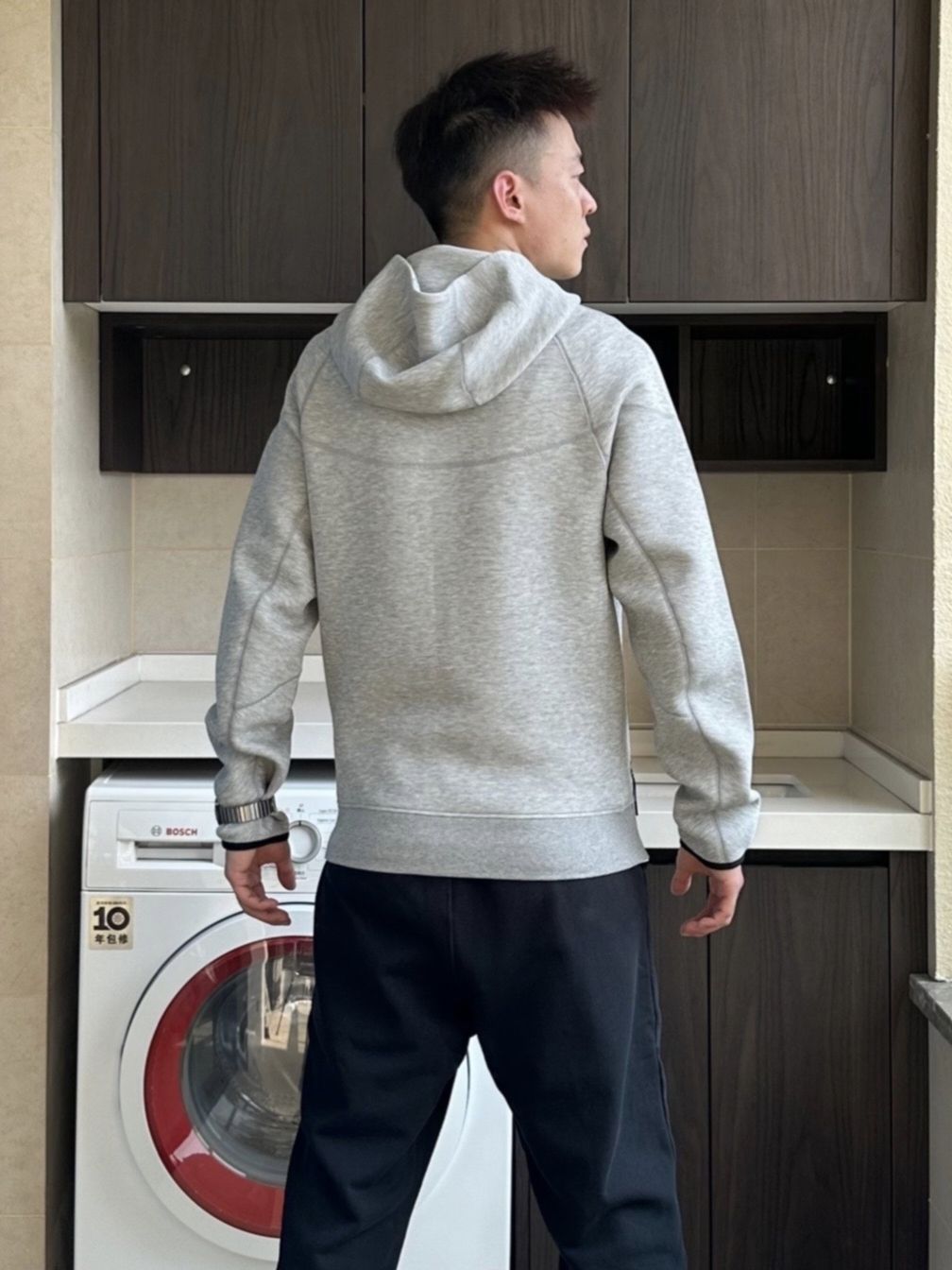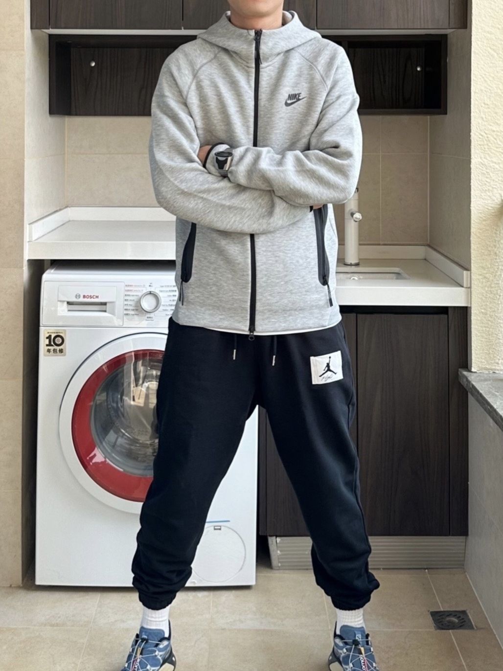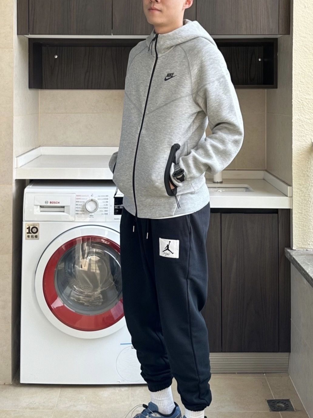 🌈上身一件Nike tech fleece 系列运动外套,强调的就是一个合身显精气神~ 175/125 图上穿的S(穿小一点会好看很多) 🌈搭配方面,它可以搭配运动裤,休闲裤,打造出独一无二的Nike运动风! 🌈这款运动夹克舒适时尚,无论是日常出街,还是户外运动,它都能让你成为最炫酷的那一个! (图片来自博主:本杰明0926)