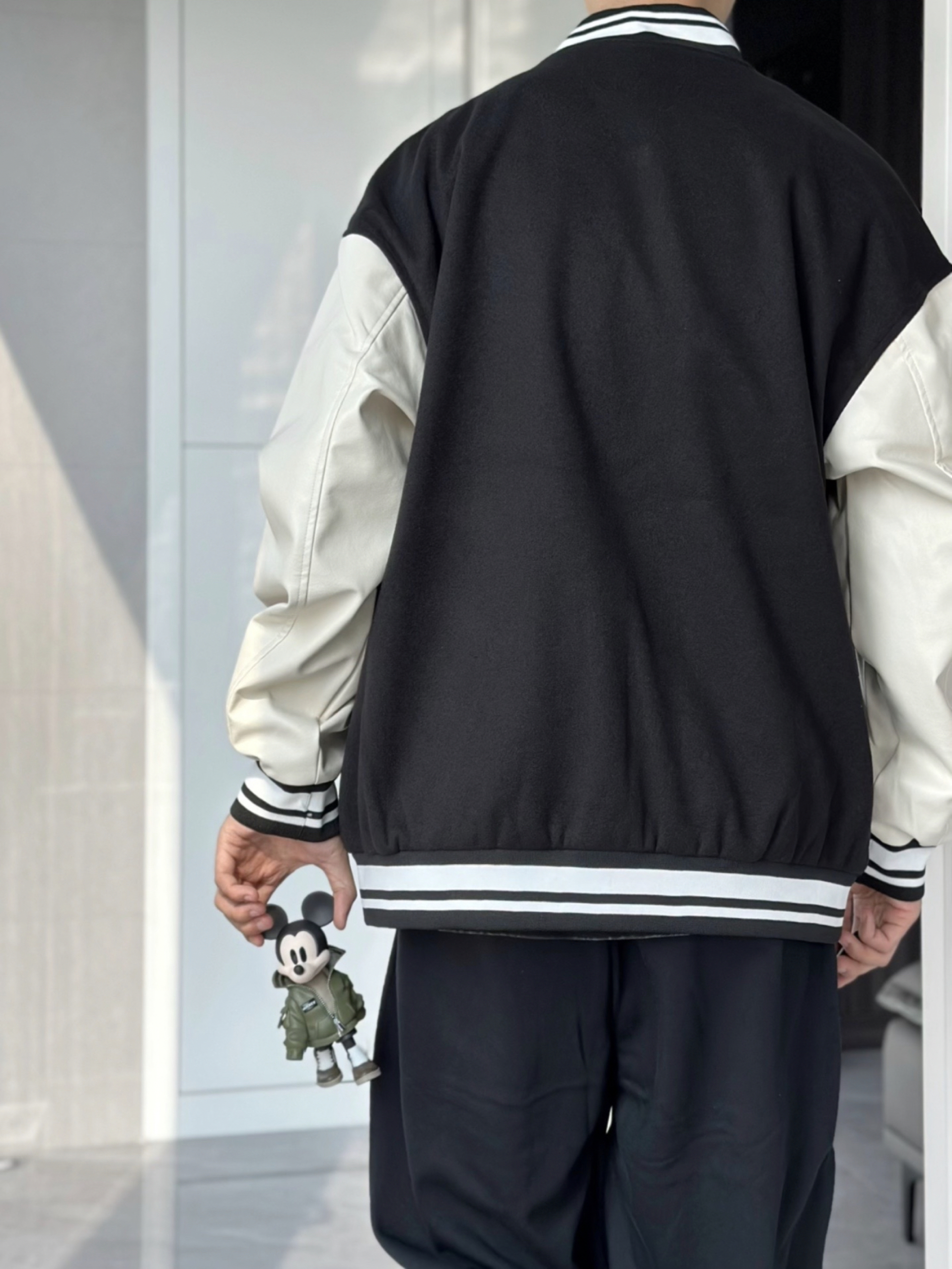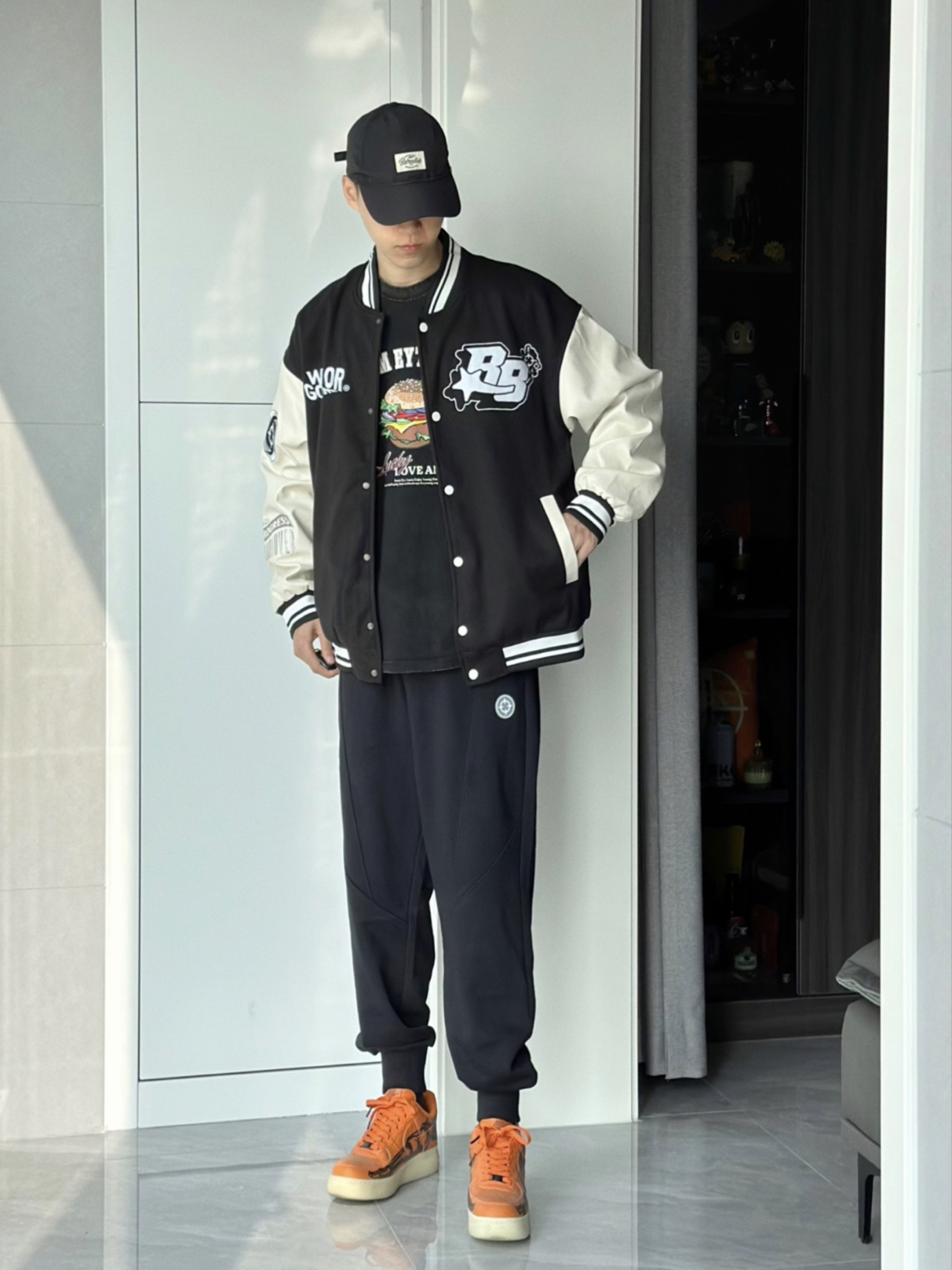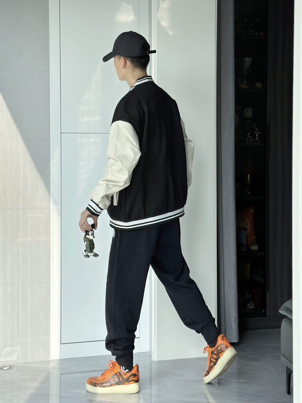 要说到秋天 当然想到的还是叠穿 属于棒球服外套的季节 终于来咯 今日份的黑白色系 橙色鞋子做点缀 安排上一件好看又合适的棒球服 ⚾ 也不是简单的事儿 选择黑白绝不出错 特有的短宽版型上身效果好看显腿长 随便搭配上一条黑色卫裤 直接出门 酷可可爱并不冲突 今天有米奇和我一起出镜 这么可可爱爱的迪士尼IP 没人不喜欢了吧 最近家里的新成员 摆着就像是一件艺术品 ✨