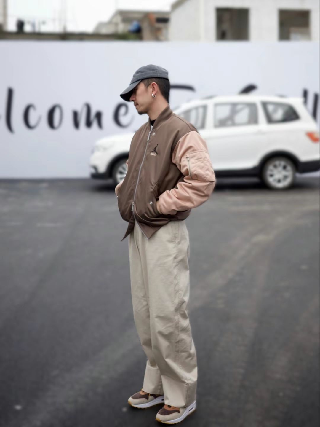 卡其色棒球服很适合春季的色系 双拉链设计,下摆口拉链打开很显比例👏👏 背后字母刺绣非常吸睛👀 内搭卫衣,帽衫T恤都很不错 🌟搭配:夹克+米白休闲裤+air max鞋 整体风格休闲男友风,棒球帽子加持下是有点高街风的,男大的感觉! 图源船长夫人肚肚侵删