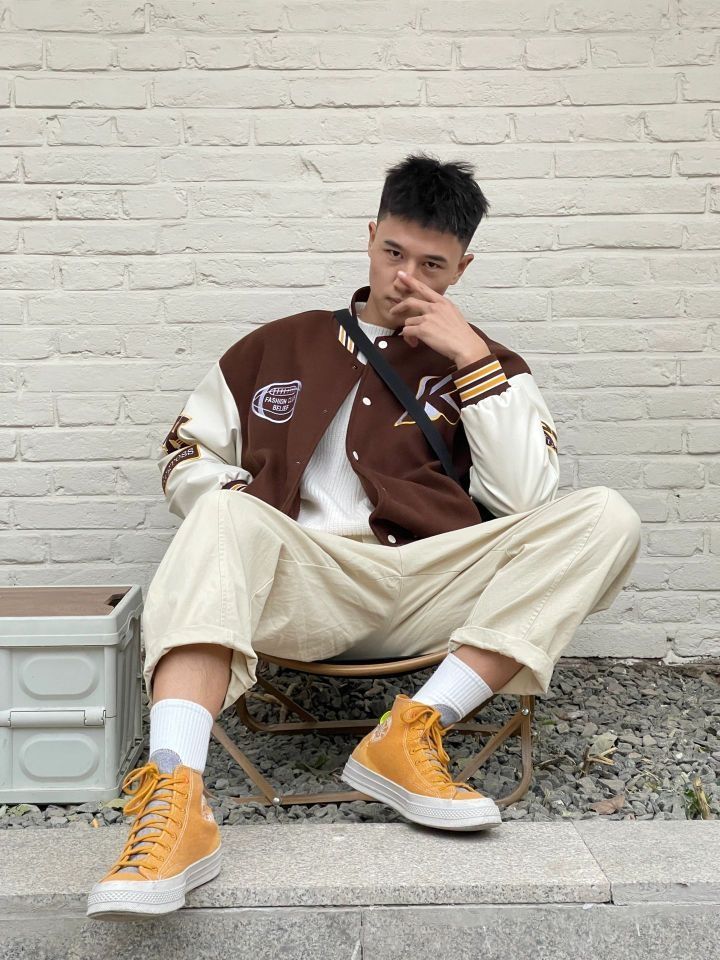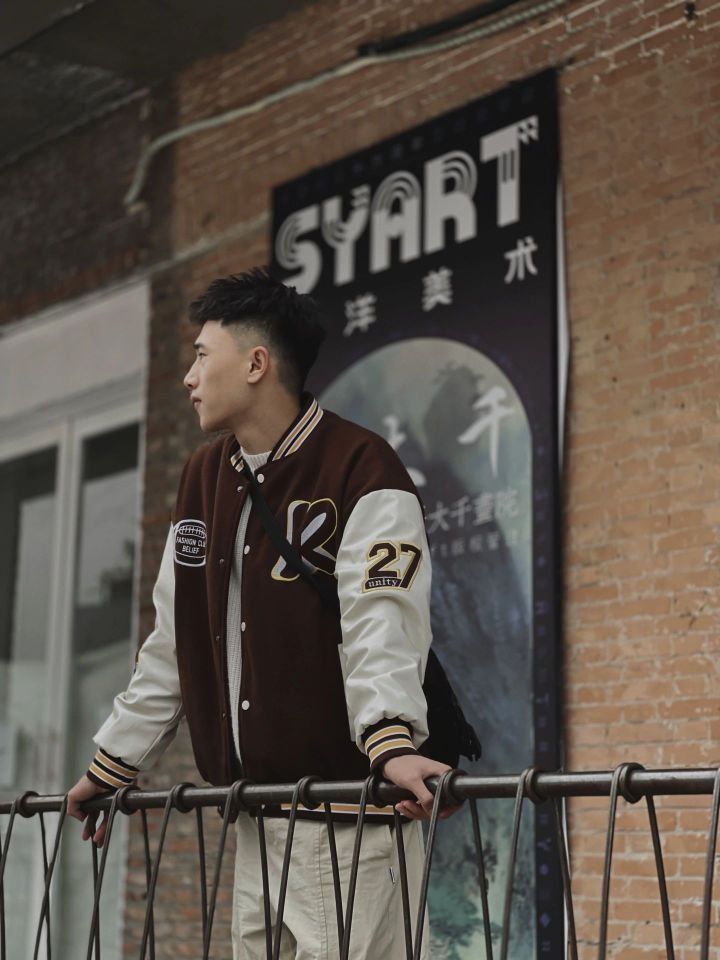 🌈秋季怎么能少了街头风的穿搭呢 正好最近天气已经渐渐凉了 衣柜里的新衣服当然要第一时间拿出来穿啦 🌈对我来说当不知道要穿什么的时候 棒球服+卫衣简直就是秋冬的搭配王者 特别是我很喜欢那种美式复古街头风!棒球服就是男生衣橱里的必备单品 🌈简单的白色卫衣打底 搭配一件白色的休闲裤 外穿这件棕色的CHARLES JANGS HAPPY HEART棒球服外套 整体高级简约~街头感十足! 🌈廓形的版型摸起来...