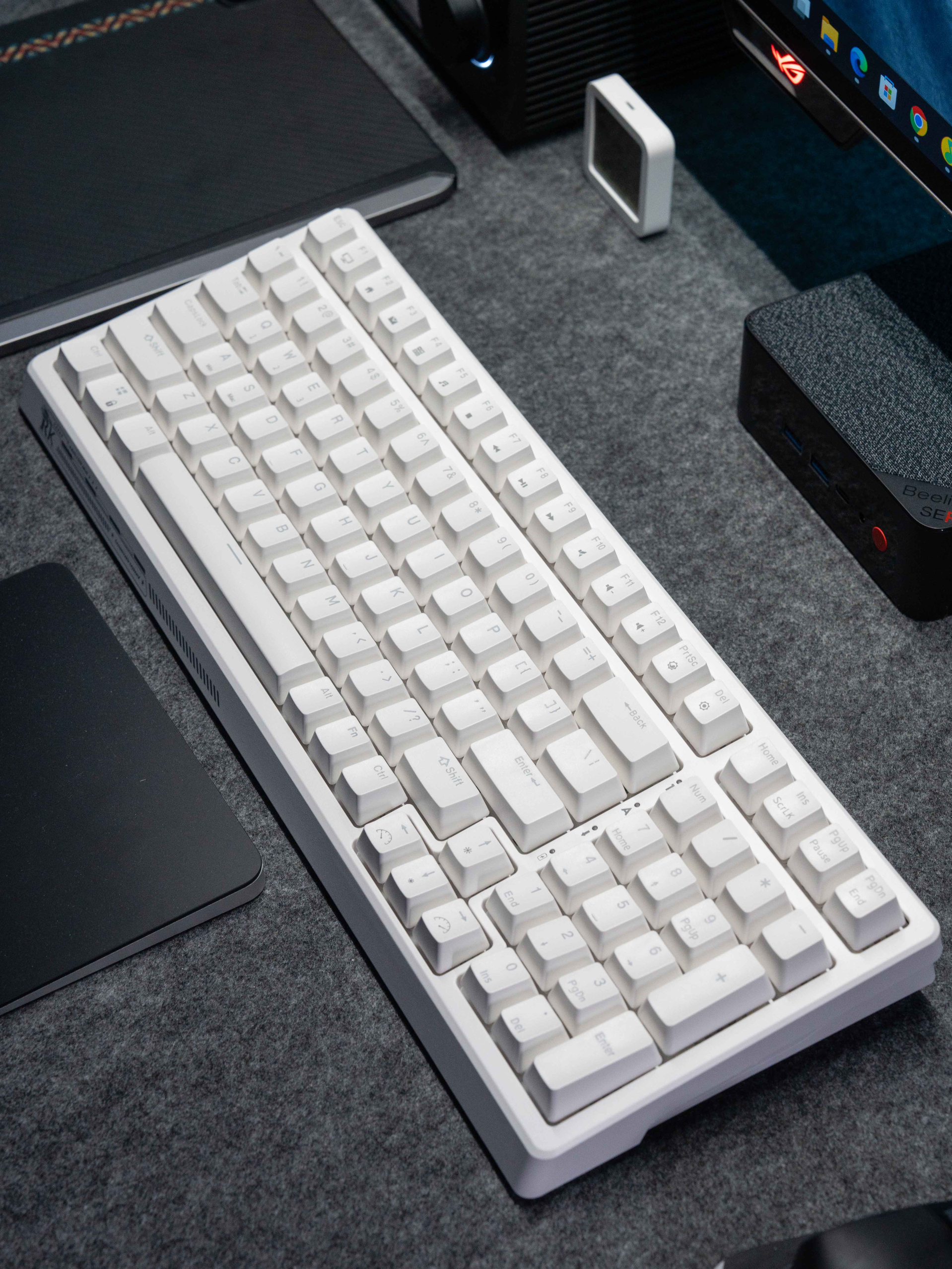 RK R98是我之前吹的最多的键盘,虽然质感稍微有点松垮,但手感真的是500元年内难有对手了,这没多久RK又出了个G98,立马尝试。 - 👉比R98声音差点,但轴选择更多 G98比R98少一个硅胶静音层,也没有Gasket的结构,直接带来的感觉是缺少了点客制化的厚重感,但手感更清脆,G98手感也非常好,三层消音结构完全没有空腔音,九种轴体满足几乎所有需求,我这个红是追求性价比选的,预算高直接上海盐...