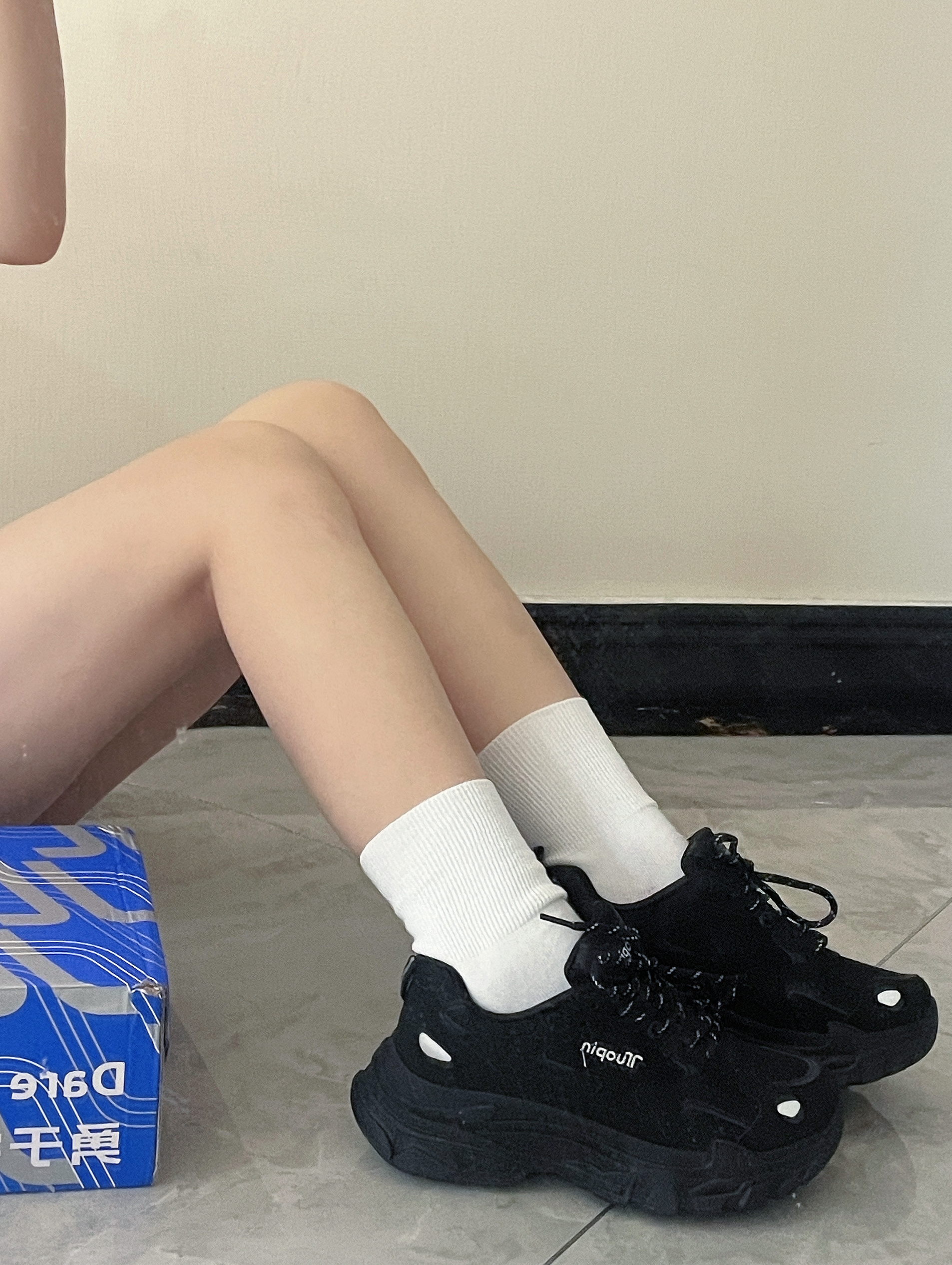 穿多了蛮多写穿来穿去,感觉还是黑色老爹鞋穿的次数坠多啦! 鮀品这款纯黑老爹鞋!这是我最近鞋柜里穿的坠多的鞋啦!全黑色尊嘟泰酷啦!脚感是那种软乎乎的!但是增高也有四五厘米!妥妥是我这种矮子乐啦! 虽然它的底挺高的,但是他也不显得笨重嘞。穿起来也是蛮轻便的!我经常会穿的去健身跑步! 黑色厚底老爹鞋这几个字就显得好穿好穿!!