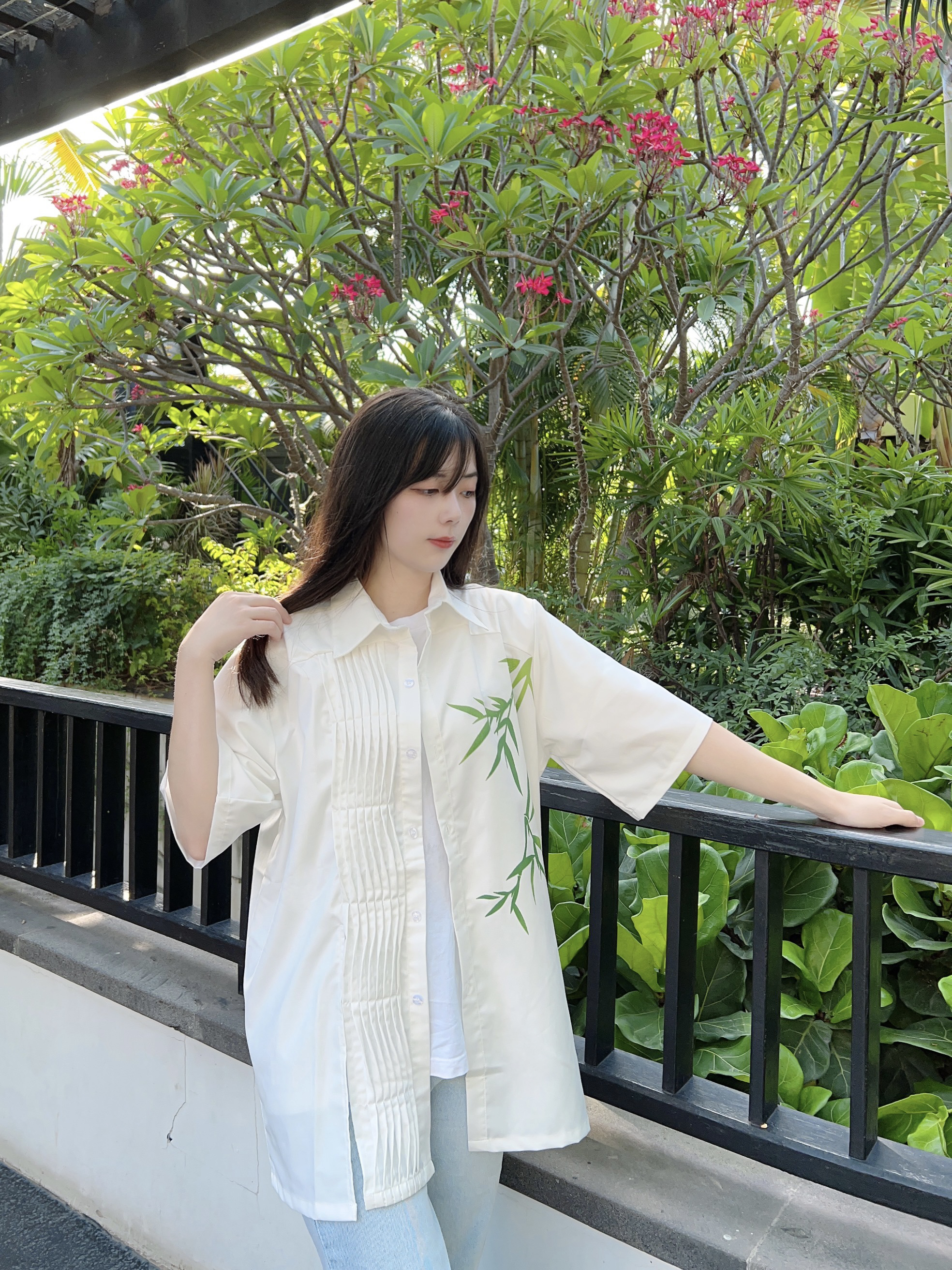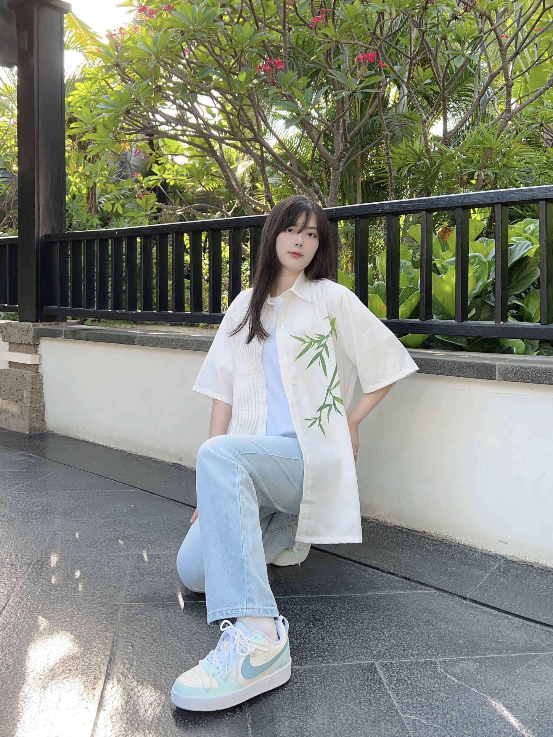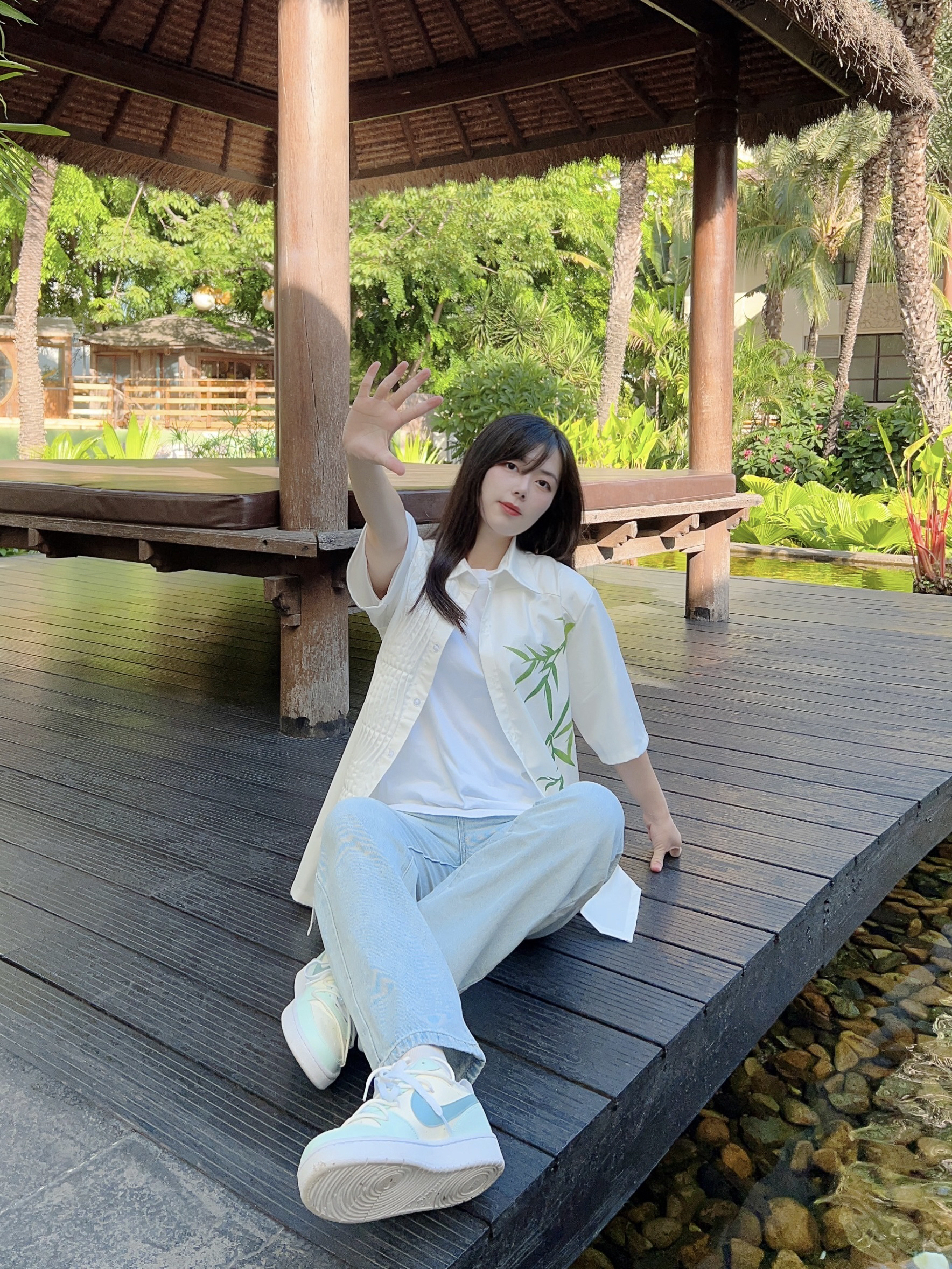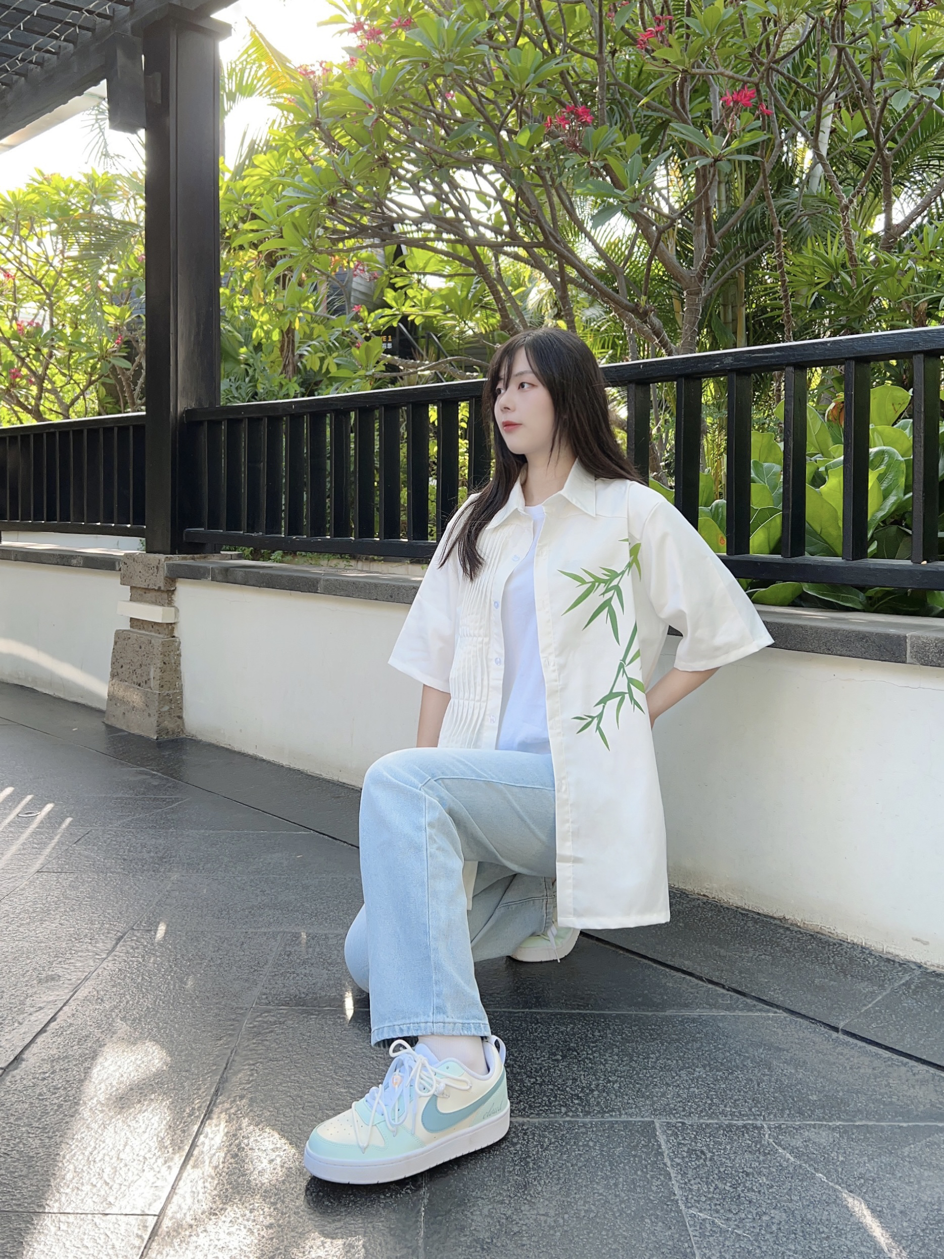 哈喽,又到了小半的穿搭分享时间啦 今天是充满夏日气息的穿搭分享 ~ 到了一个园林里玩耍,和今天的穿搭很相配哦! 新中式感觉的衬衫👕搭配浅色牛仔裤👖 再搭配上特意挑选的球鞋👟第一眼看到就爱上的一款球鞋!! 外观和颜色都给人夏日气息满满的感觉٩(˃̶͈̀௰˂̶͈́)و 球鞋将夏日冰爽汽水等元素融入鞋中,双鞋带设计细节满满🈵️,低饱和配色很有夏日气息🧊,清爽又百搭就是它啦!