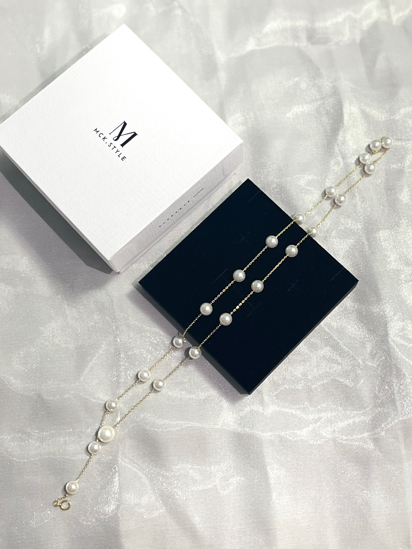 可调节的 一条有多种戴法!!太香了 Y字戴法 超级特别而且很有气质😊 把流苏放后背搭配露背装 背链真的不要太性感!! 还可以缠绕作手链~ 珍珠每颗都挺饱满光泽的 链子部分是925纯银的 不掉色~