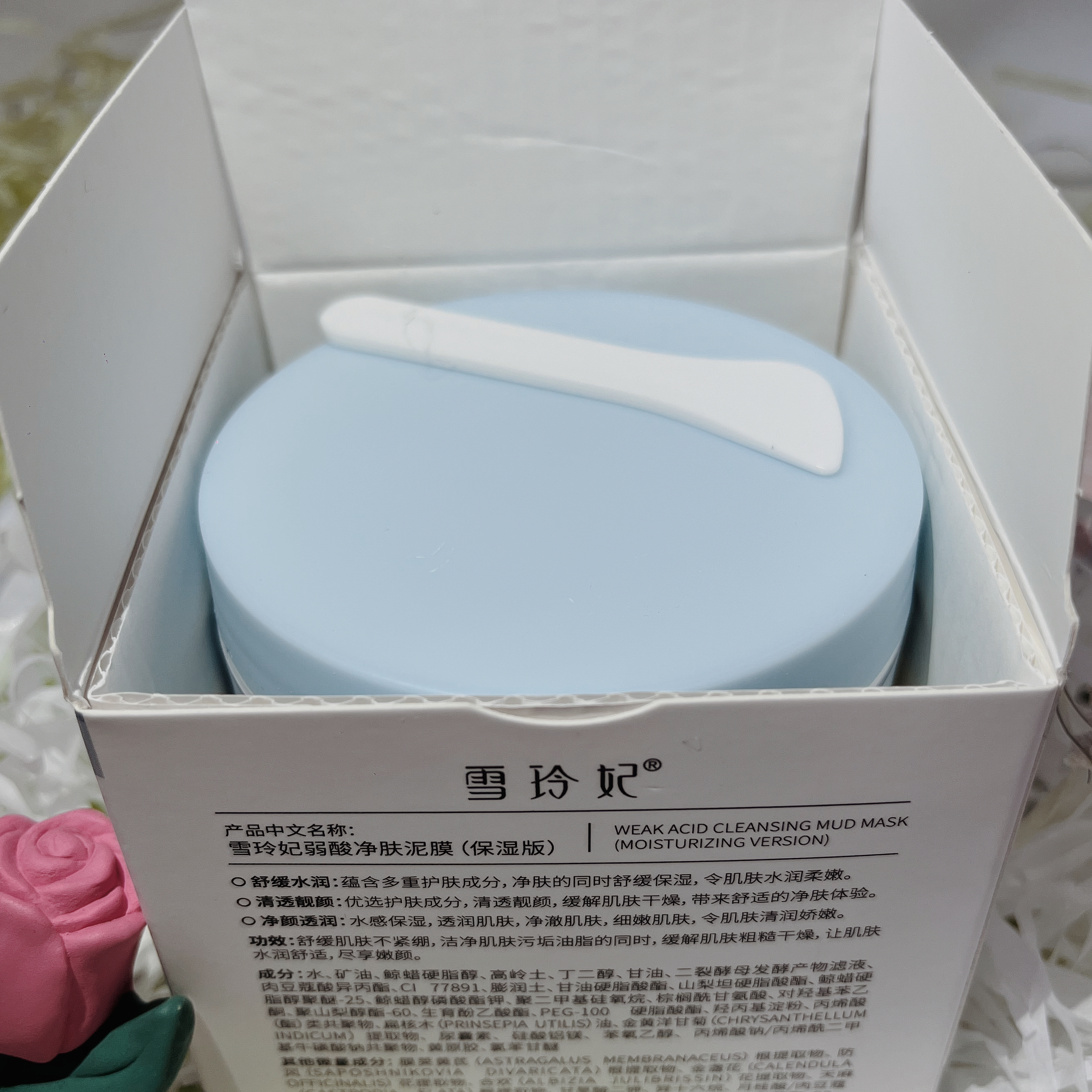 这次我又又又来推荐我很喜欢雪玲妃家的产品啦,最近又入手了她的这款清洁泥膜,买这个产品主要是我鼻头上有好多黑头粉刺,并且每次化妆鼻子都卡粉,一颗颗黑头在鼻子上突起高高的,草莓鼻chao级明显,而恰好这款产品也是主打控油清洁!选用的是亚马逊的白泥和多种天然植物成分,清洁能力杠杠的,还没有过多的香精,用起来也是感觉hen安心~ 它的质地细腻,亲肤易推开,也没有啥不适症状,敷上脸觉得冰冰凉凉的,水润不拔干...