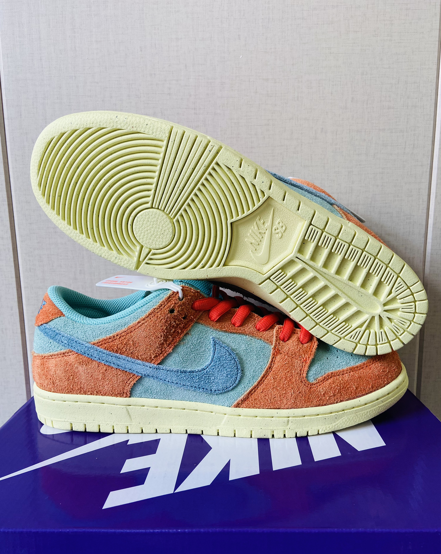 😍最近时尚圈开始流行“美拉德穿搭”,不知道你有没有被种草呢,今天我要分享这一双鞋就可以完美驾驭美拉德穿搭哦,快来看看这一双Nike Dunk SB Low橙青色到底怎么样吧! 👟·鞋型设计: 整双鞋款延续了Nike Dunk SB Low的经典外观设计,加厚的鞋舌、饱满的内衬、扁圆的鞋带都是标配!整体采用亮橙色和湖蓝色作为主色调,鞋面采用特殊的长绒麂皮面料打造,质感十足!中底采用环保再生材质,以...